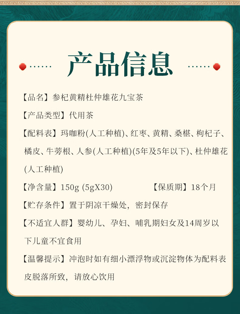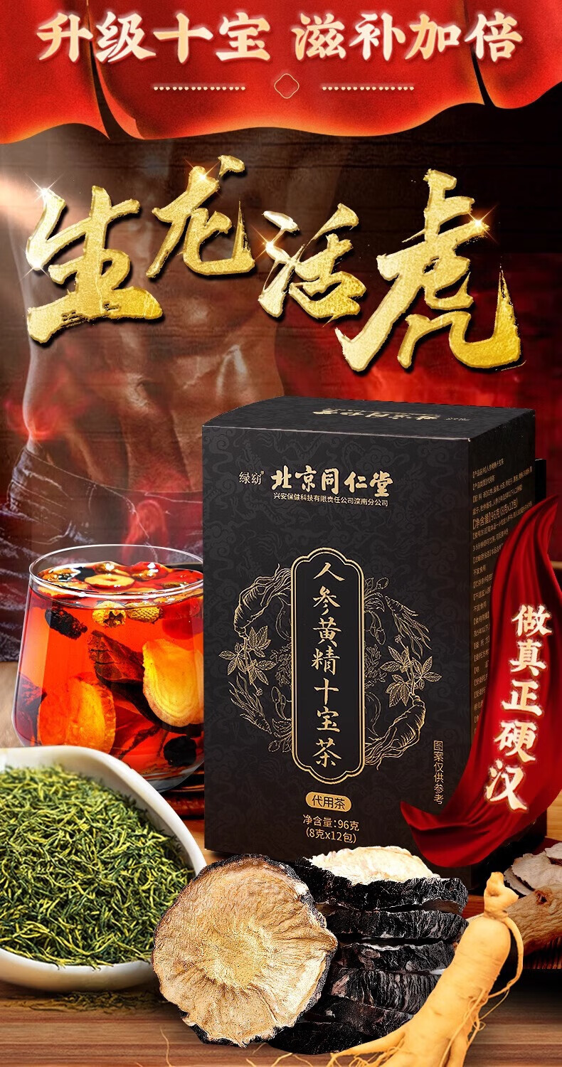 Tongrentang One brew a day men's kidney tea, ginseng, wolfberry, nine treasure tea, kidney essence tea, maca, polygonatum ulmoides and eucommia 30 packs