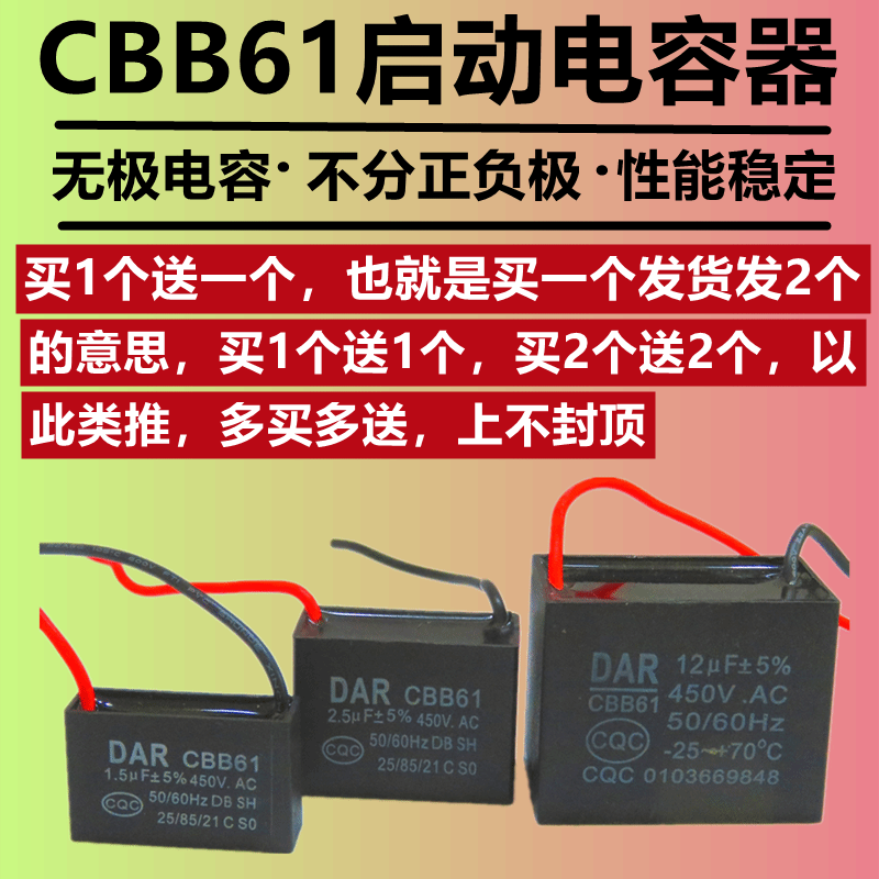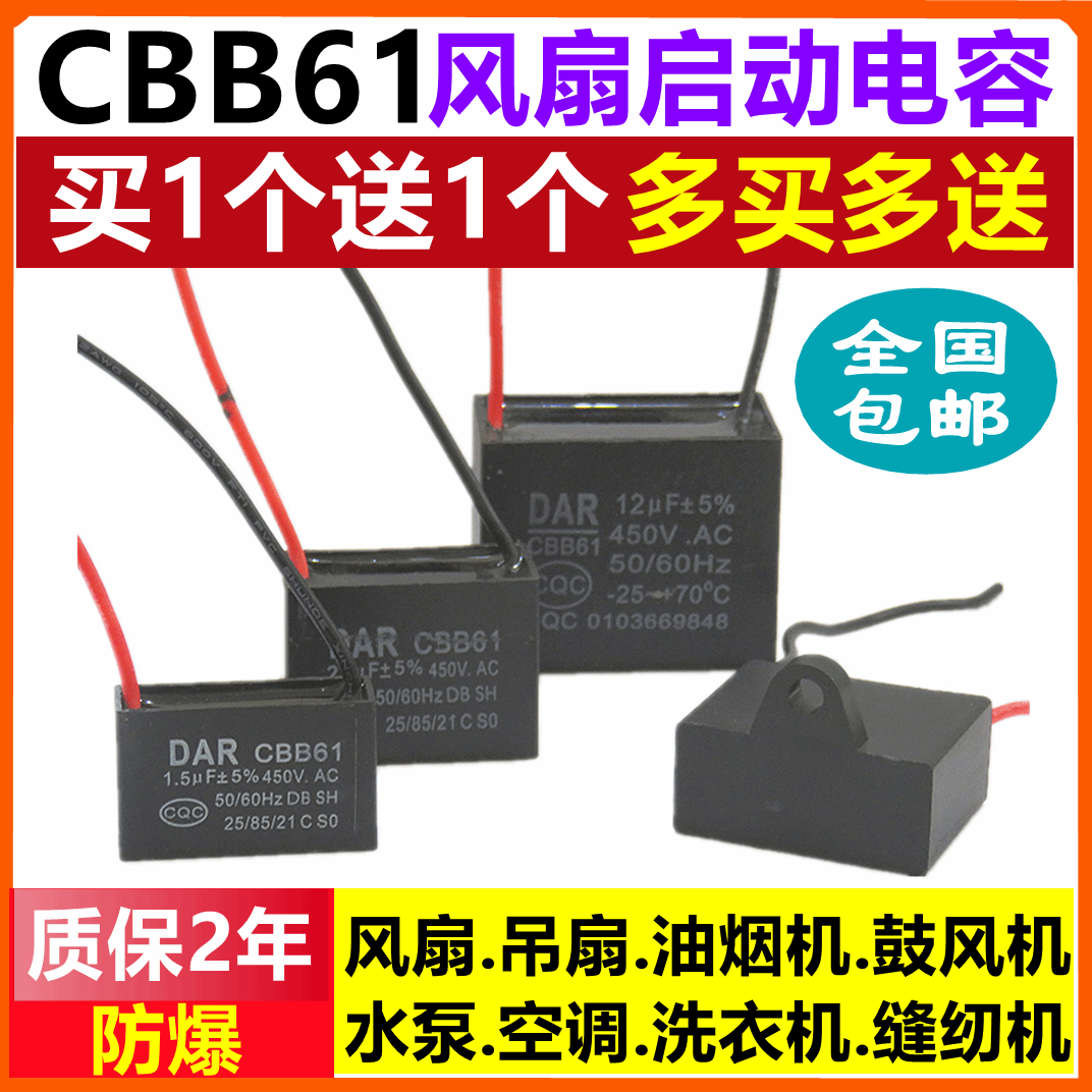 CBB61 fan starting capacitor 1.2/1.5/1.8/2/2.2/2.5/3/4/5UF450V ceiling fan range hood 2UF (buy one get one free)