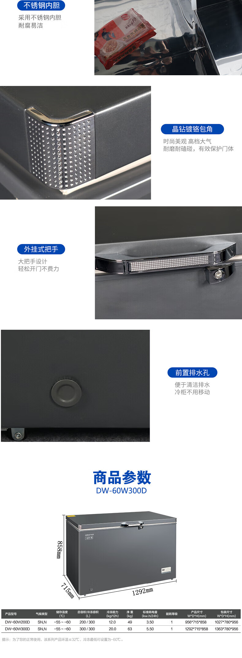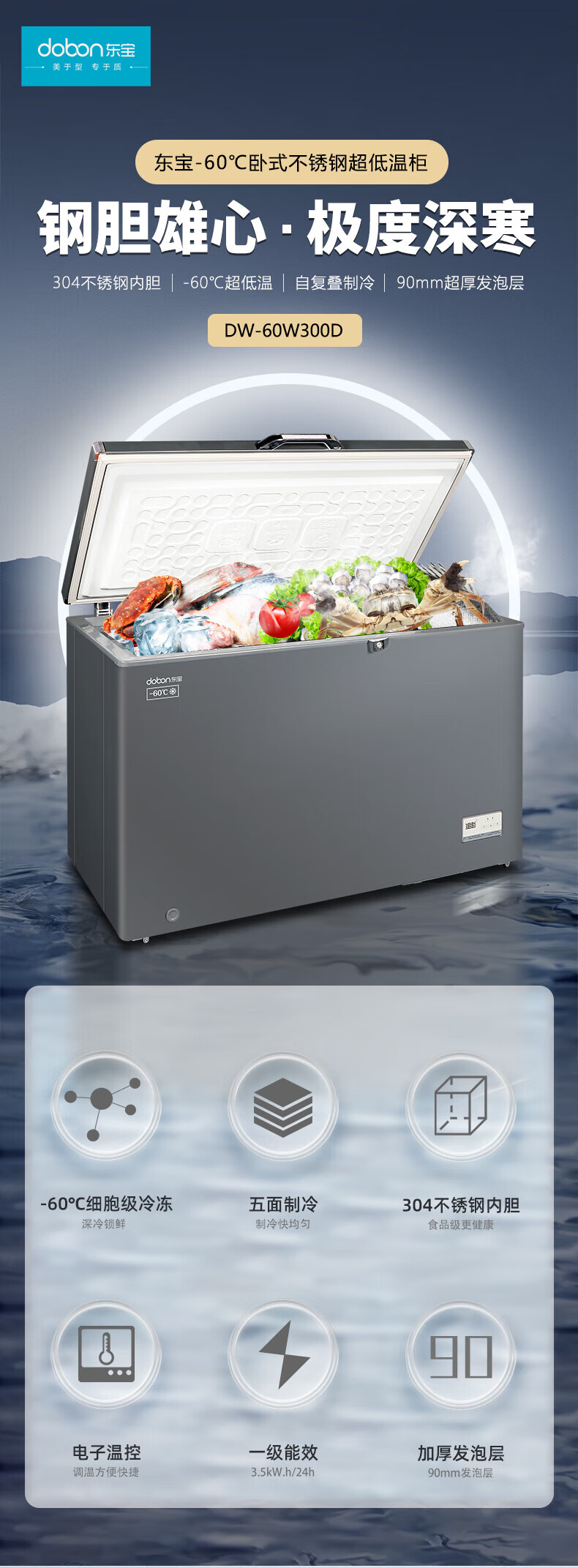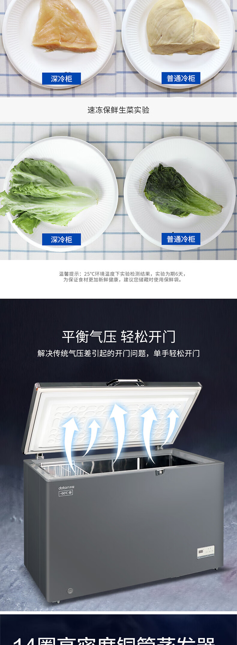 DOBON commercial cell-grade ultra-low temperature refrigerator, all-copper tube evaporated gold salmon fresh-keeping horizontal quick-freezer, Han Palace Gray 200 liters - 60 degrees deep-freezing quick-freezing