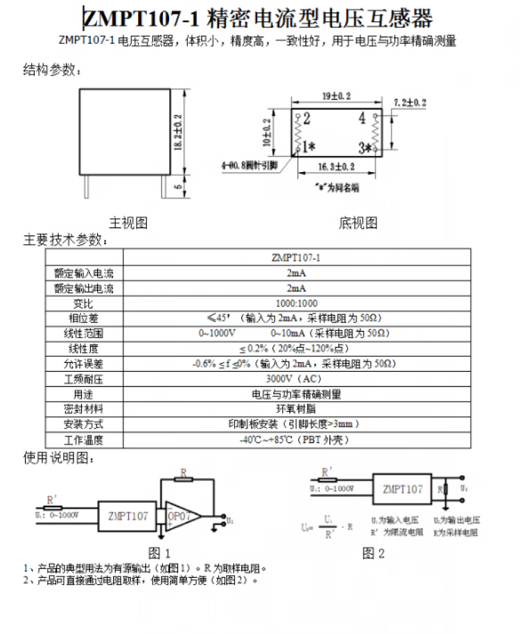 ZMPT107-1 PT107 Zeming precision miniature voltage transformer 2mA/2mA