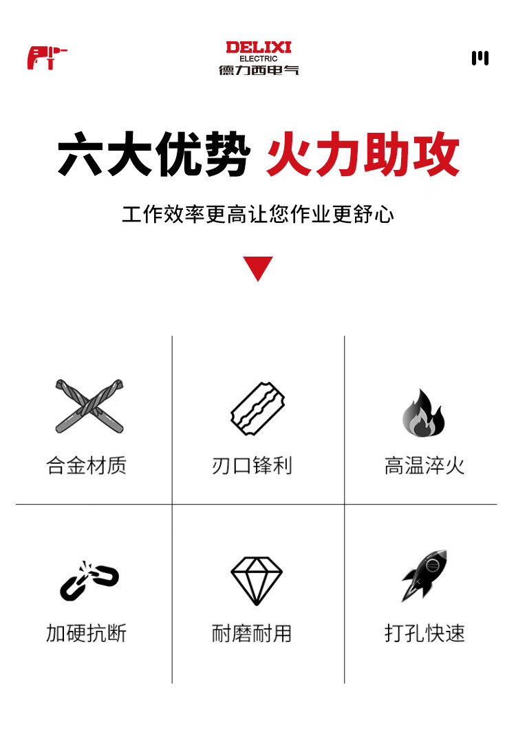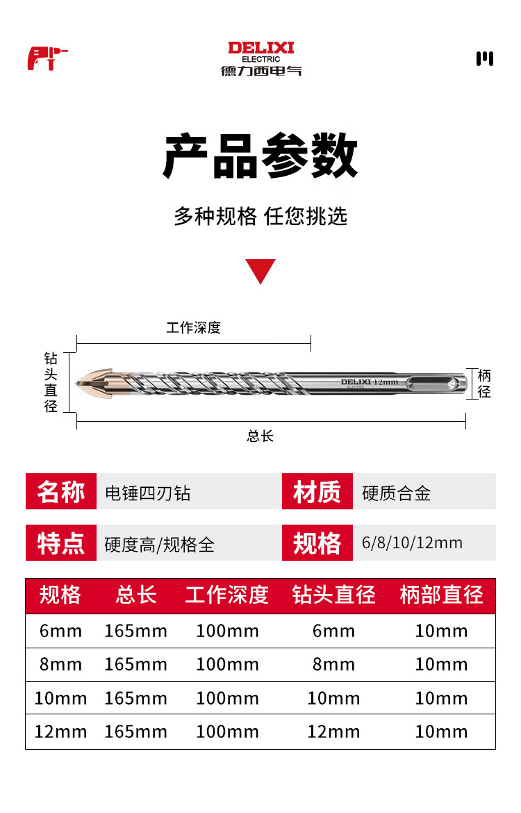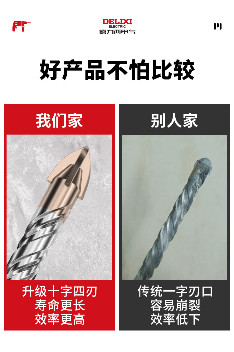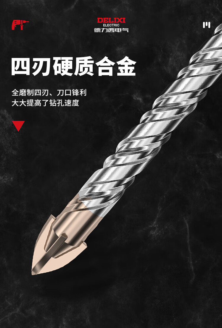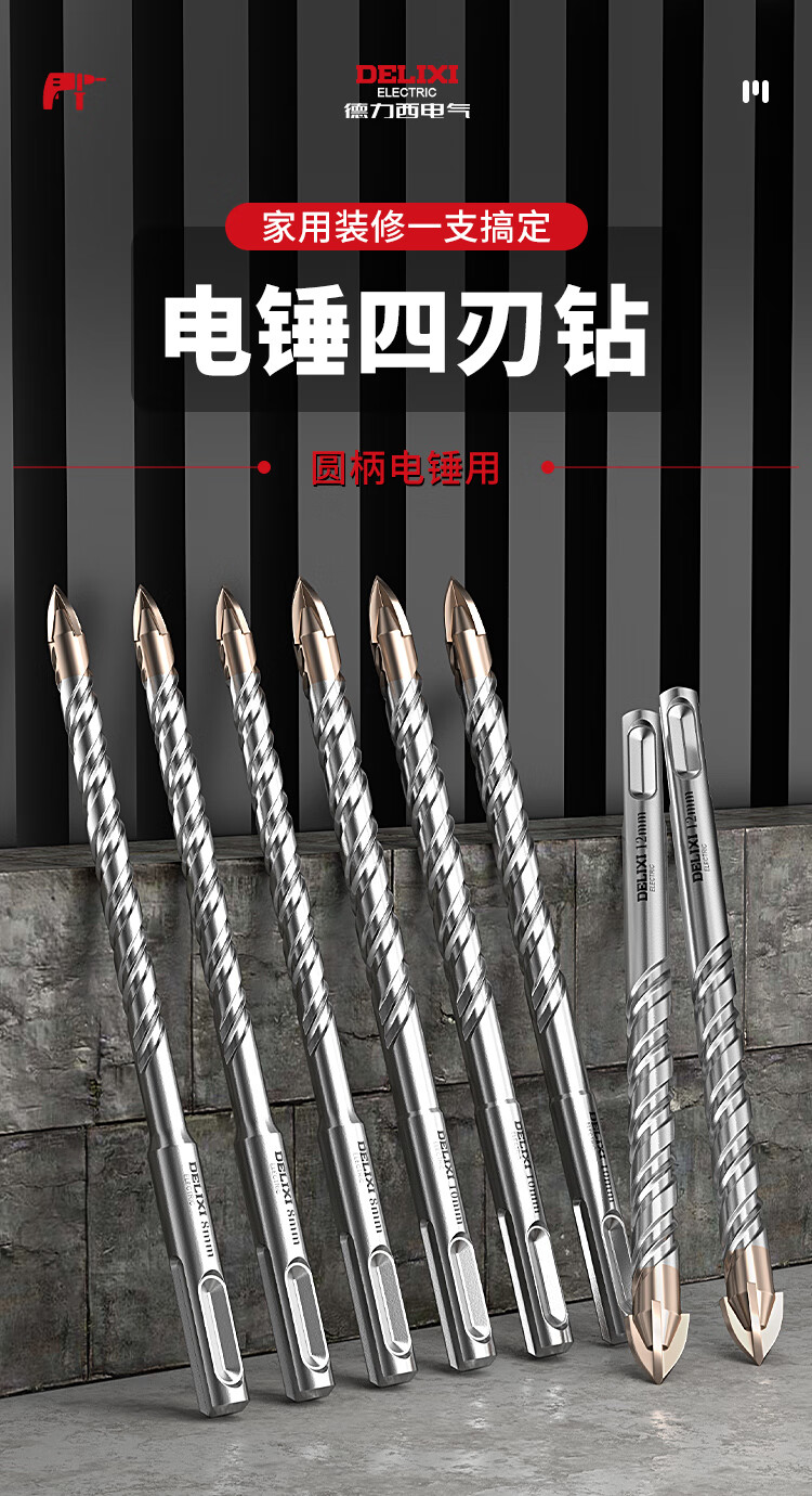 Delixi Electric Electric Hammer Drill Cross Impact Concrete Wall Round Handle Perforation Ceramic Drill Super Carbide Square Handle Turn Head 6+8 Two in total