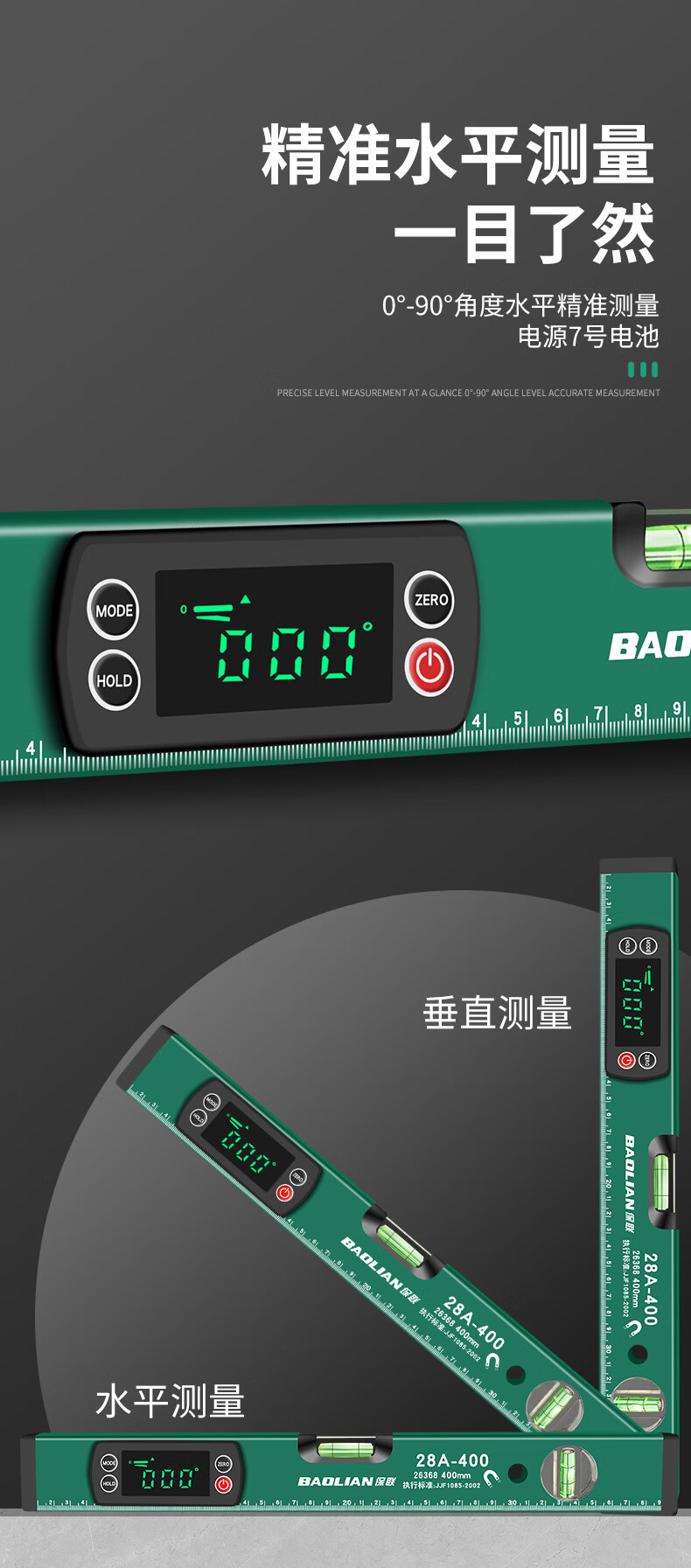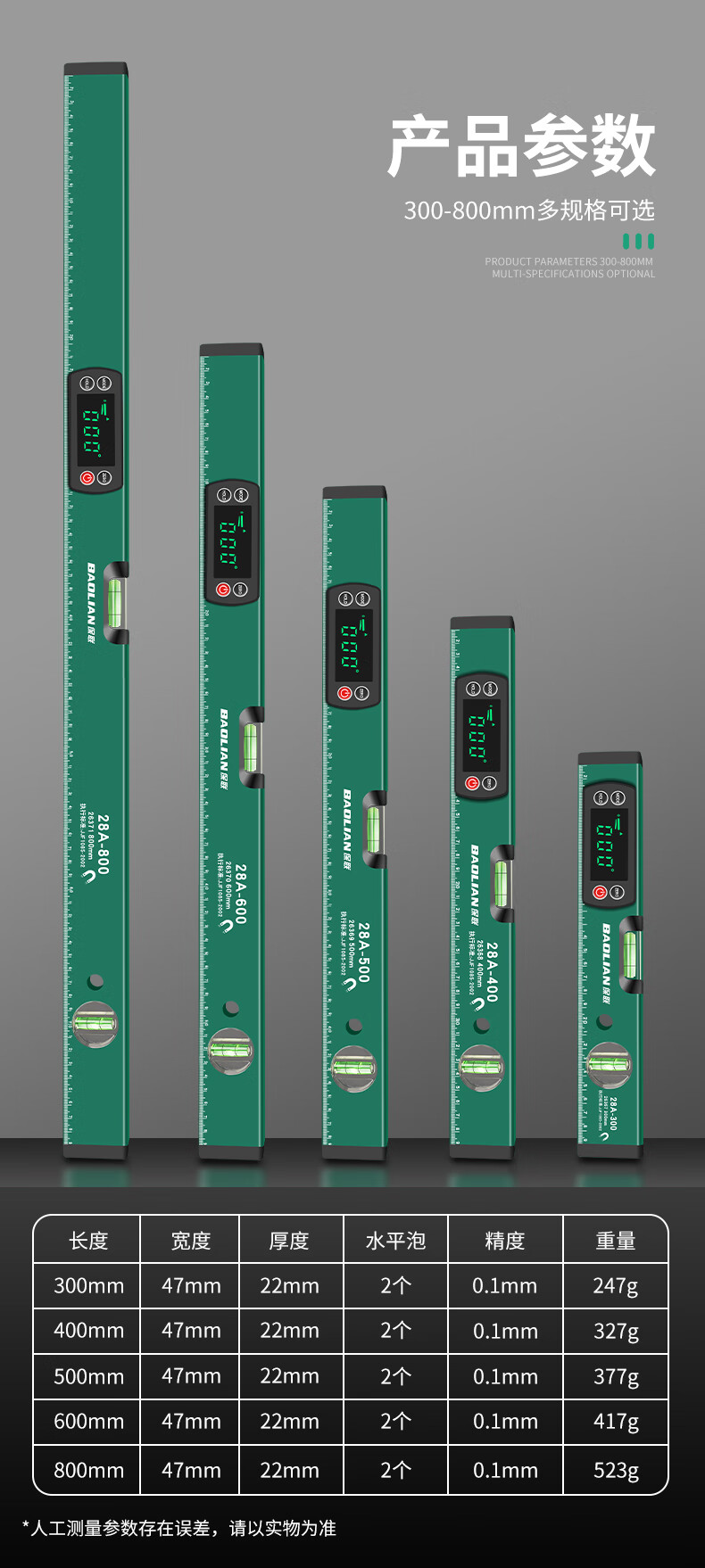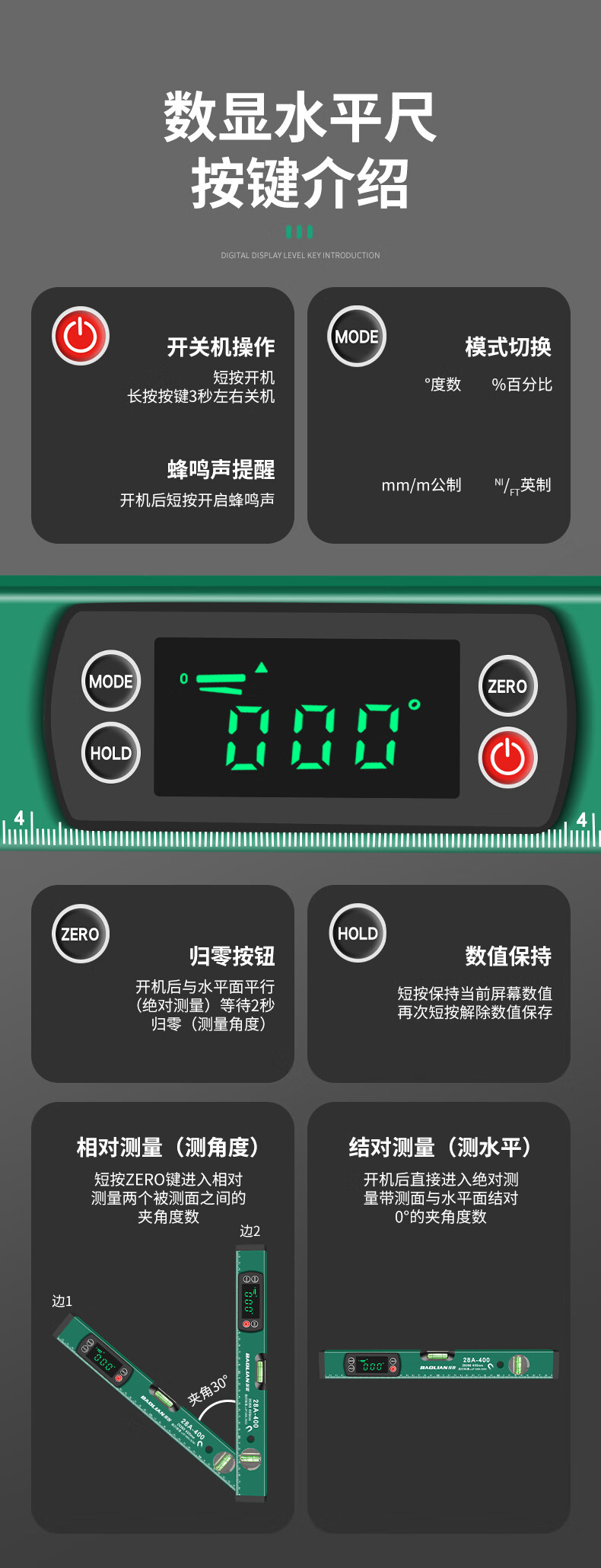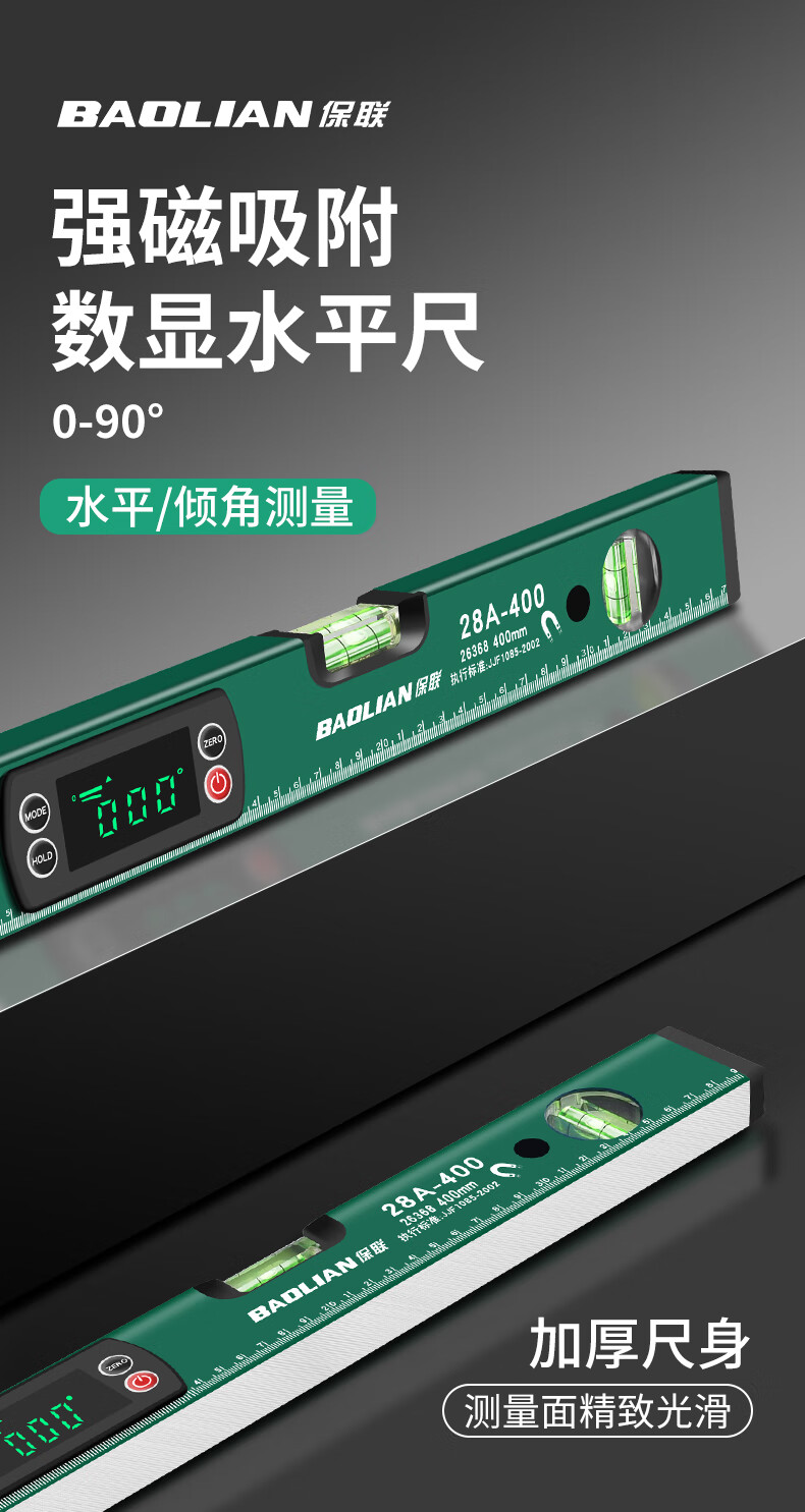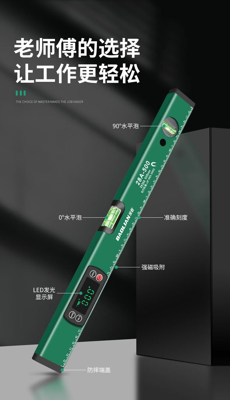 Baolian Digital Display Level New Strong Magnetic High Precision Aluminum Alloy Thickened Measurement Band Reading Level Electronic Level Flagship Model Aluminum Alloy Digital Display Strong Magnetic 800MM