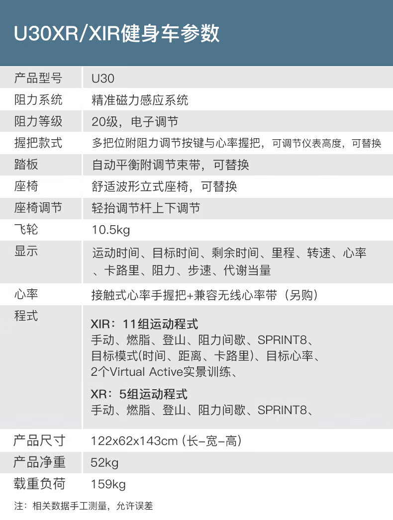 JOHNSON exercise bike U30 home electromagnetic controlled resistance vertical dynamic bicycle indoor aerobic rehabilitation exercise equipment U30XR-button screen