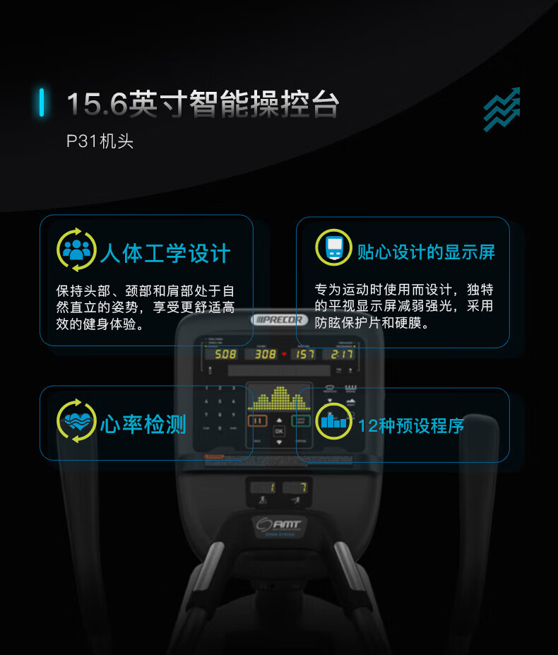 PRECOR elliptical machine AMT835 multi-functional climbing walking treadmill adjustable stride fitness imported gym equipment gray