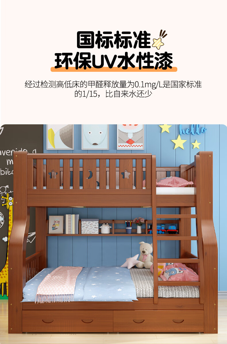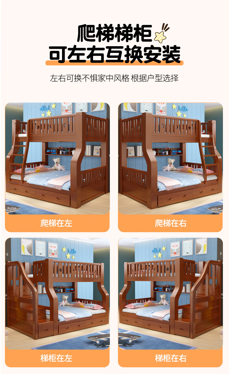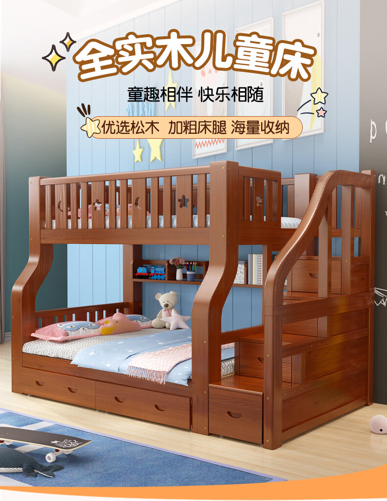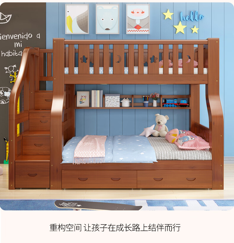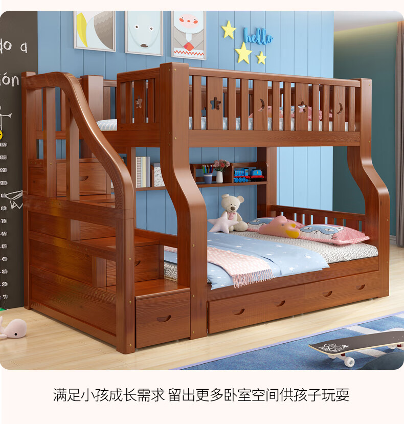 Chunhua upper and lower solid wood bed children's bunk bed small apartment solid wood double bed high and low bed white straight ladder 160 up and down 180