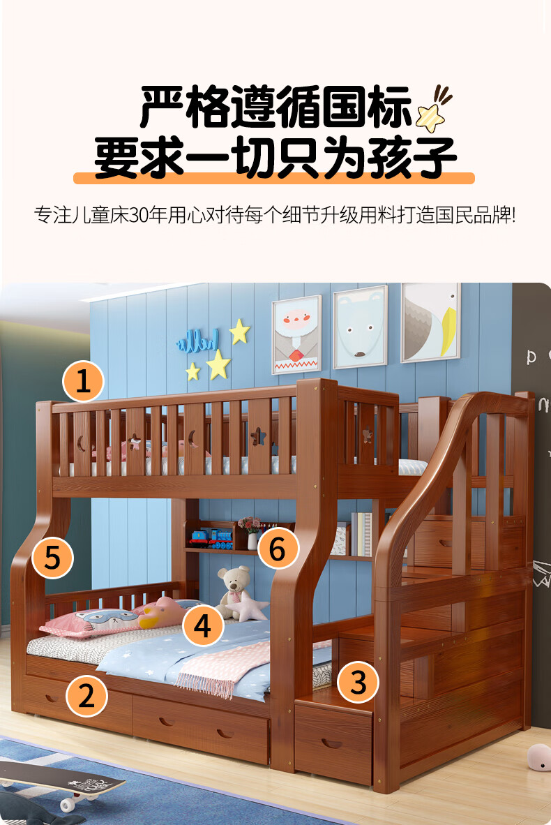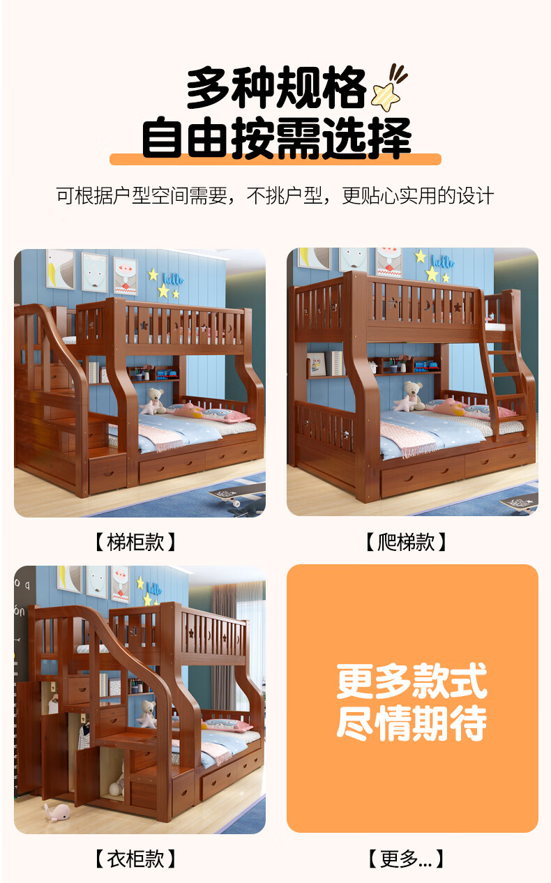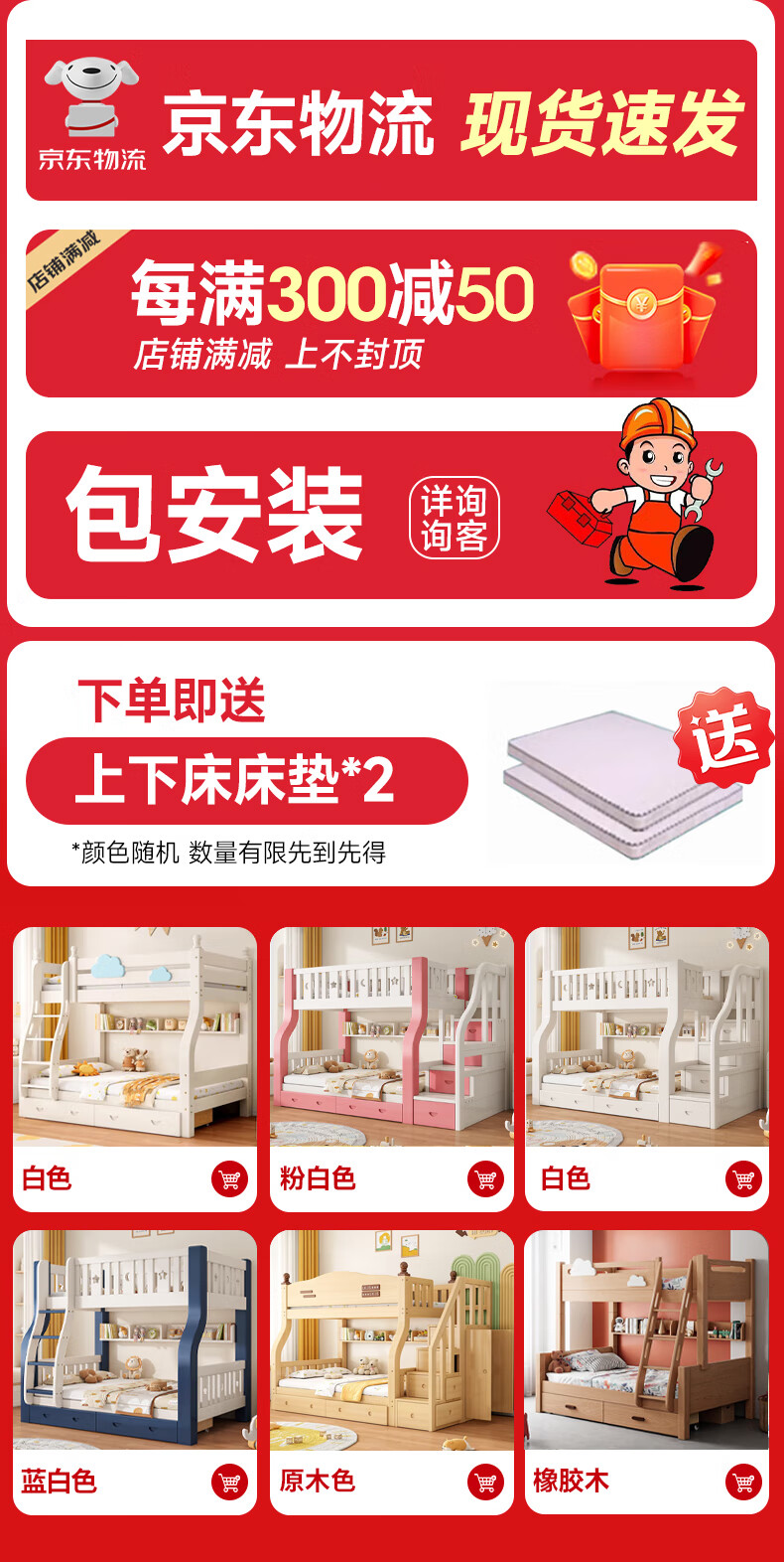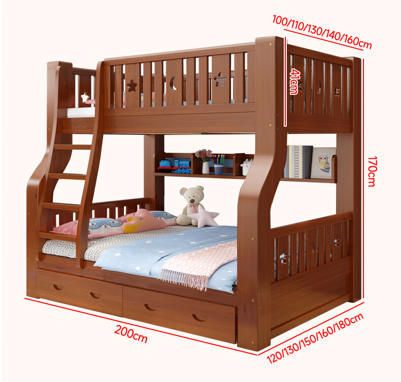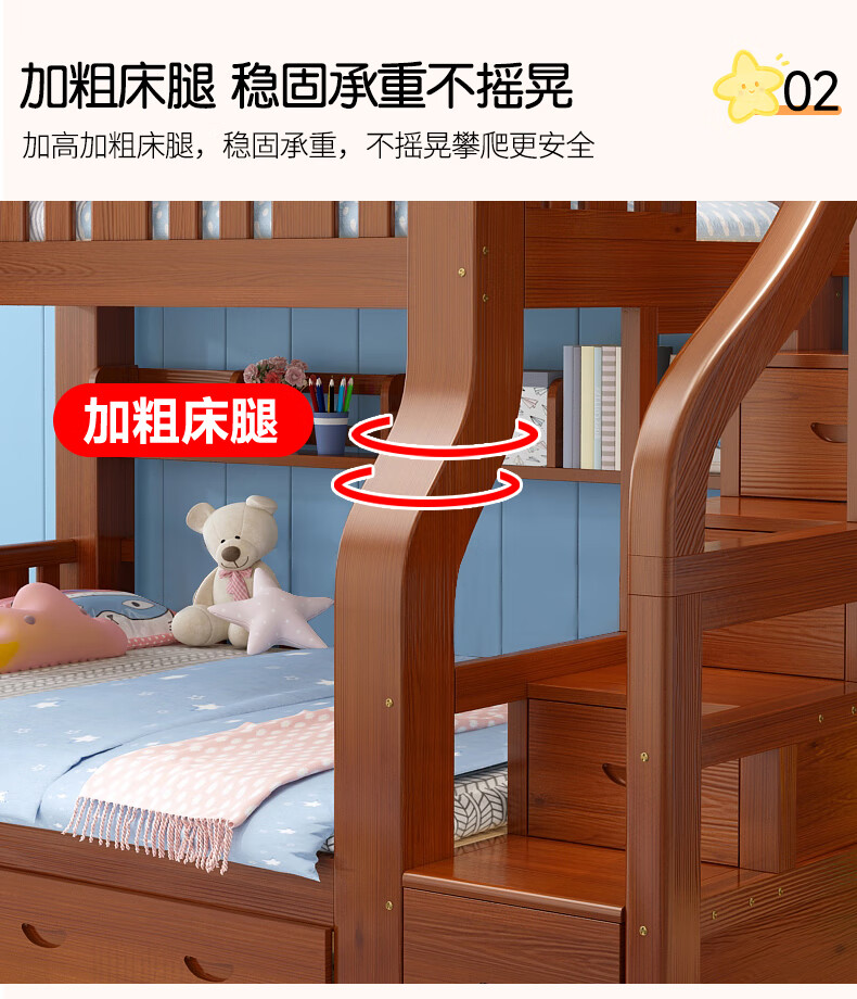 Chunhua upper and lower solid wood bed children's bunk bed small apartment solid wood double bed high and low bed white straight ladder 160 up and down 180
