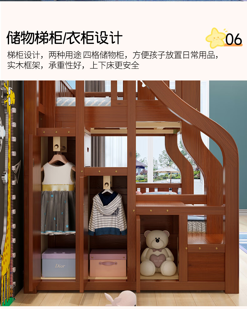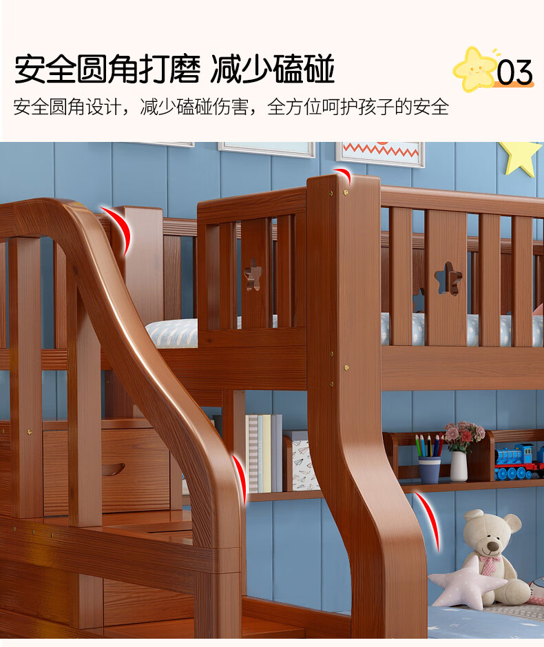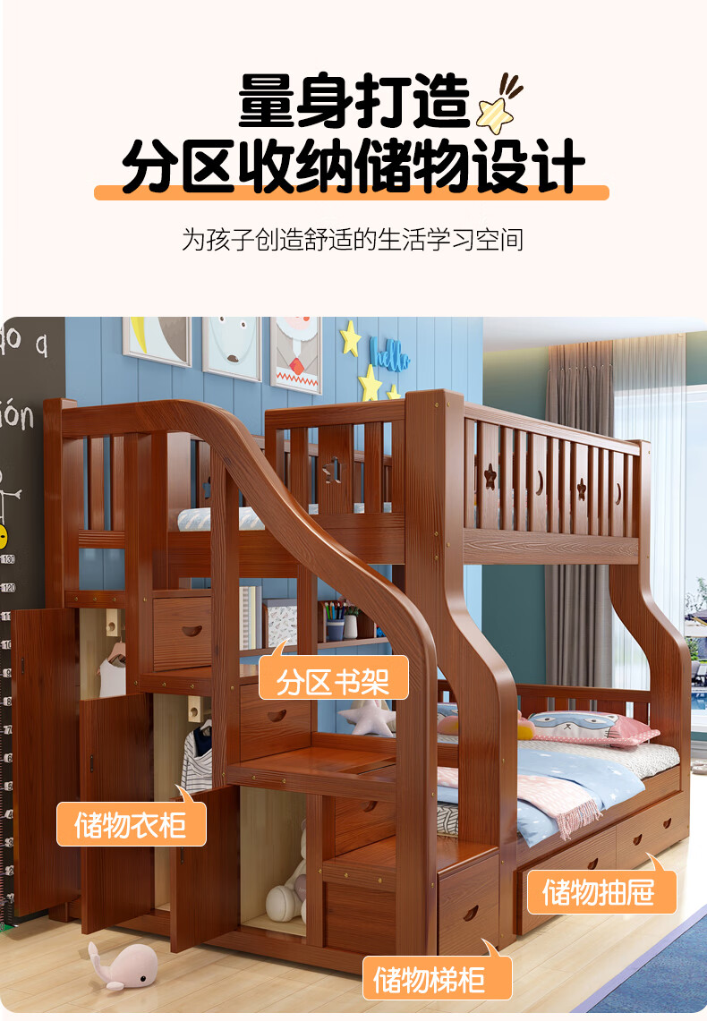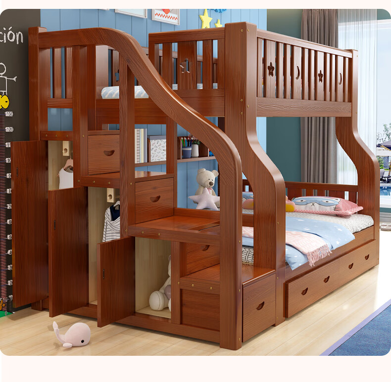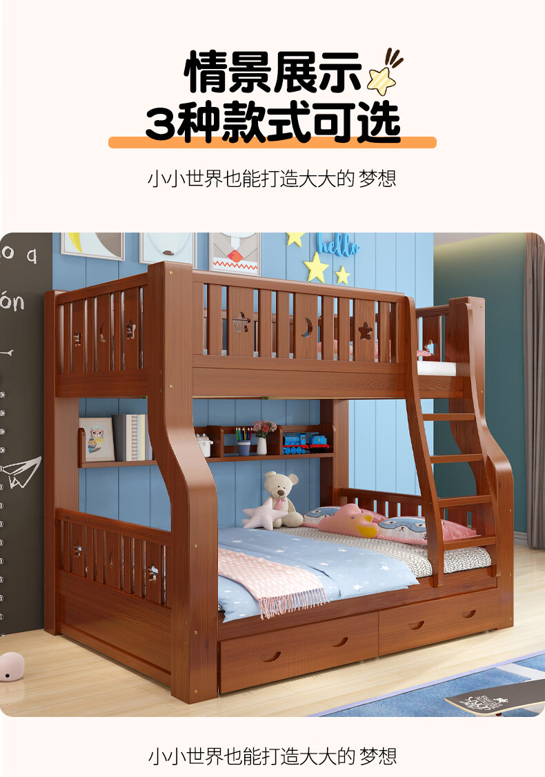 Chunhua upper and lower solid wood bed children's bunk bed small apartment solid wood double bed high and low bed white straight ladder 160 up and down 180
