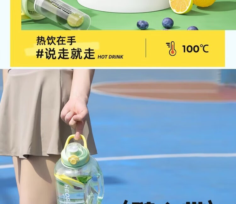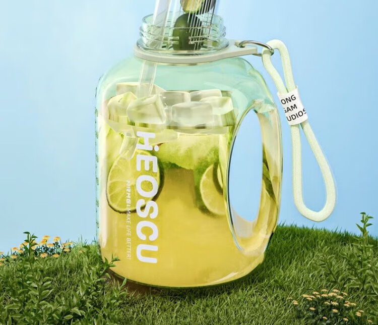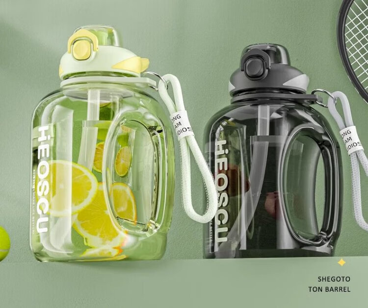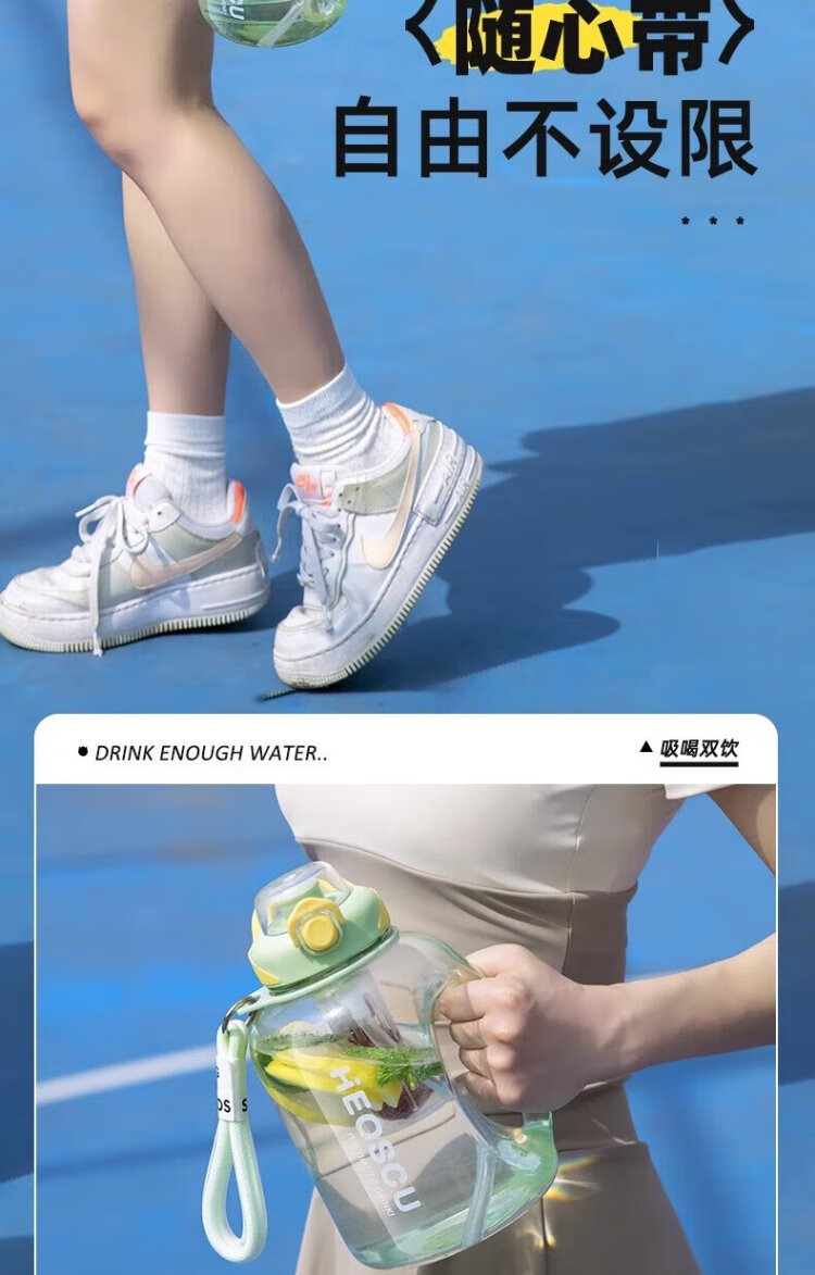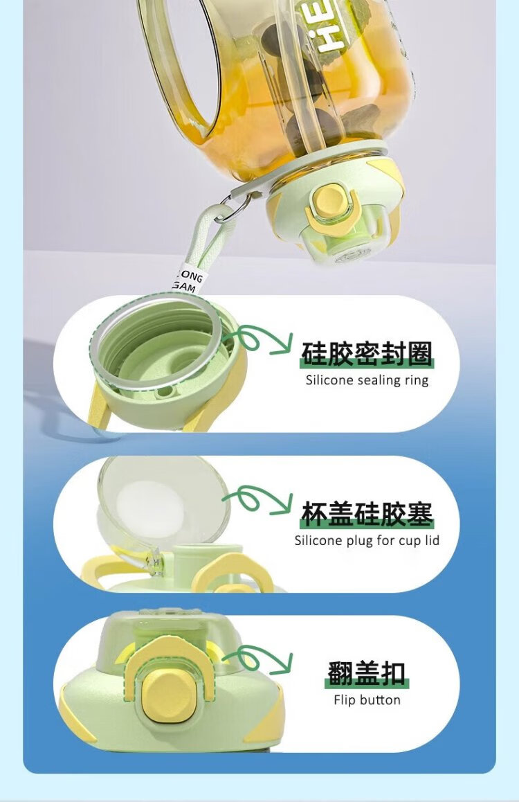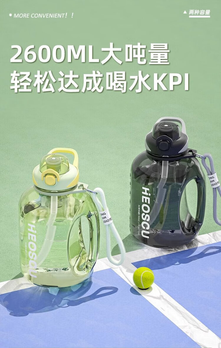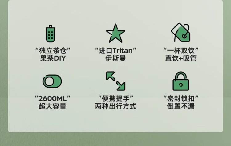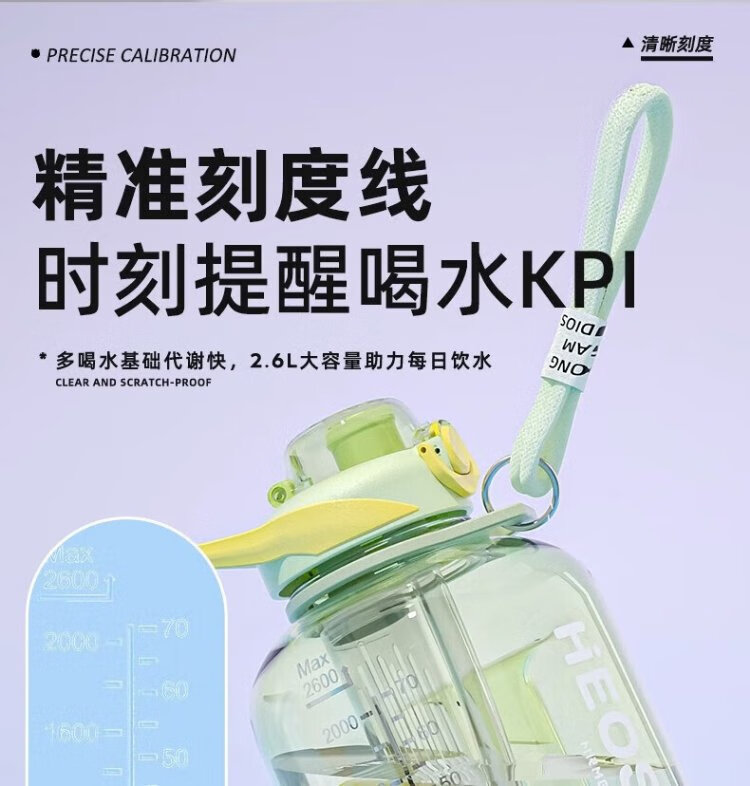 NRMEi Sports Water Cup Extra Large Capacity High Temperature Resistant Tritan Tons of Tea Water Separation Summer Men's and Women's Fitness Big Belly Kettle Double Drink + Tea Storage + Rope Green 2600ml High Temperature Resistance Tritan/Upgraded Tea Storage/With Scale