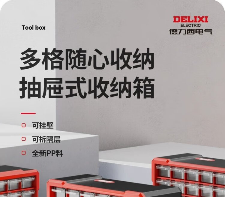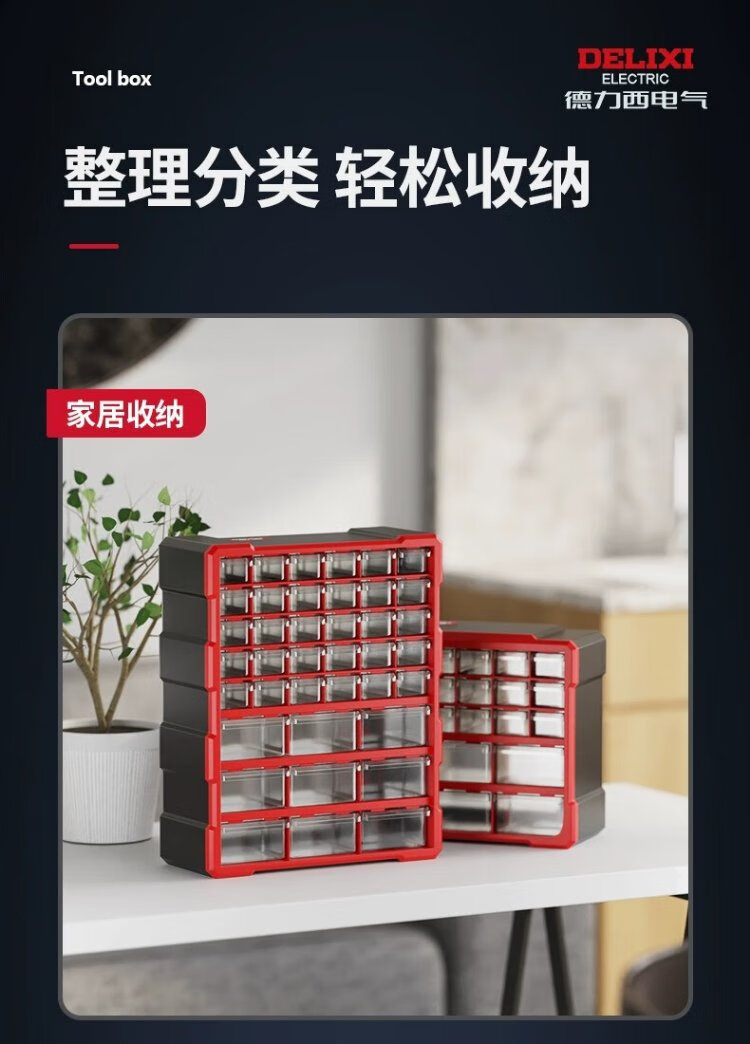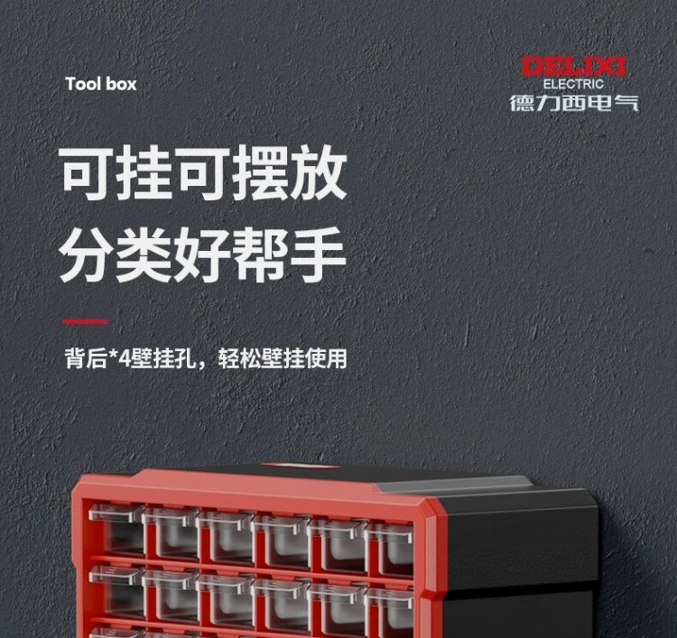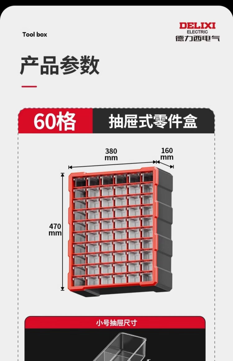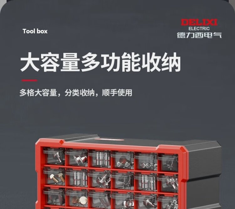 Delixi drawer-type parts box storage box accessories screw box parts cabinet drawer-type component classification storage environmentally friendly new material 18-grid large drawer parts box