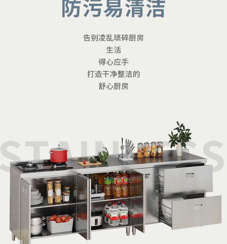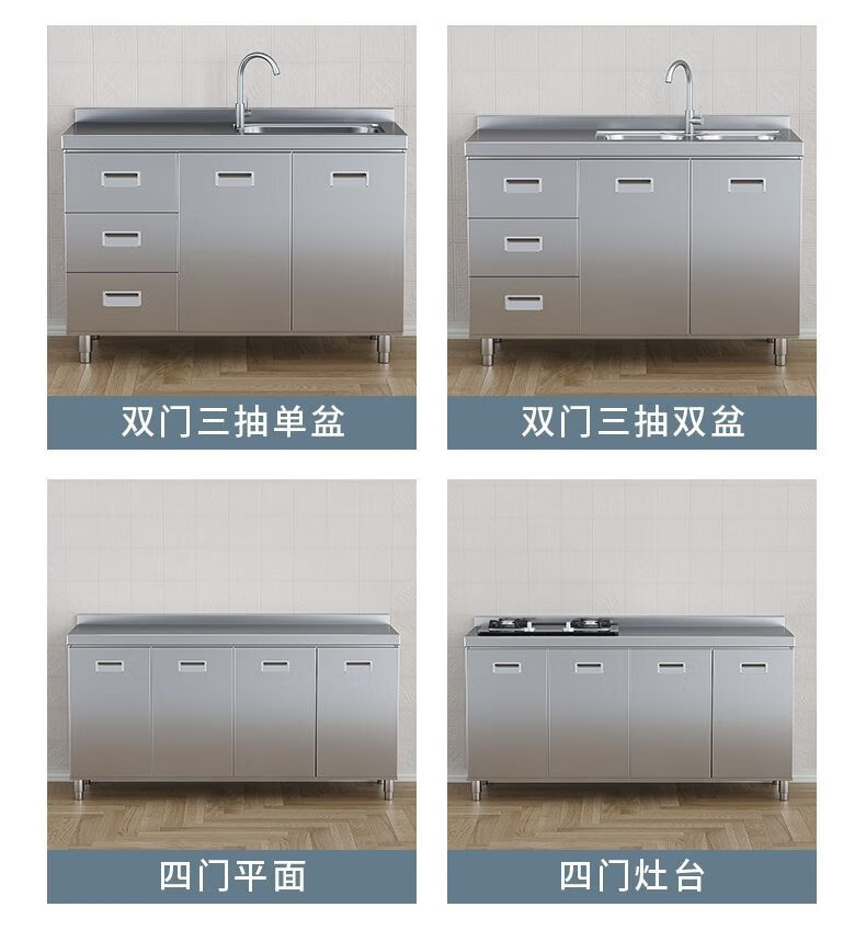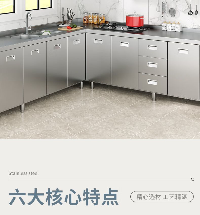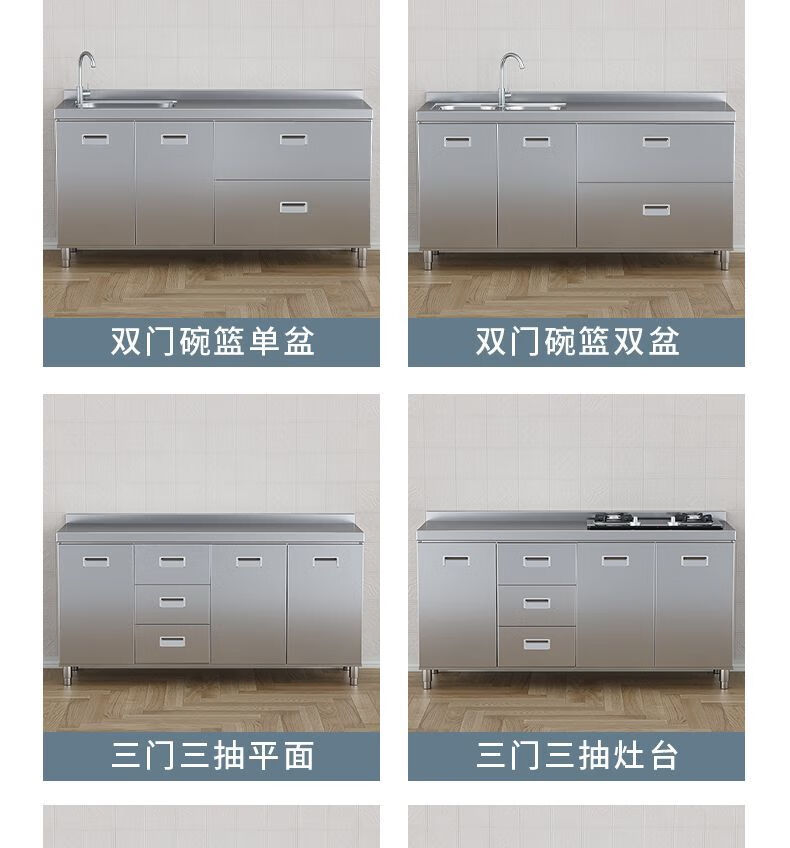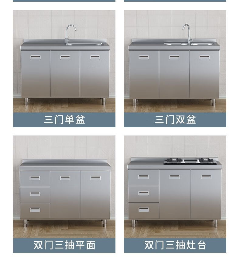 FANCYCHIC304 overall stainless steel kitchen cabinet extra thick simple cupboard stove integrated rural storage household small apartment 201 thick stainless steel corner cabinet