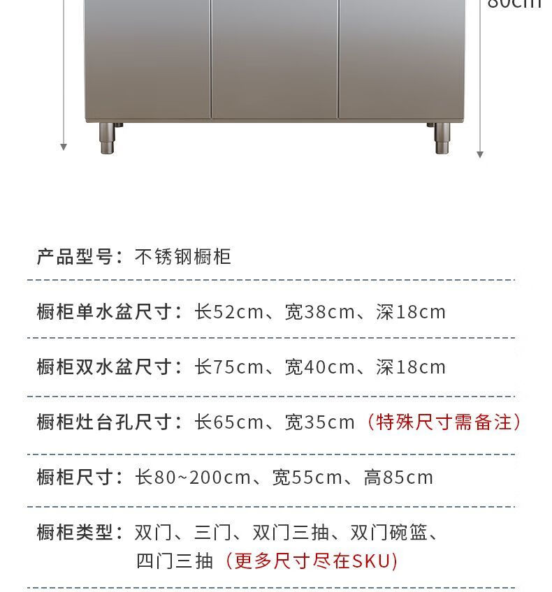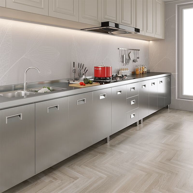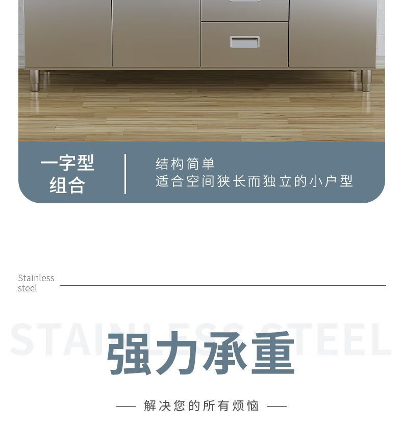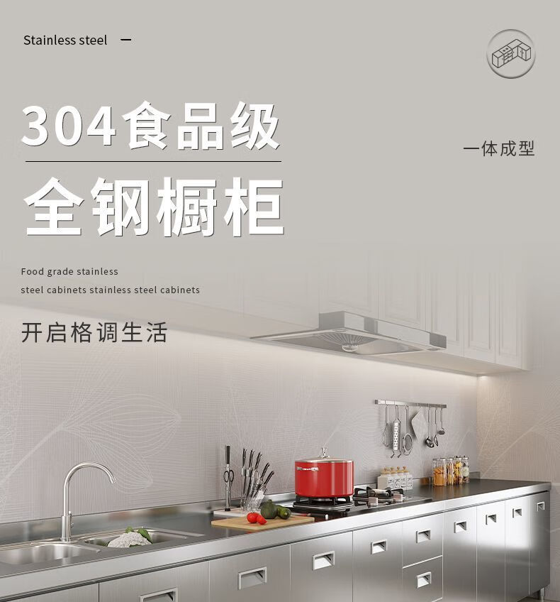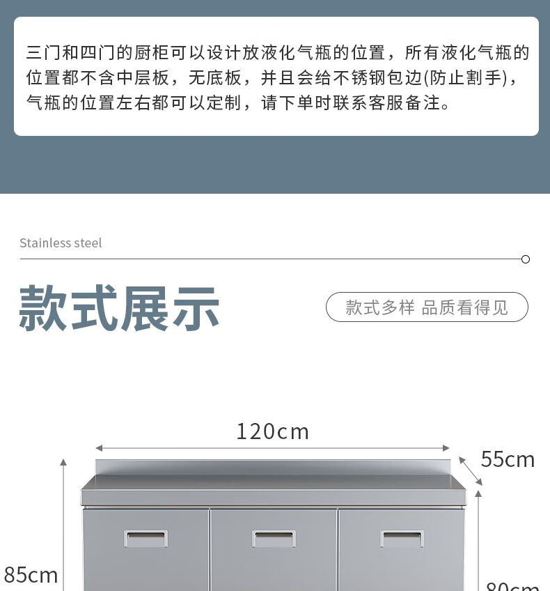 FANCYCHIC304 overall stainless steel kitchen cabinet extra thick simple cupboard stove integrated rural storage household small apartment 201 thick stainless steel corner cabinet
