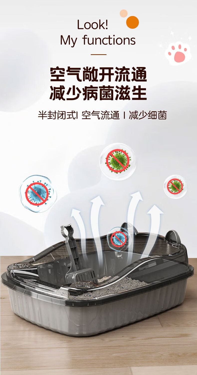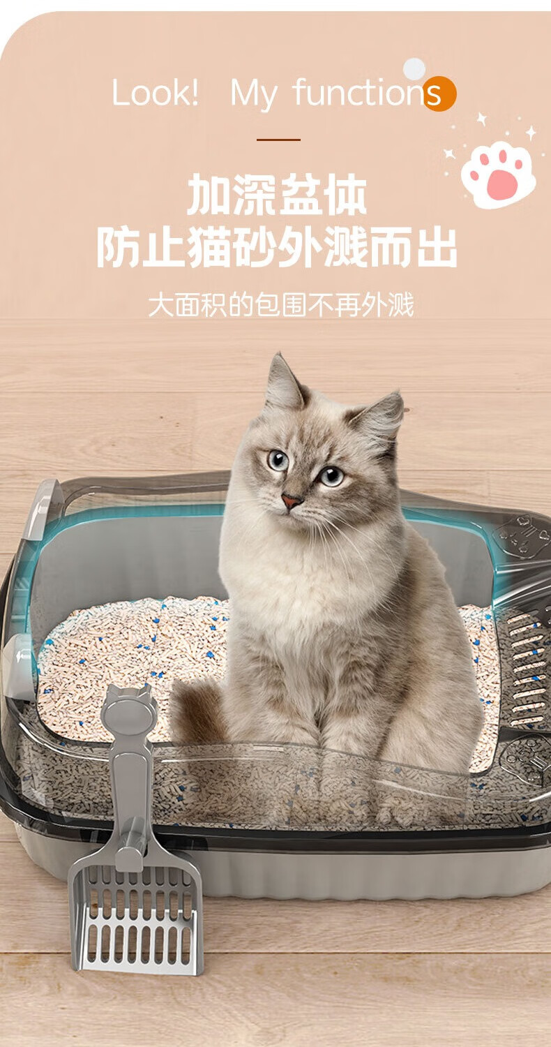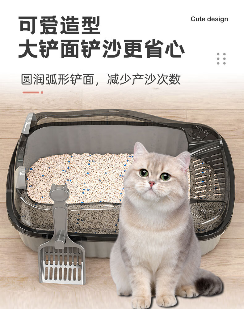 Jingdong door-to-door cat litter box semi-enclosed extra-large thickened anti-splash kitten toilet removable home free cat litter scoop high-end gray cat litter box