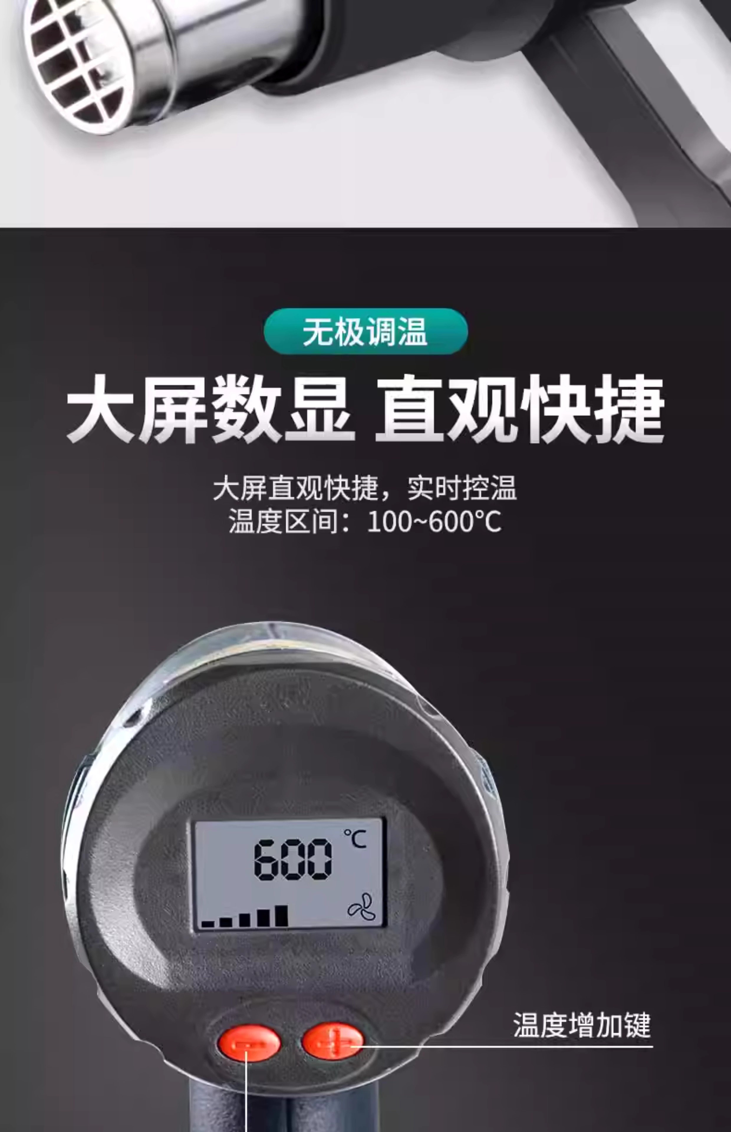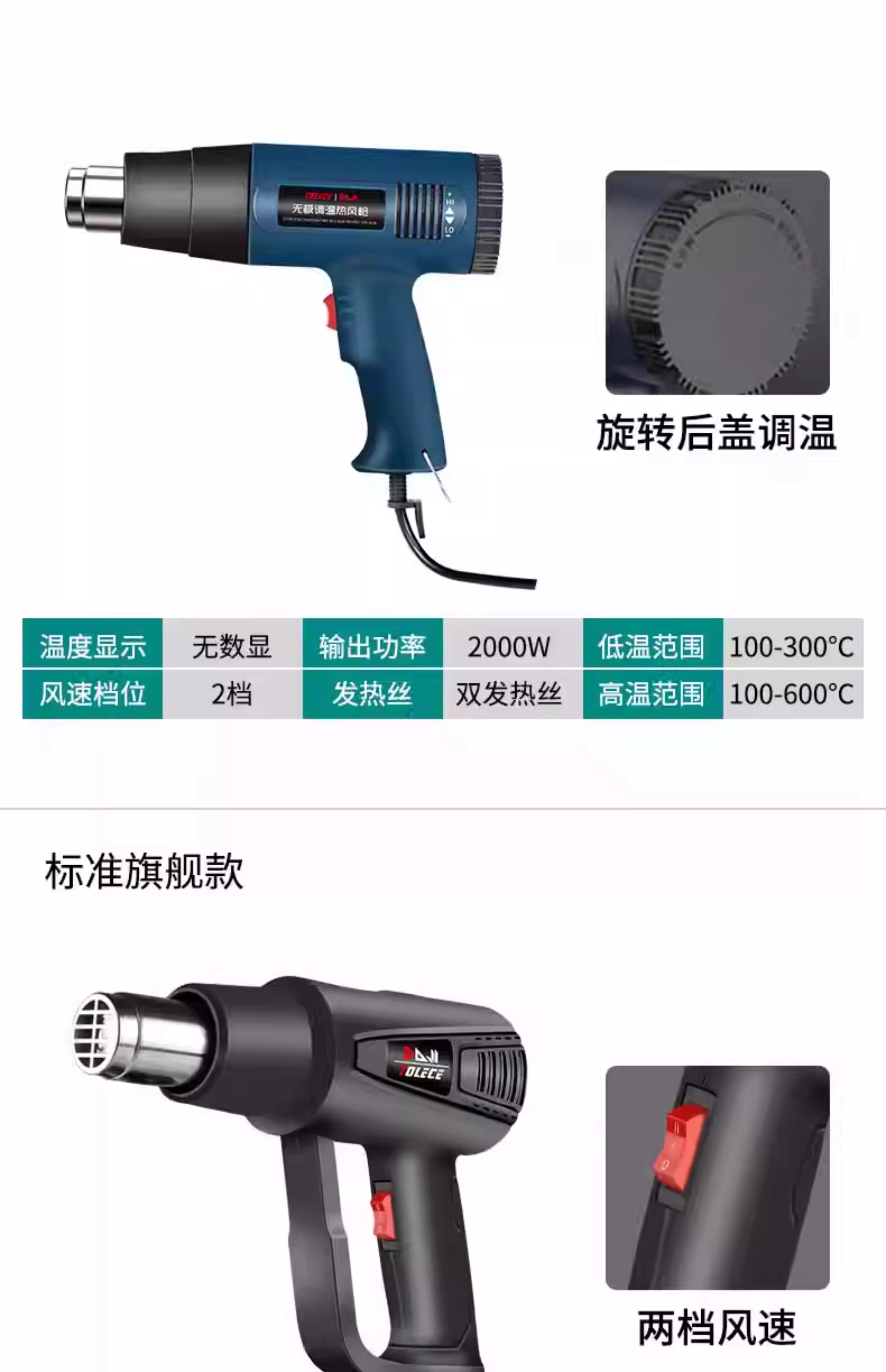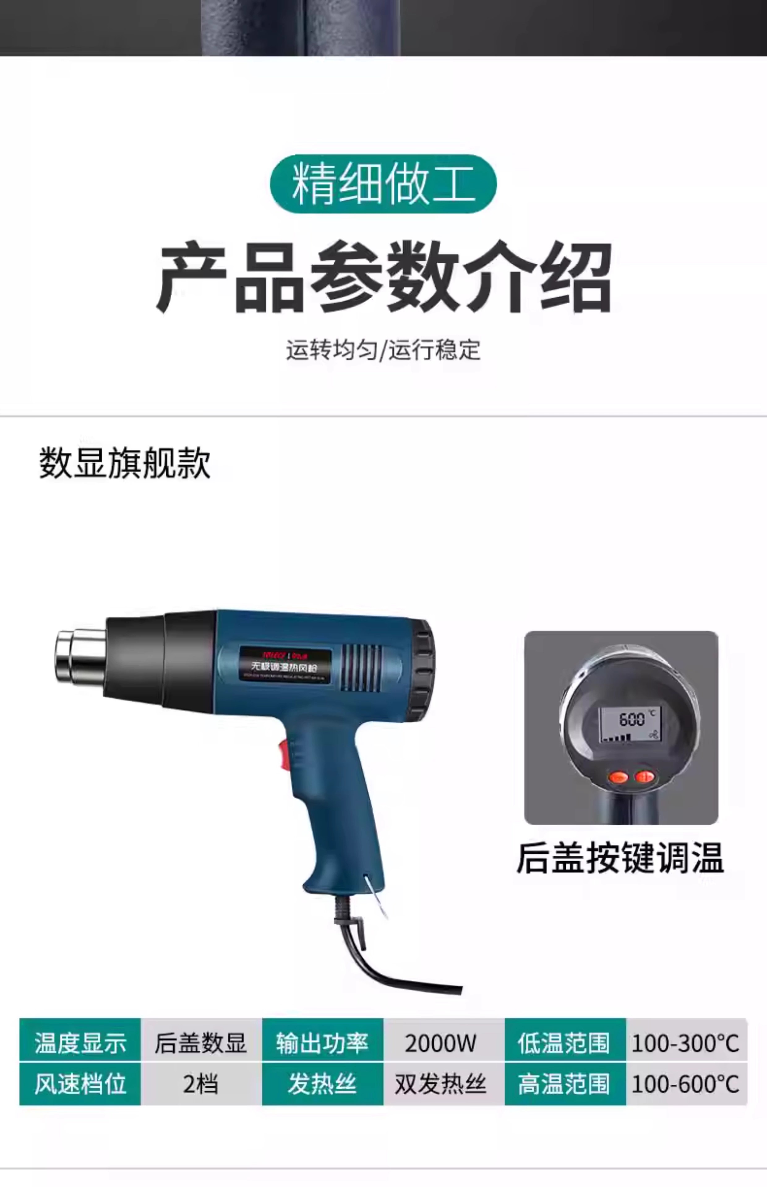 Jingyouyu industrial-grade hot air gun high-power high-temperature small baking gun film beautiful seam heat shrink tube woodworking edge banding hot air machine 2500W upgraded model (two-speed temperature adjustment)