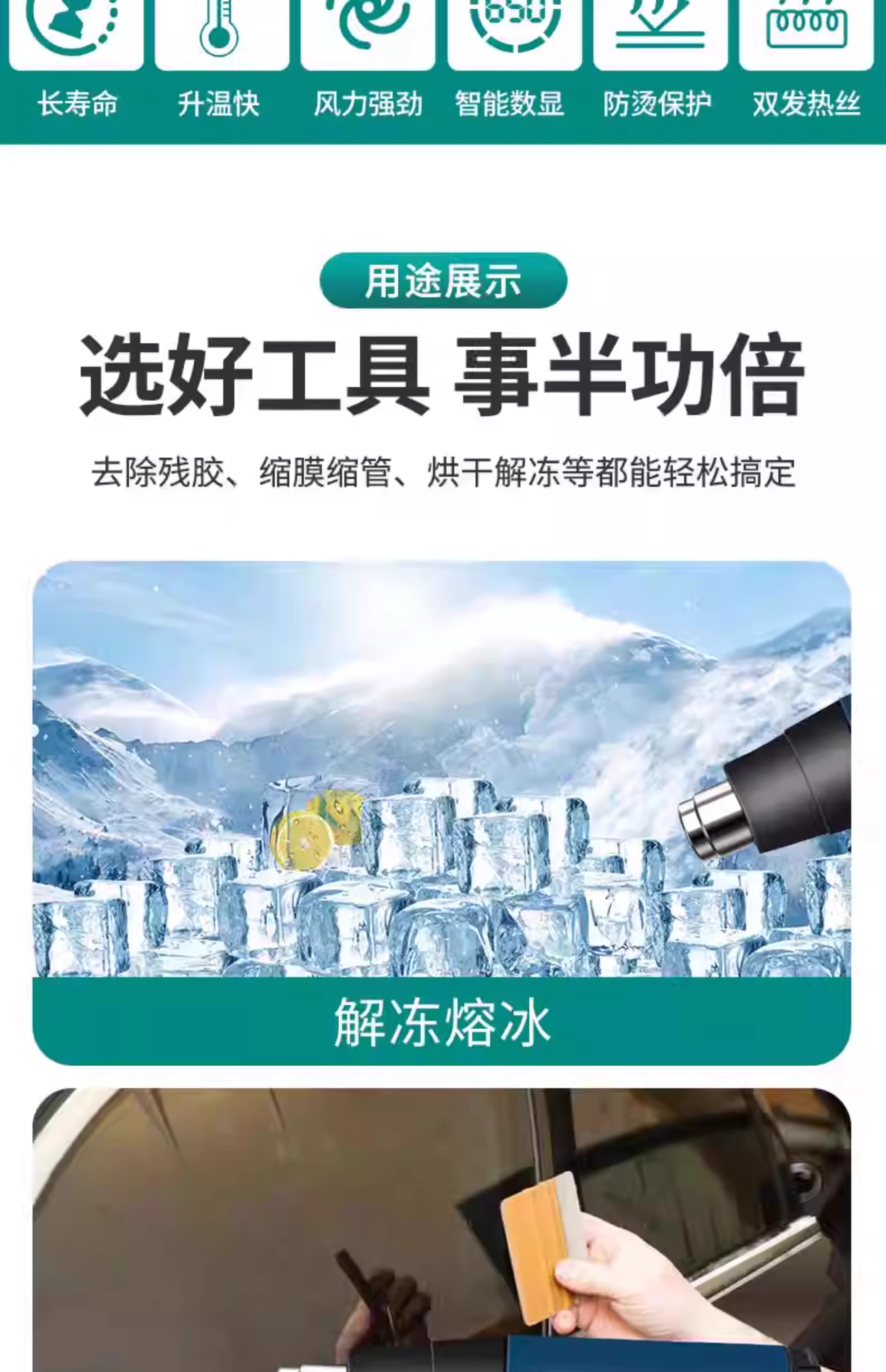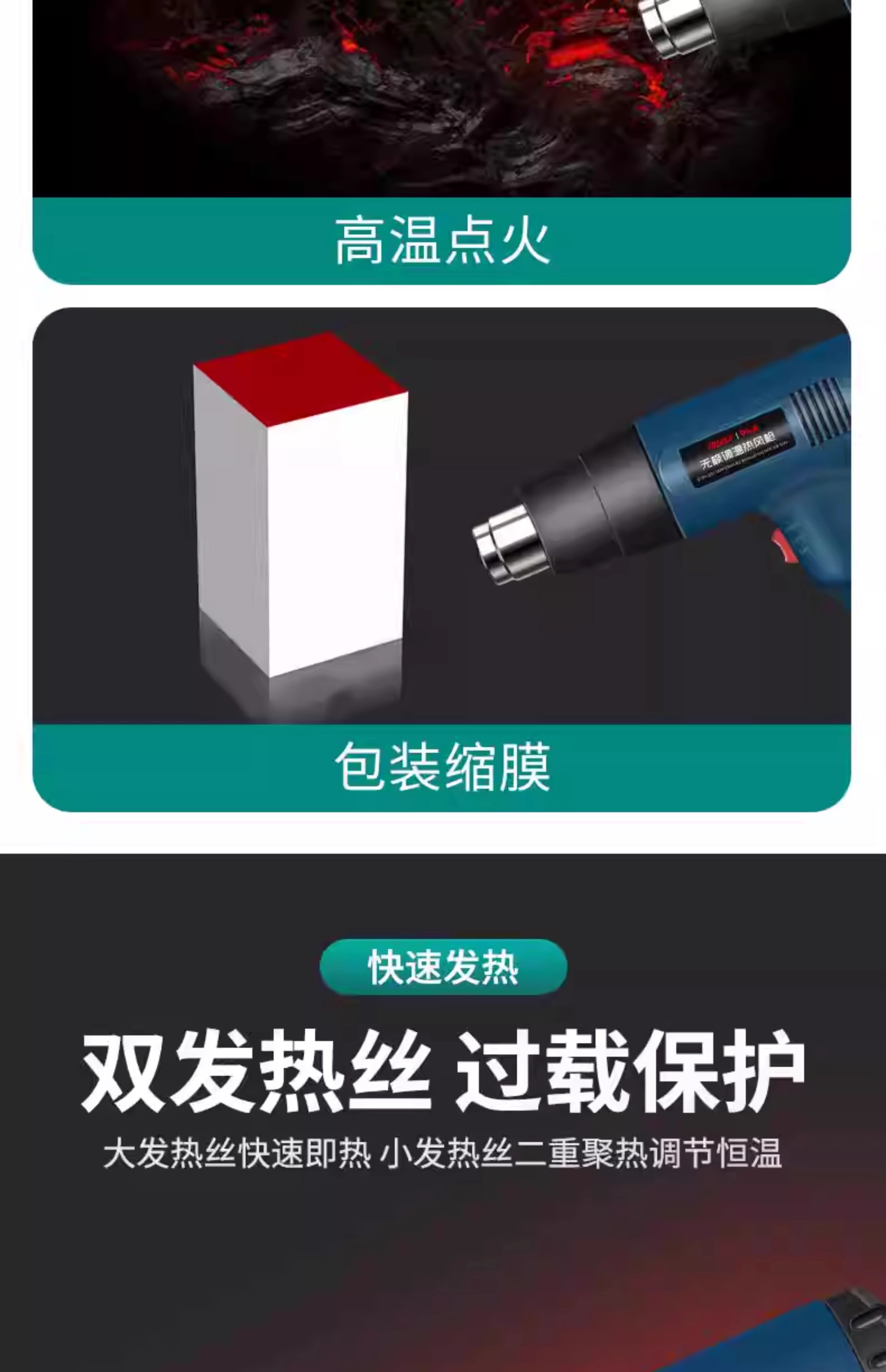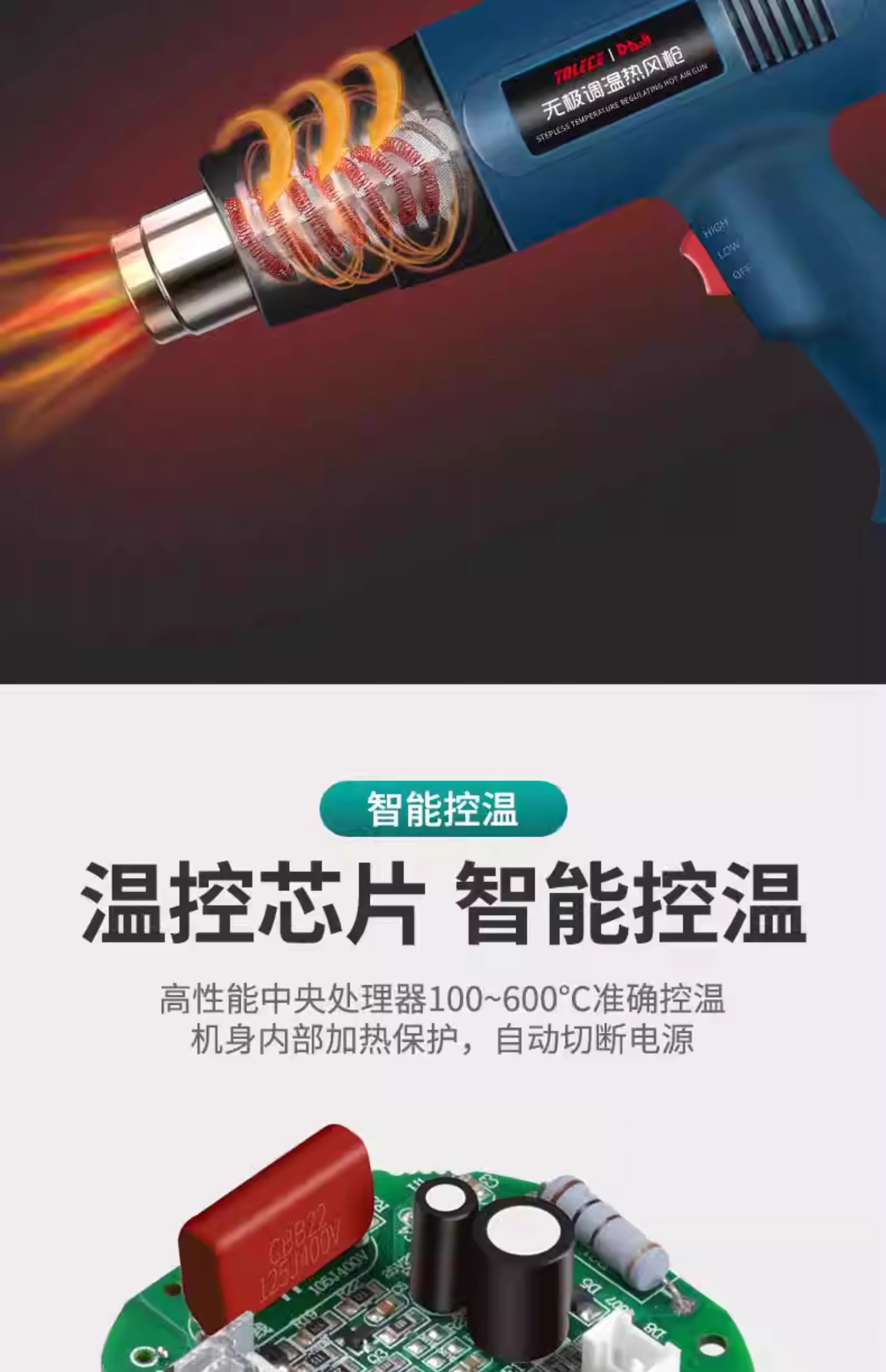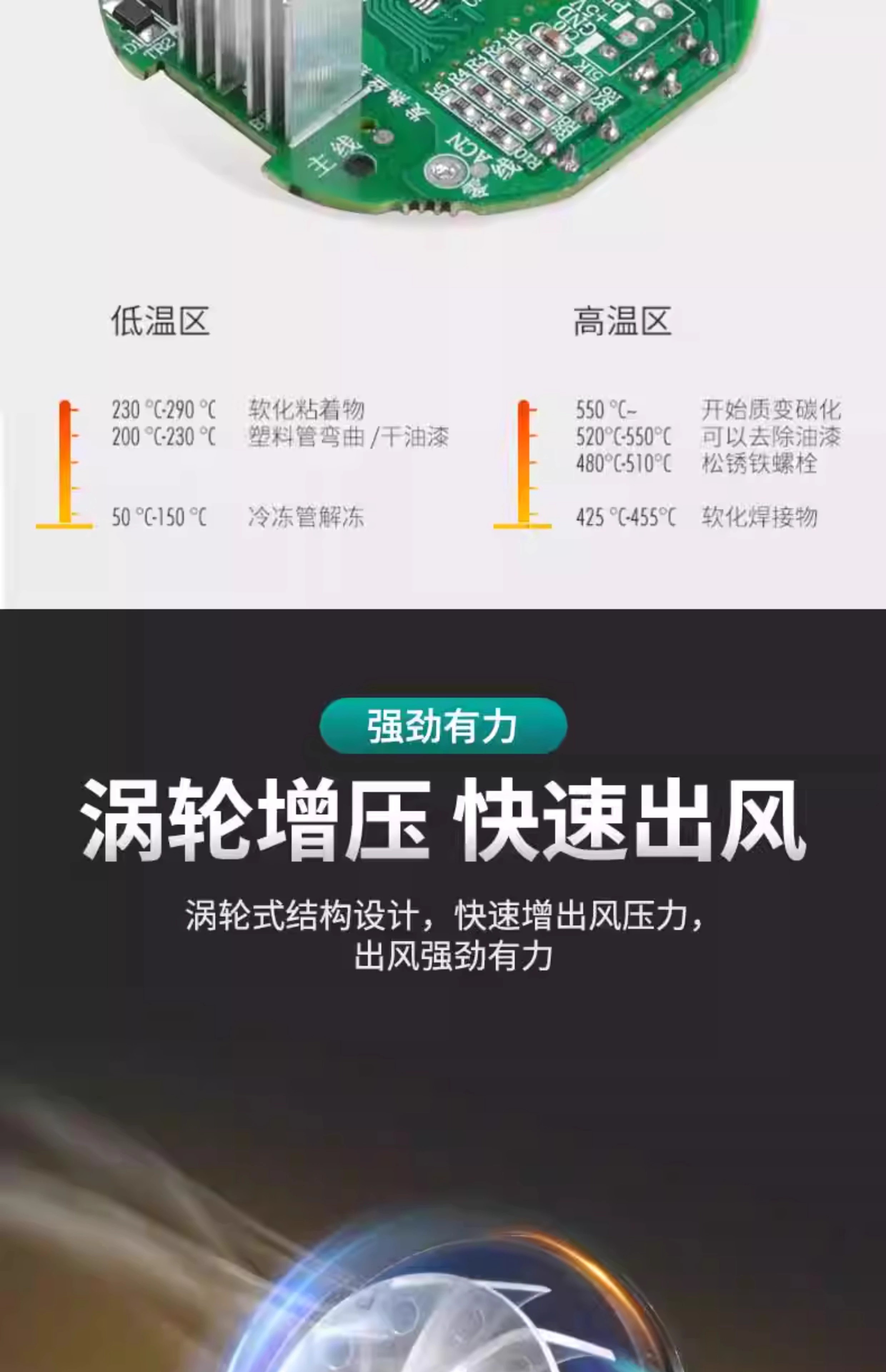 Jingyouyu industrial-grade hot air gun high-power high-temperature small baking gun film beautiful seam heat shrink tube woodworking edge banding hot air machine 2500W upgraded model (two-speed temperature adjustment)