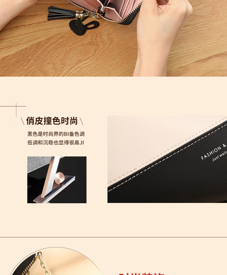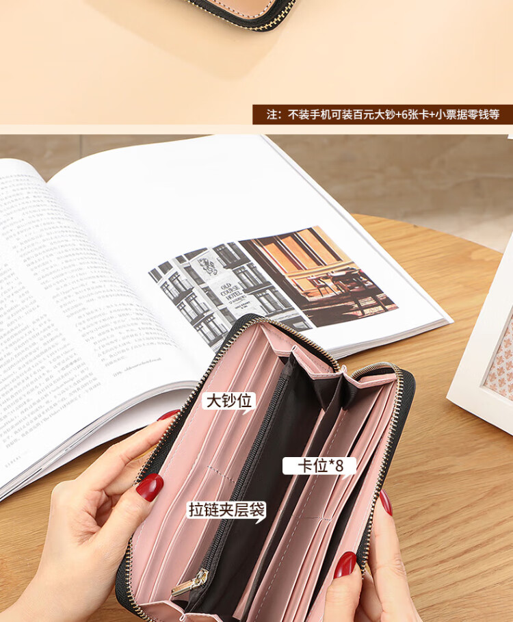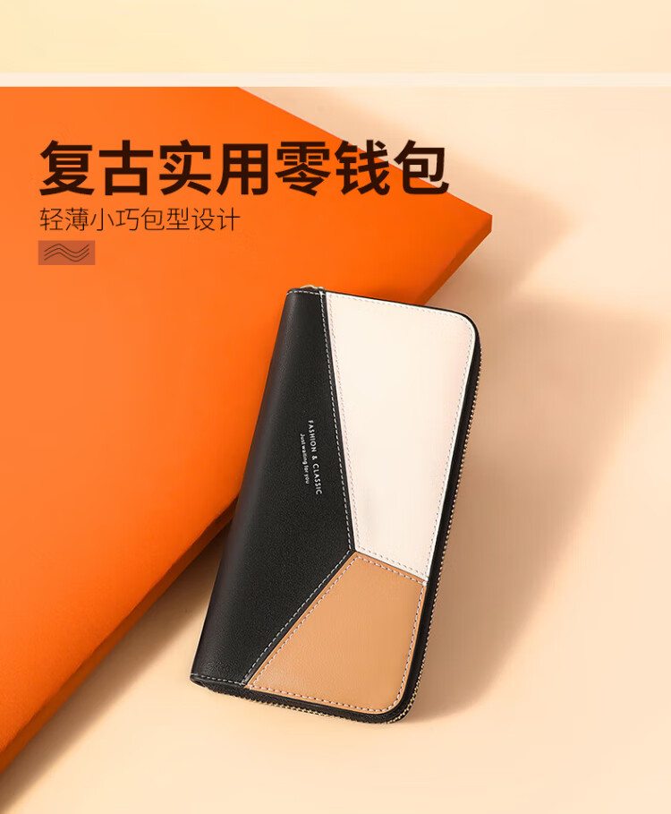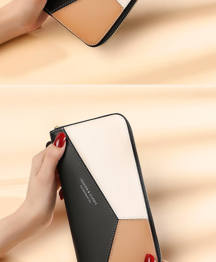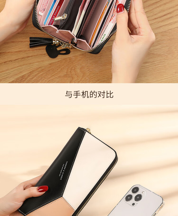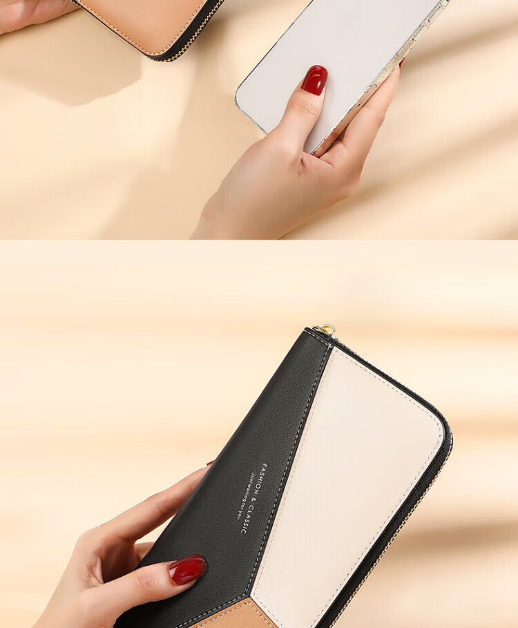 CADUNI KAISER cowhide women's wallet long simple and versatile large-capacity coin purse multi-card slot ticket holder multi-function wallet wallet black