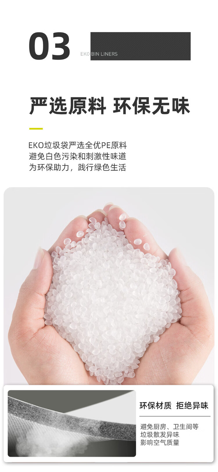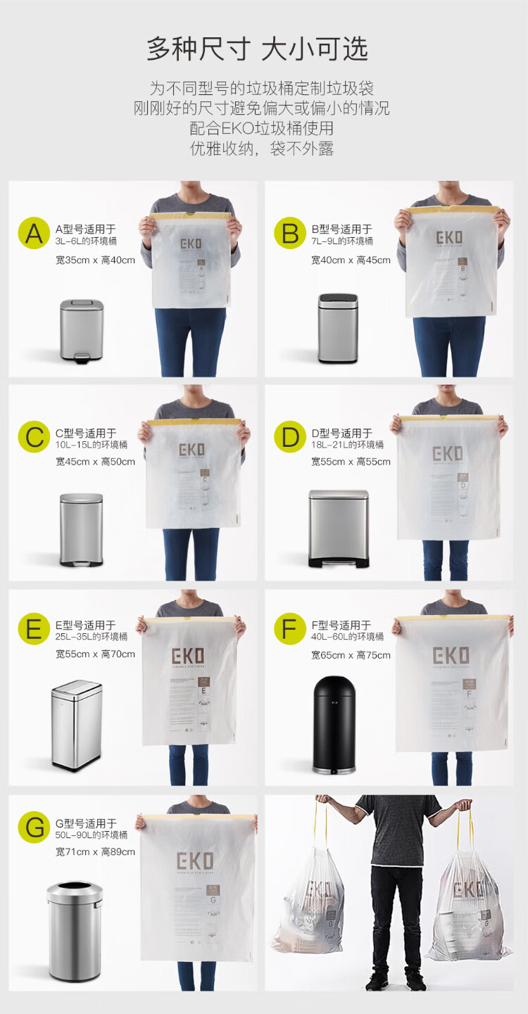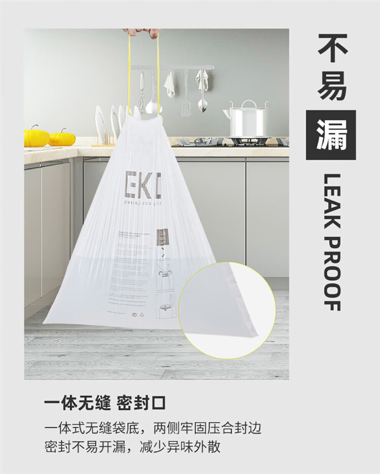 EKO garbage bag thickened commercial hotel property sanitation office home kitchen catering disposable flat mouth plastic bag medium size 45*50cm 60 pieces