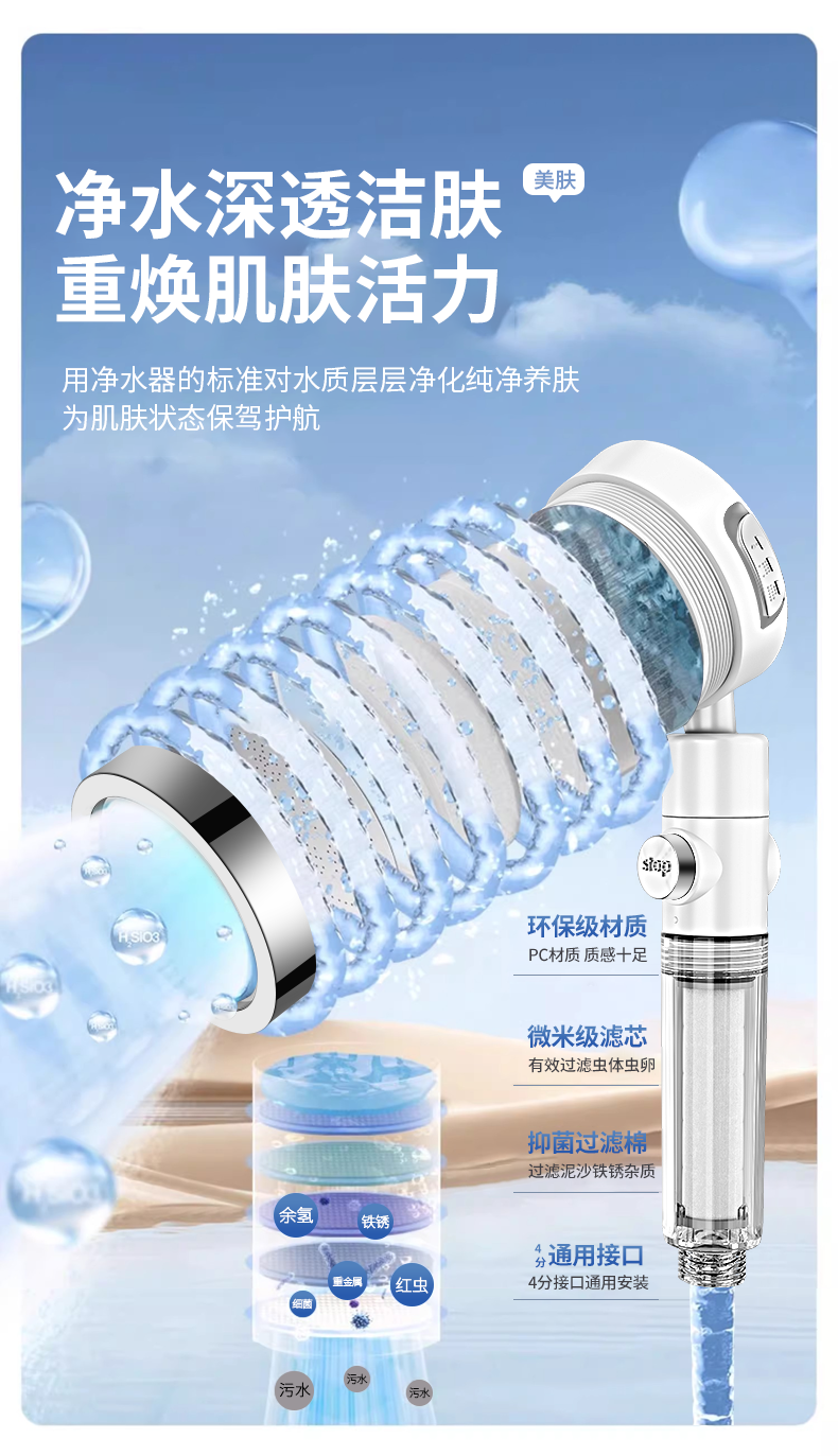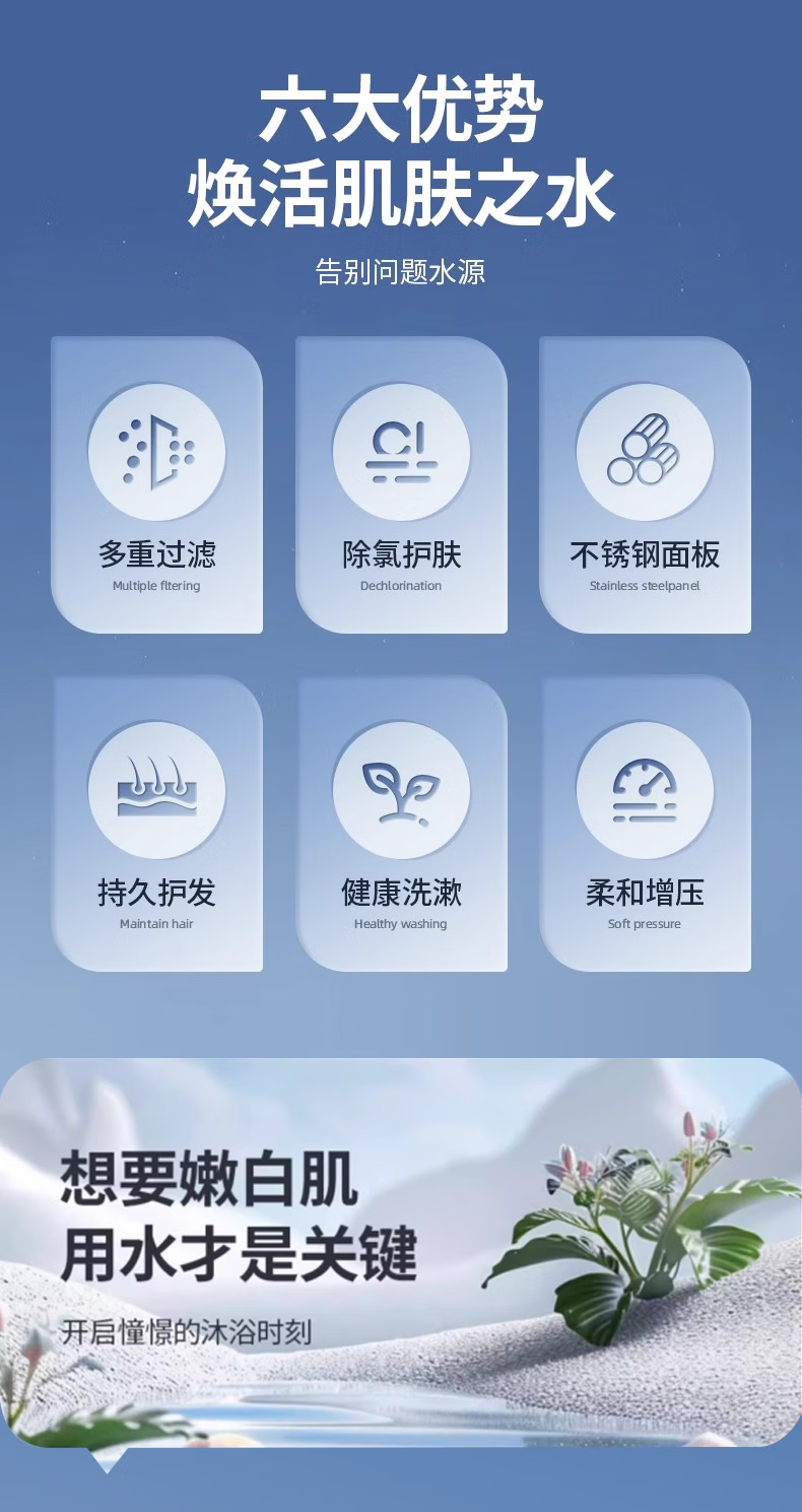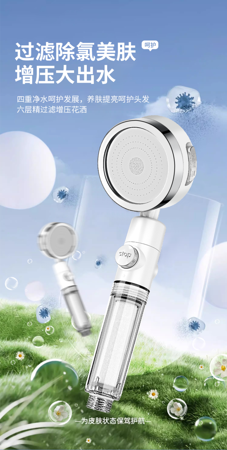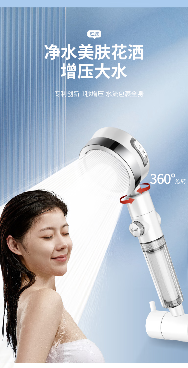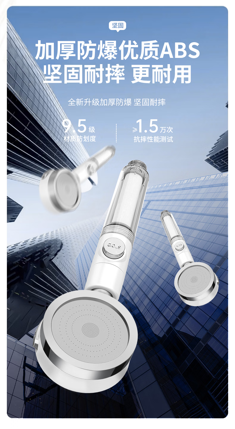 Muge Supercharged Shower Head Adjustment Travel Portable High-Pressure Shower Supercharged Dual Filter Yuba Bathroom Nozzle Crystal Silver Strong Filtration Three-speed Supercharged Large Flow Supercharged Filtered Shower + Filter Core*3