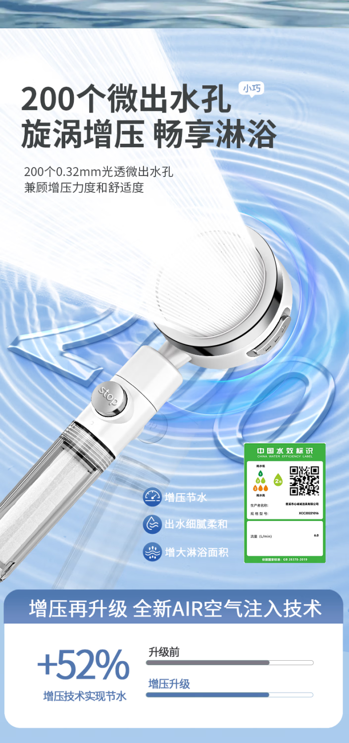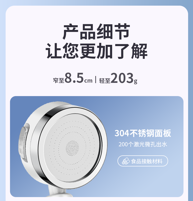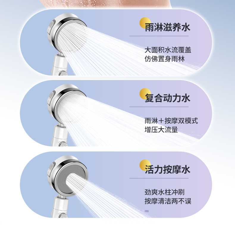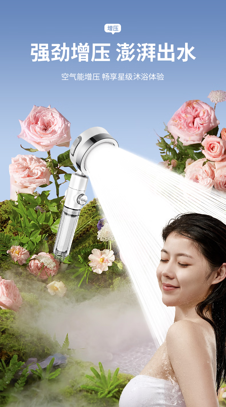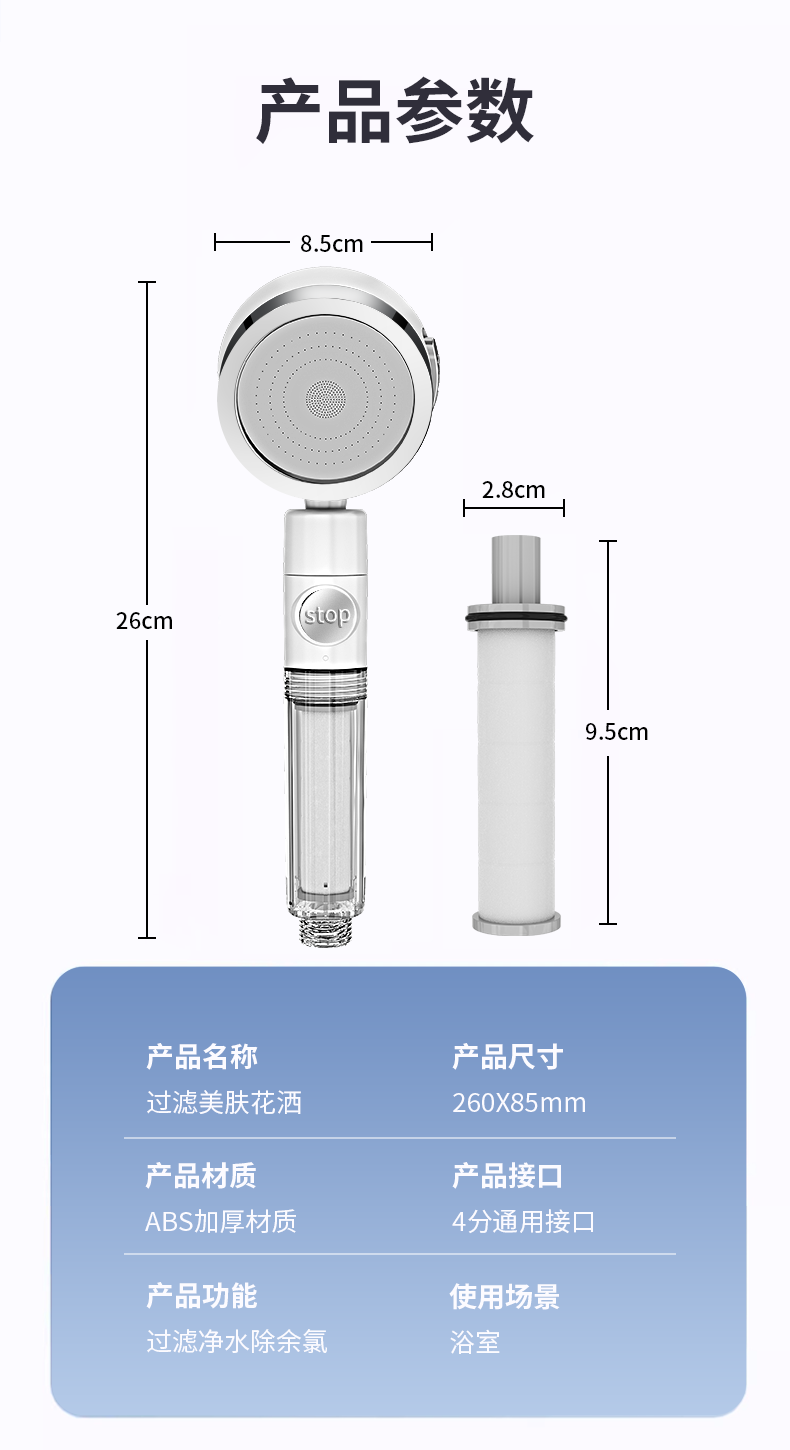 Muge Supercharged Shower Head Adjustment Travel Portable High-Pressure Shower Supercharged Dual Filter Yuba Bathroom Nozzle Crystal Silver Strong Filtration Three-speed Supercharged Large Flow Supercharged Filtered Shower + Filter Core*3