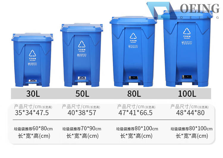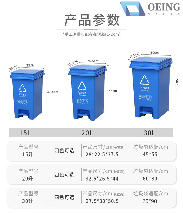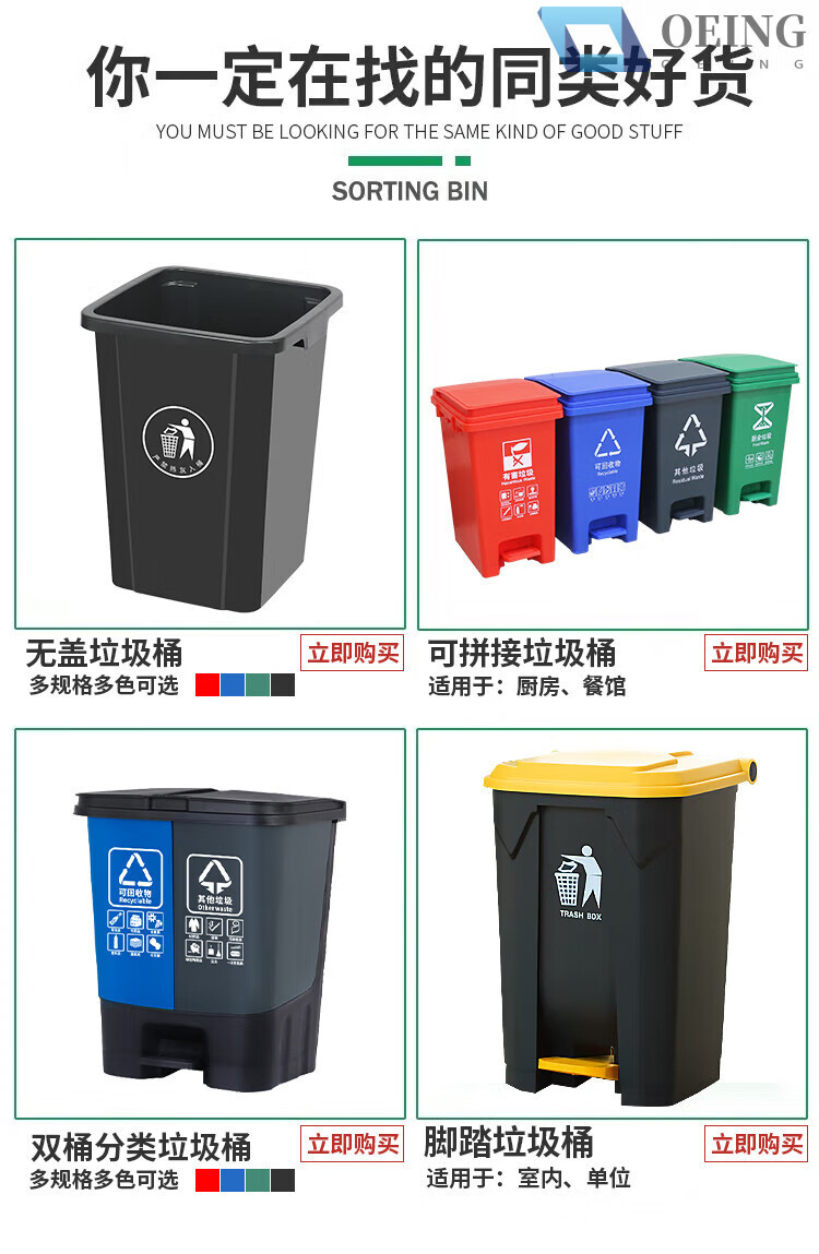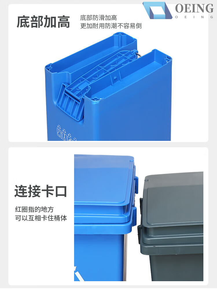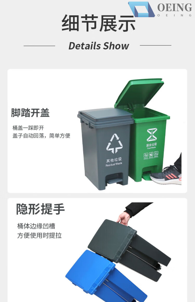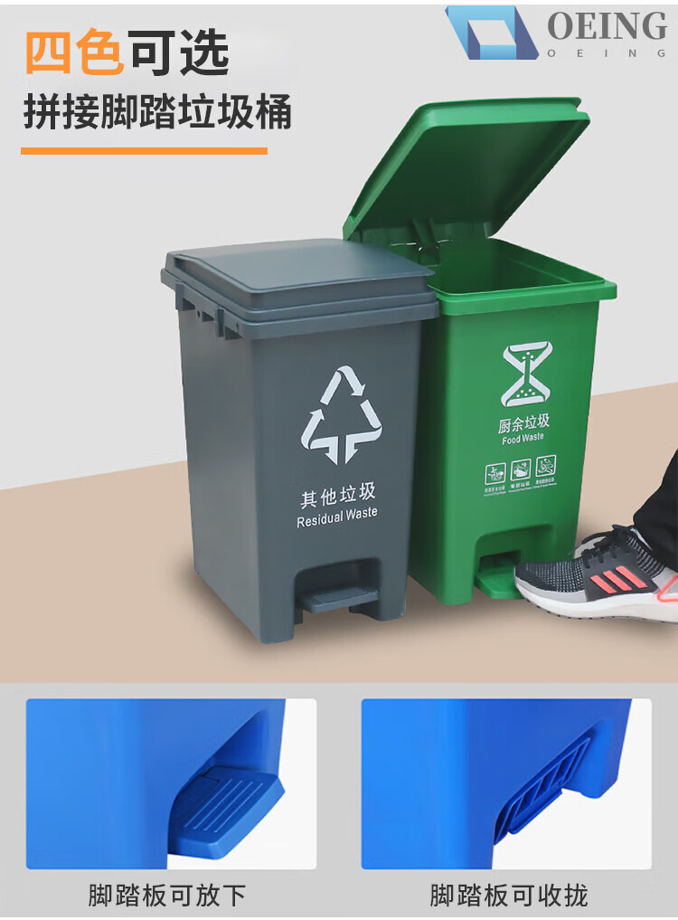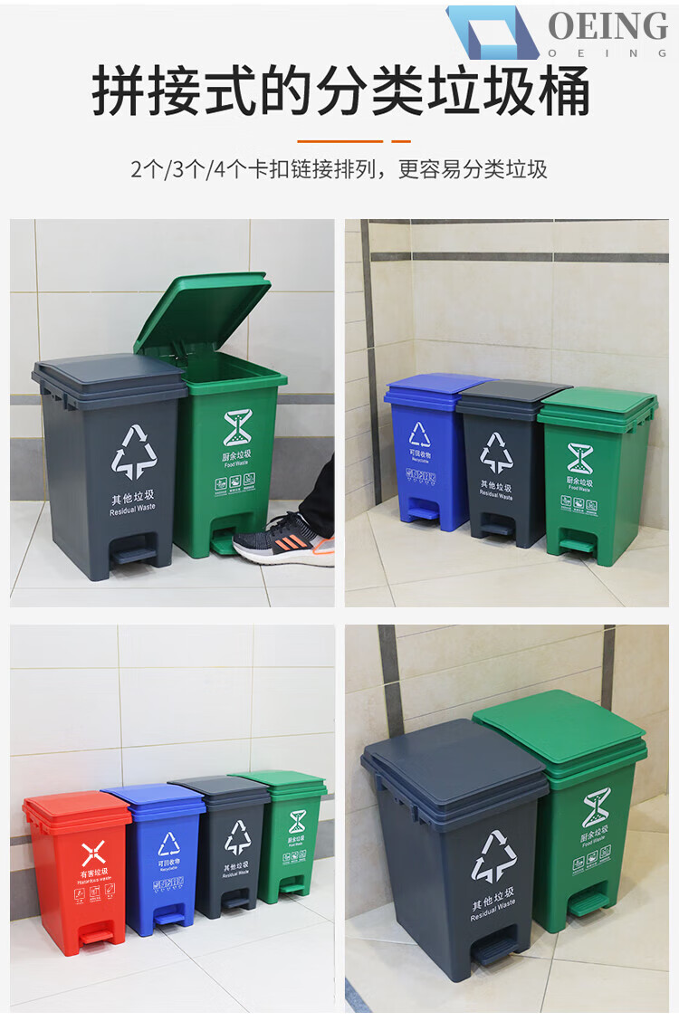 OEING four-color classification trash can for home kitchen and commercial use with cover, splicable kitchen waste, harmful and recyclable 30 liters, 15 liters, splicable MO (gray others) with a free roll of garbage bags