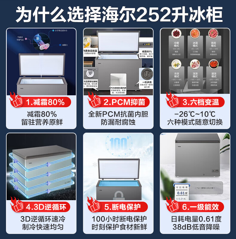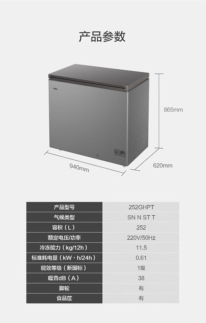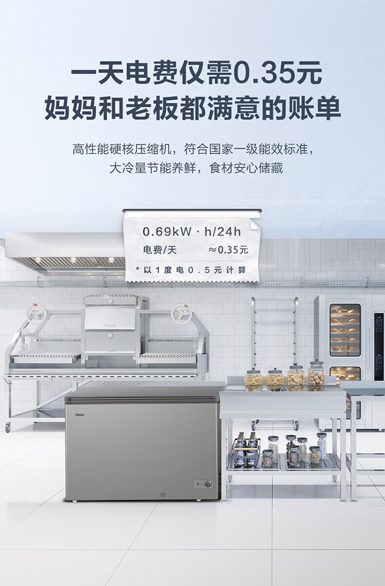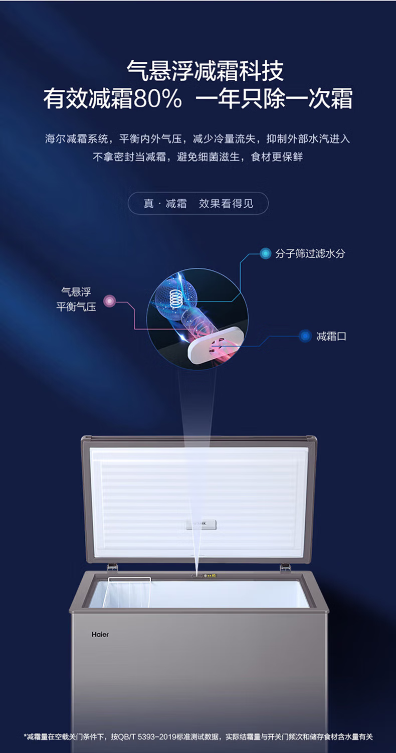 Haier freezer for home use without defrosting 300 liters large capacity first-class energy efficiency energy-saving fully frozen refrigeration single temperature 300 liters - 35 degrees deep cooling first-class energy efficiency automatic defrost