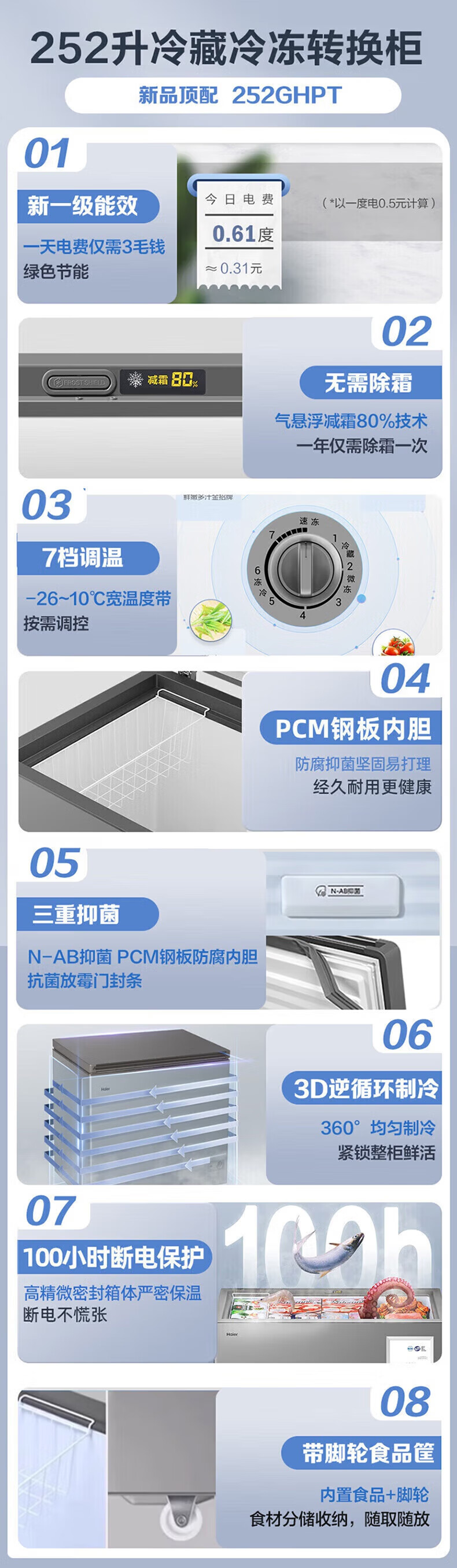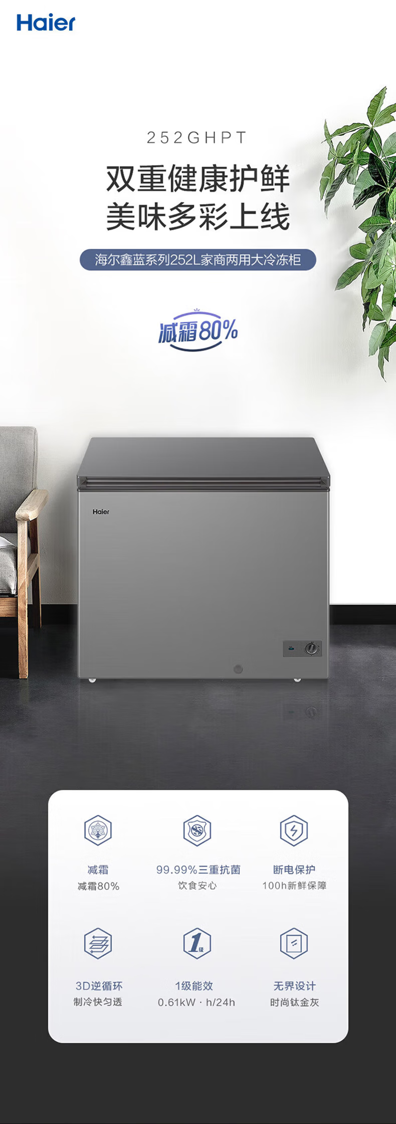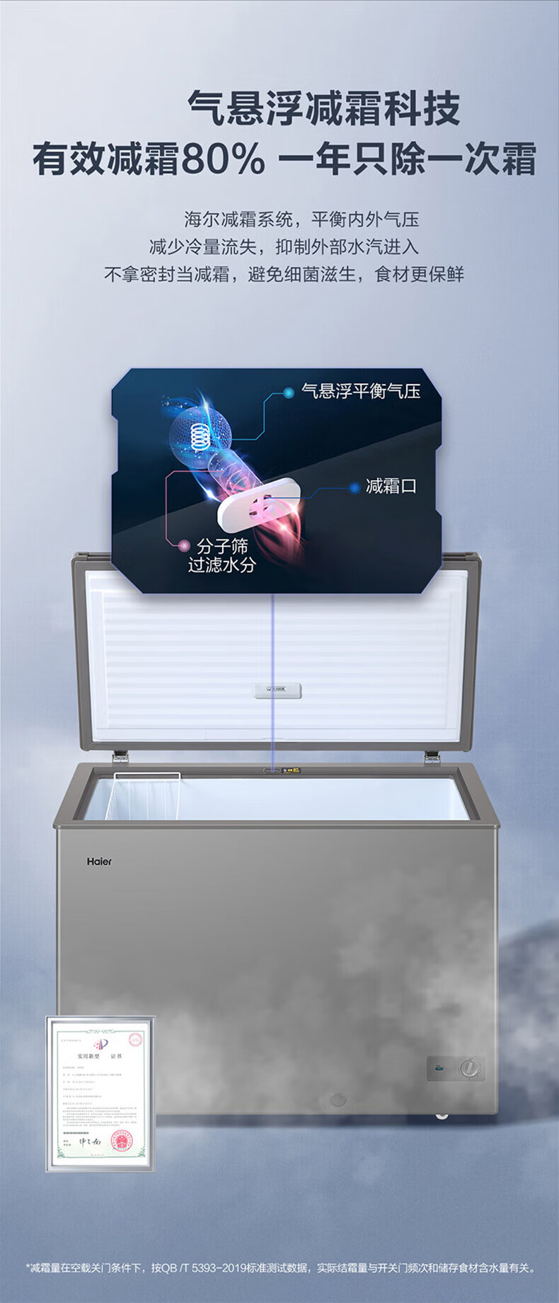 Haier freezer for home use without defrosting 300 liters large capacity first-class energy efficiency energy-saving fully frozen refrigeration single temperature 300 liters - 35 degrees deep cooling first-class energy efficiency automatic defrost