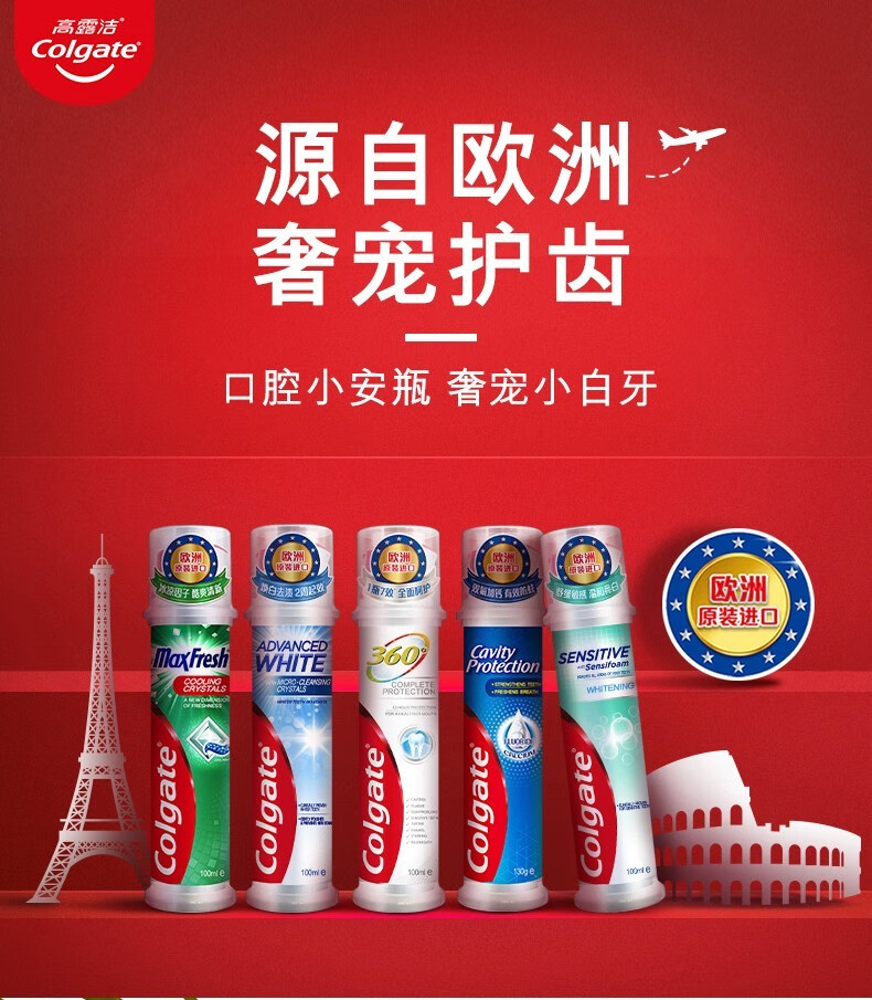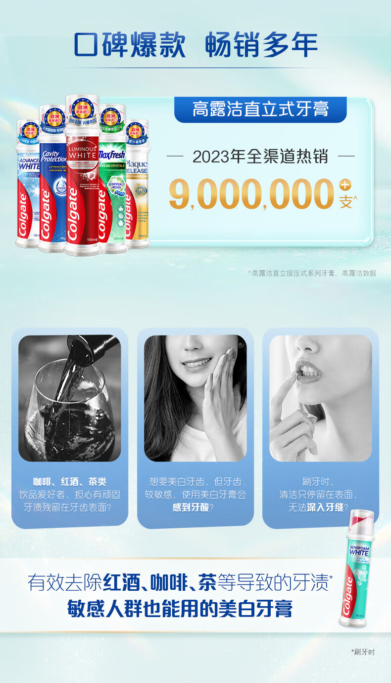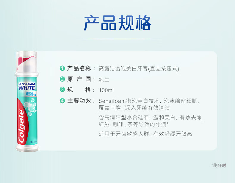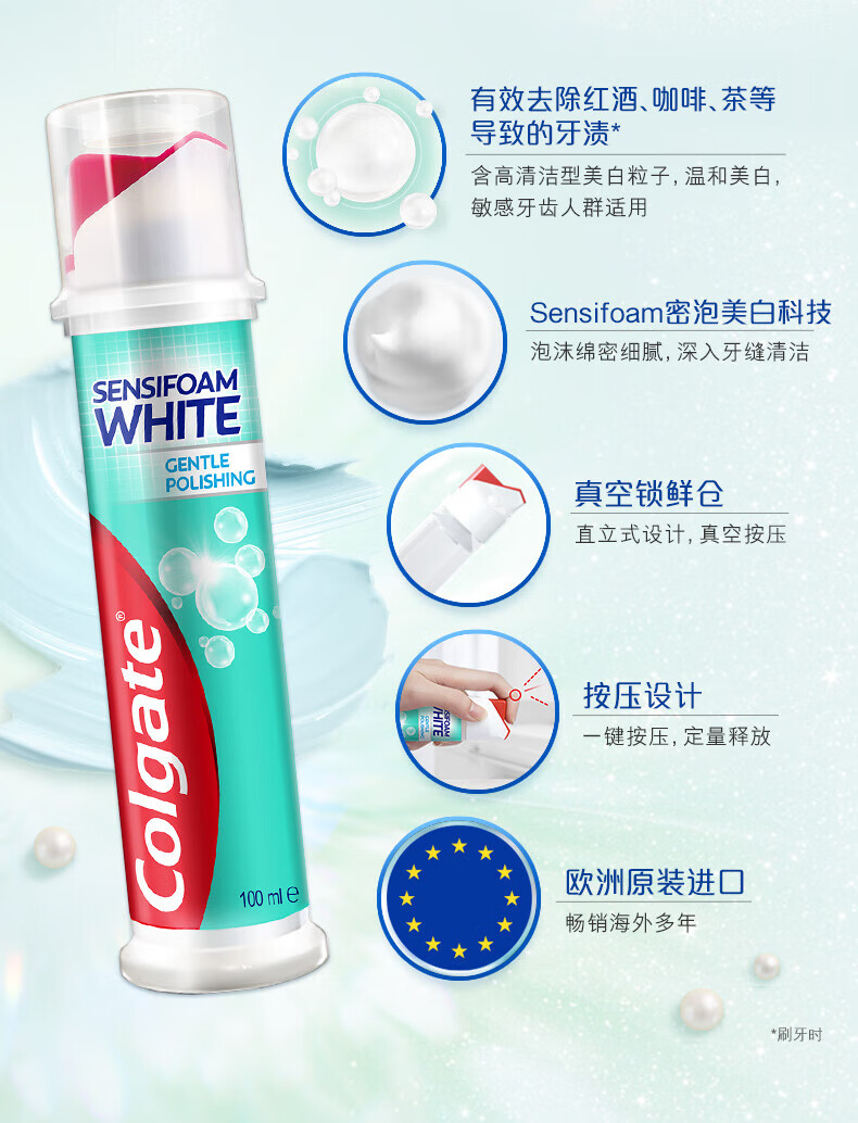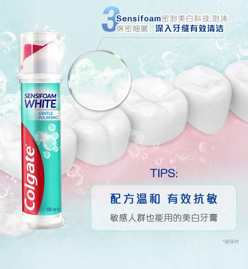 Colgate dense foam whitening, imported from Europe, upright pump type toothpaste for sensitive teeth, affordable combination, dense foam whitening, 100ml*3 pieces