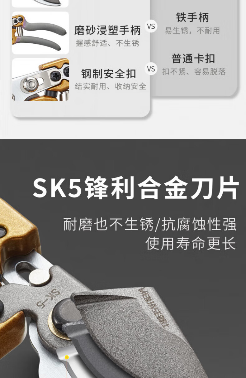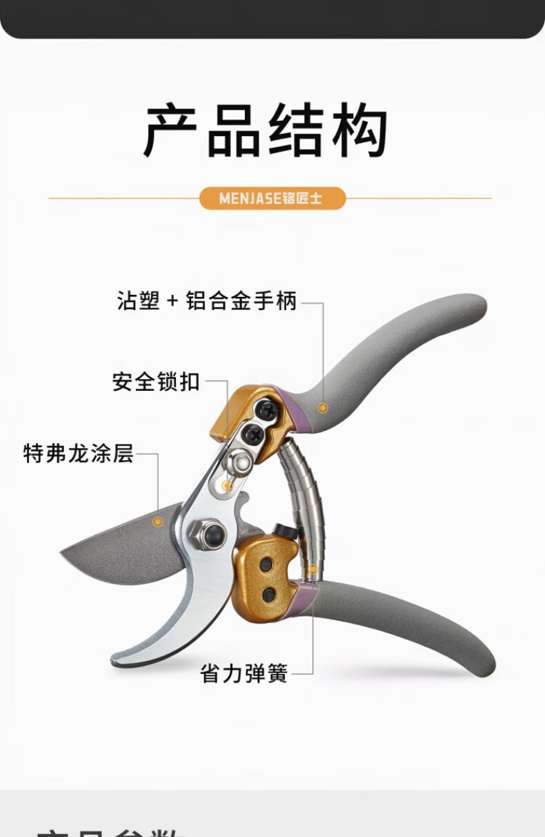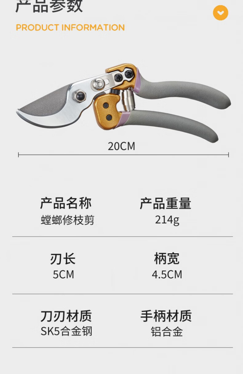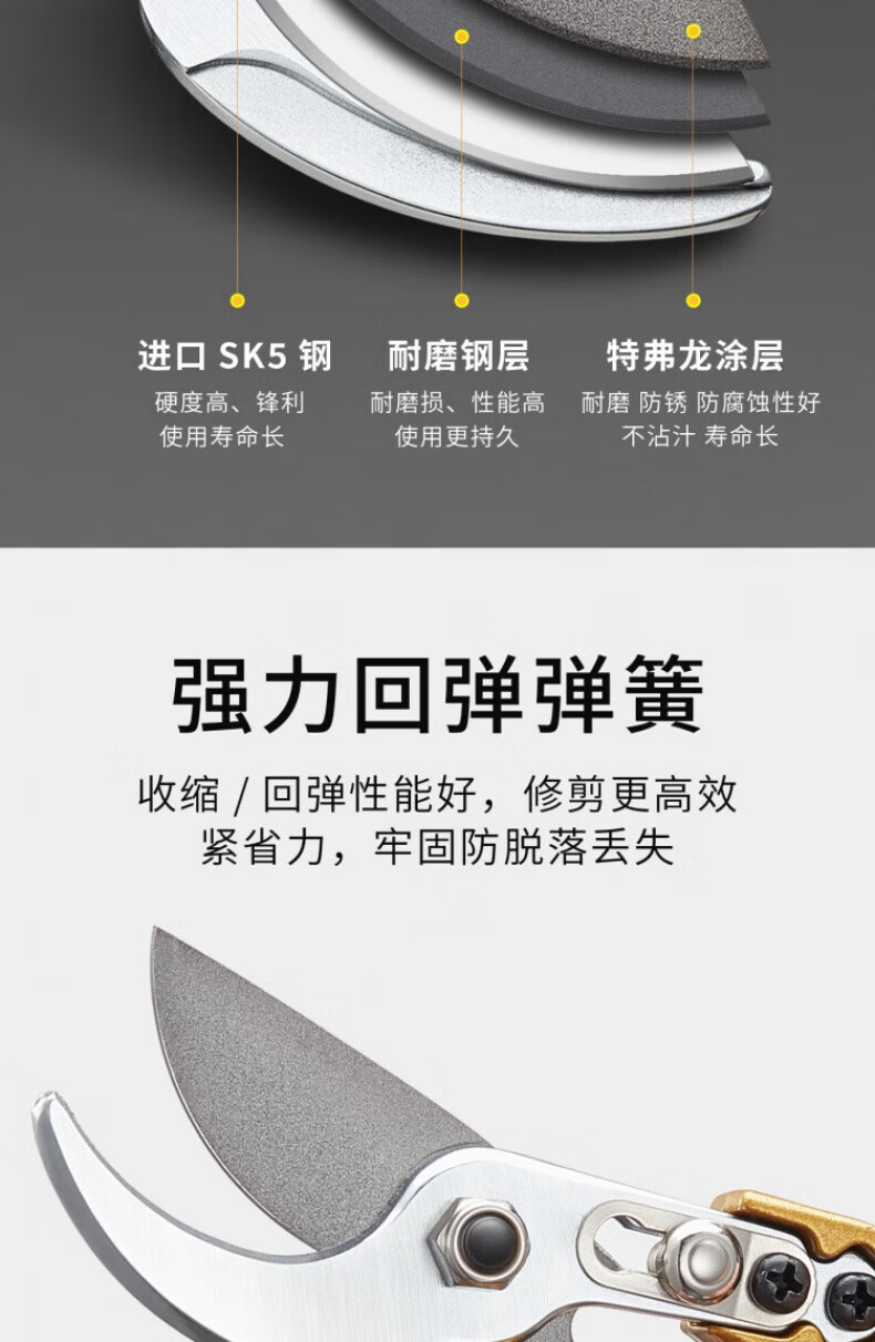 Xulin German brand gardening scissors pruning shears large scissors for cutting branches special pruning branches rough pruning flowers and greening gray