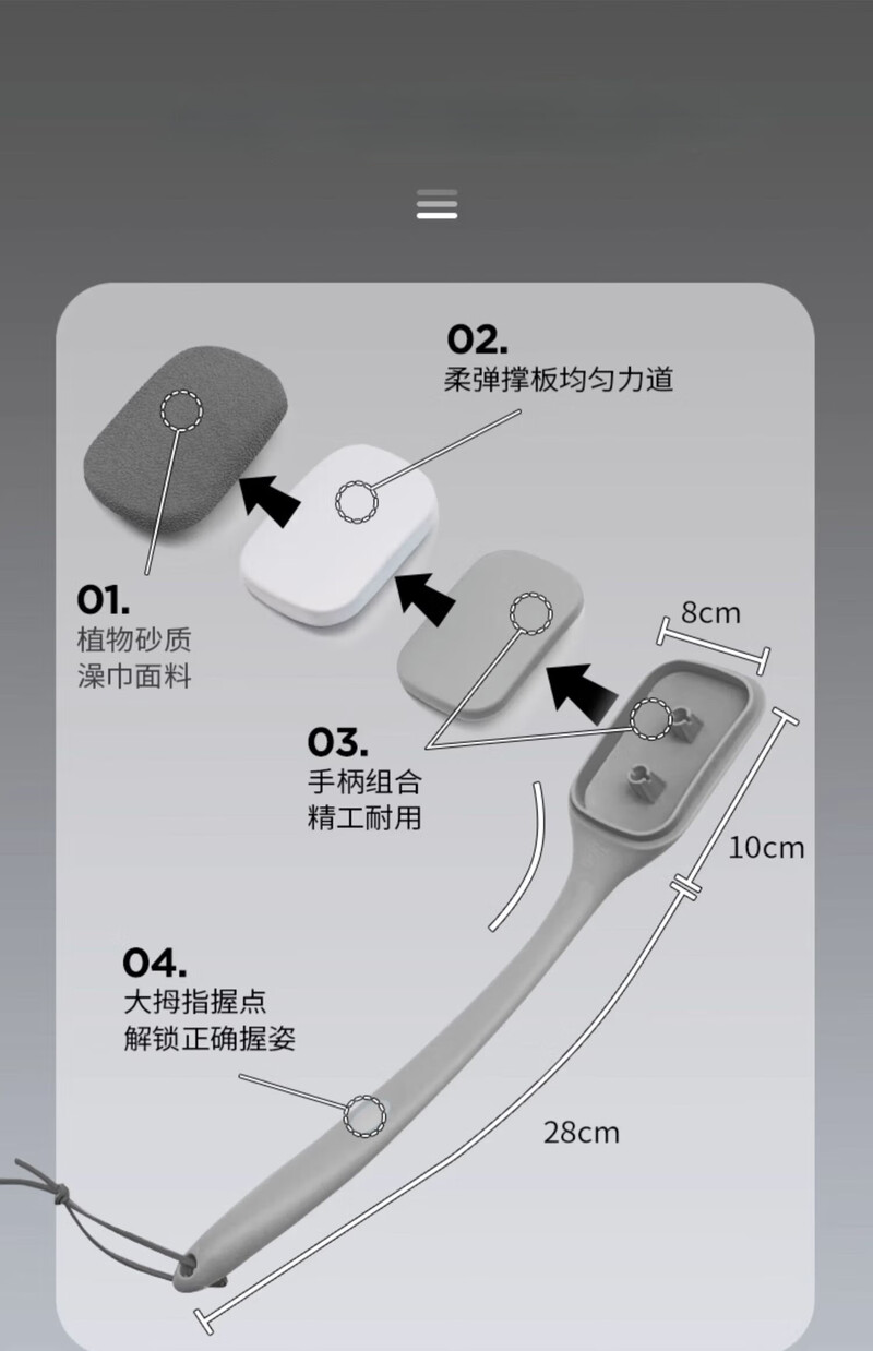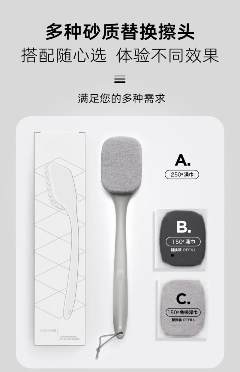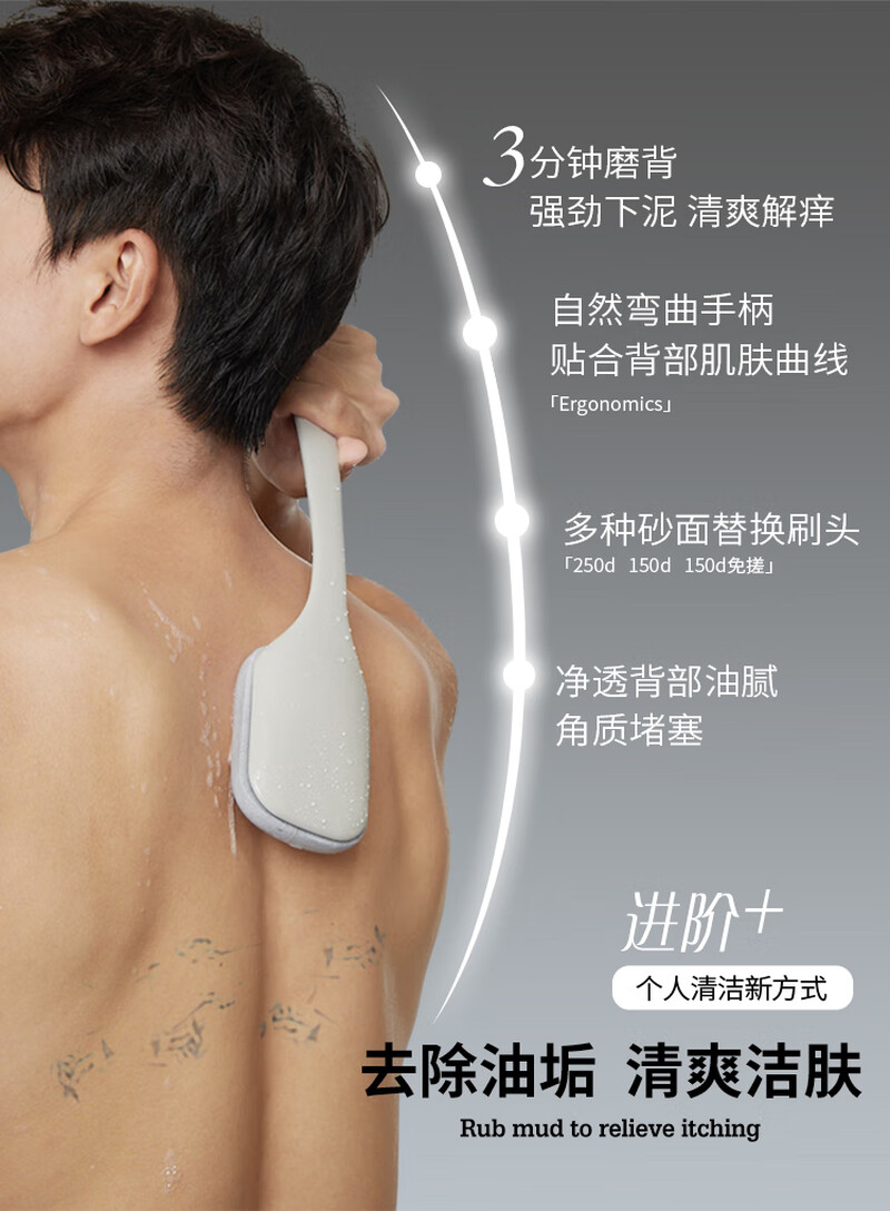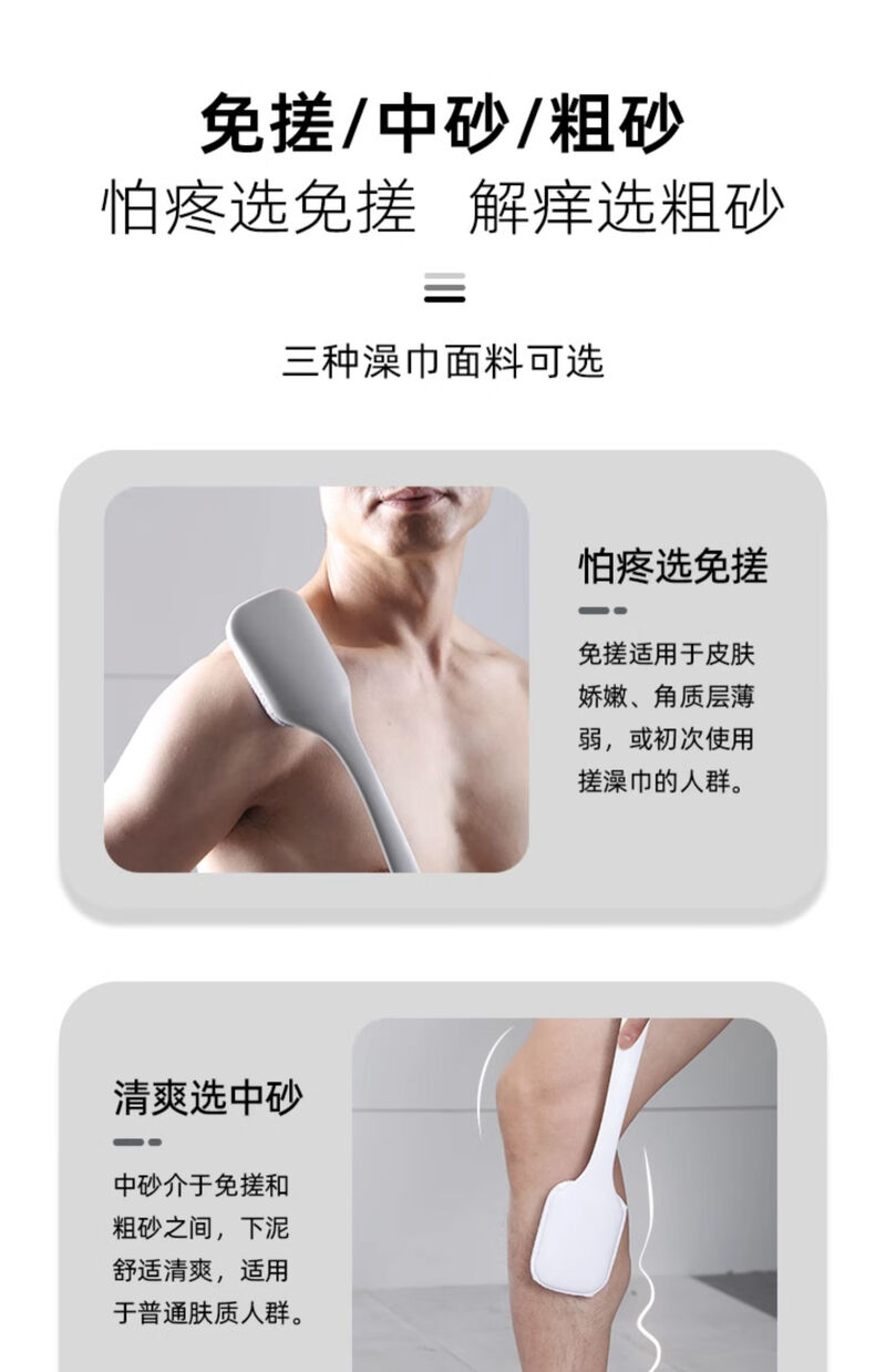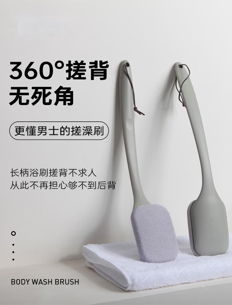 Back rub, men's long-handled back bath and bath brush, rub mud, do not ask for help, rub bath towel, whole body cleaning combination, matt gray bath brush, coarse sand, double-sided rub