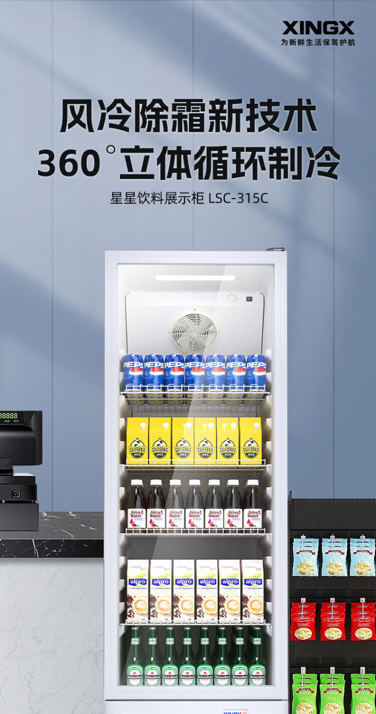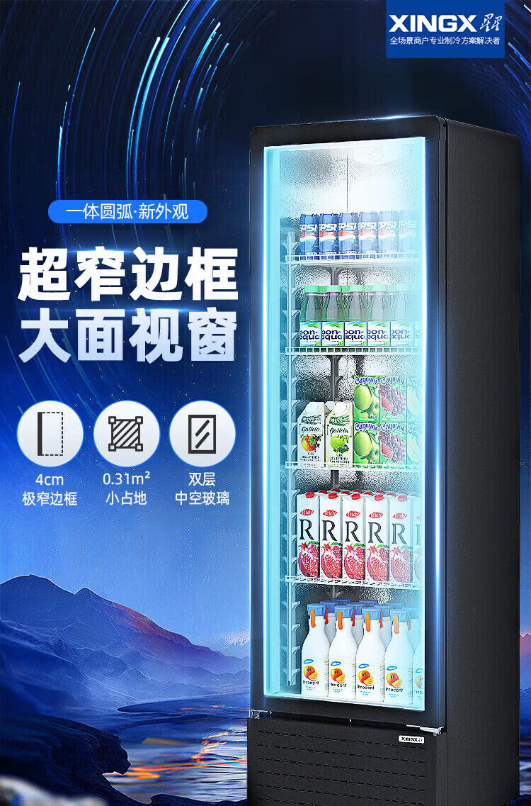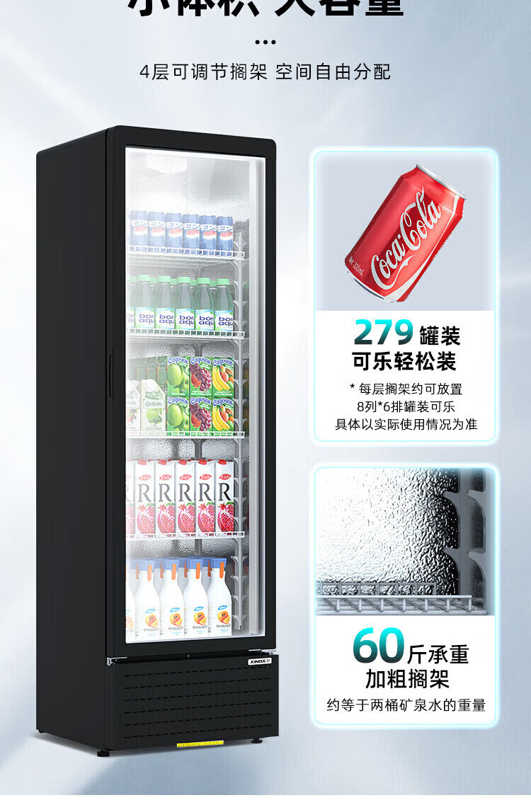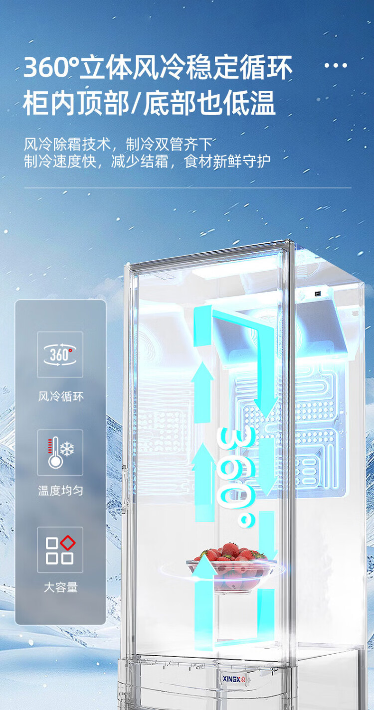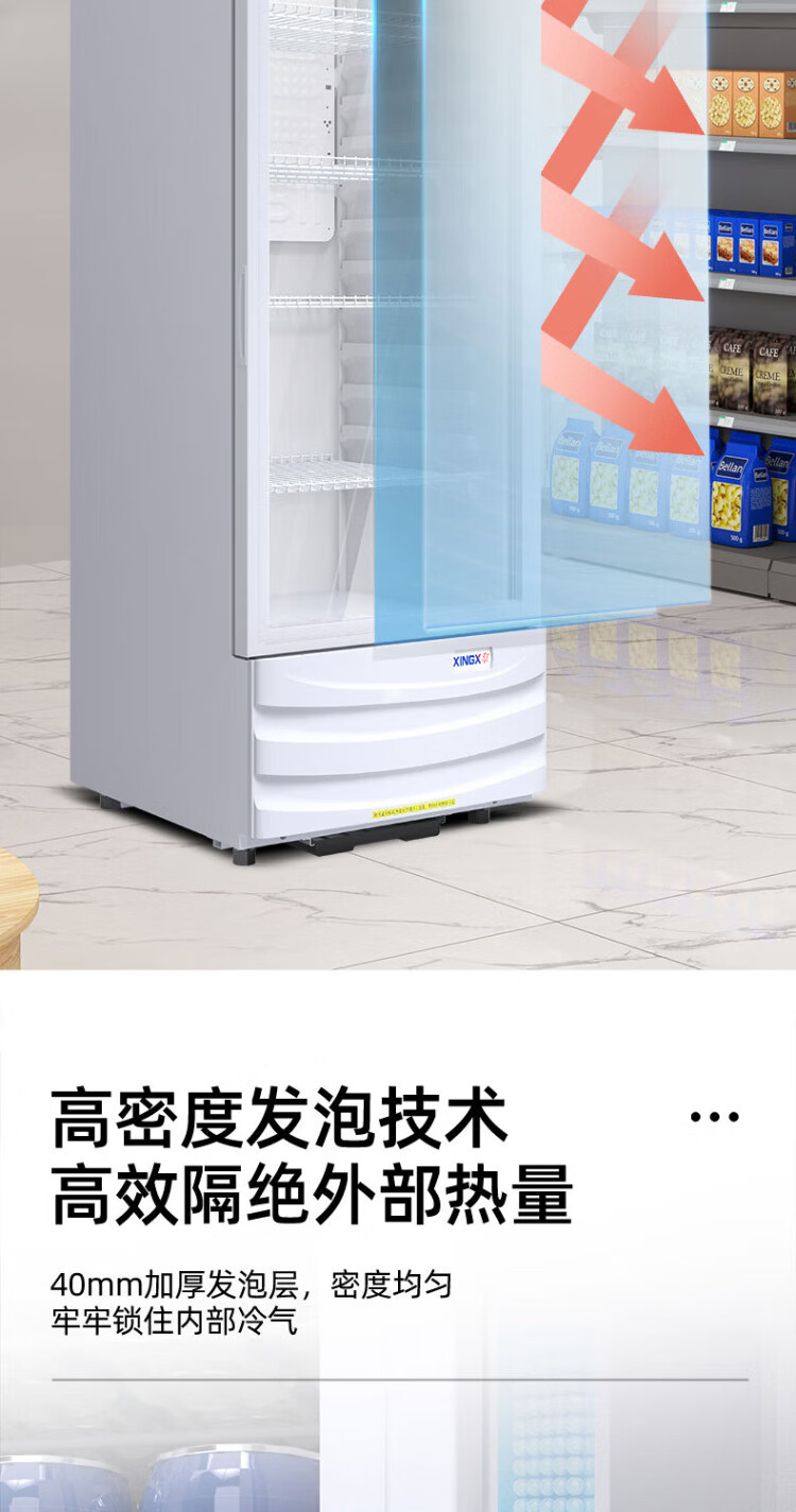 XINGX display cabinet refrigerated fresh cabinet air-cooled defrost beverage cabinet single-door vertical freezer direct-cooled refrigerator commercial food sample retention supermarket convenience store vegetable and fruit beer water cabinet air-cooled defrost level 1 energy efficiency 228 liters LSC-235C