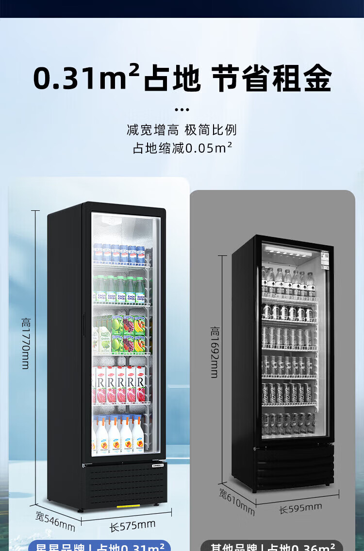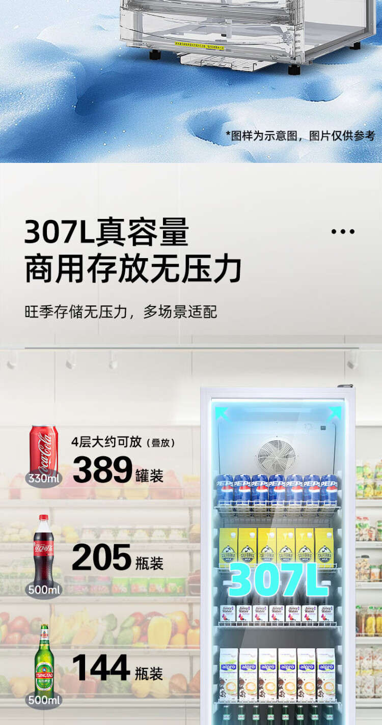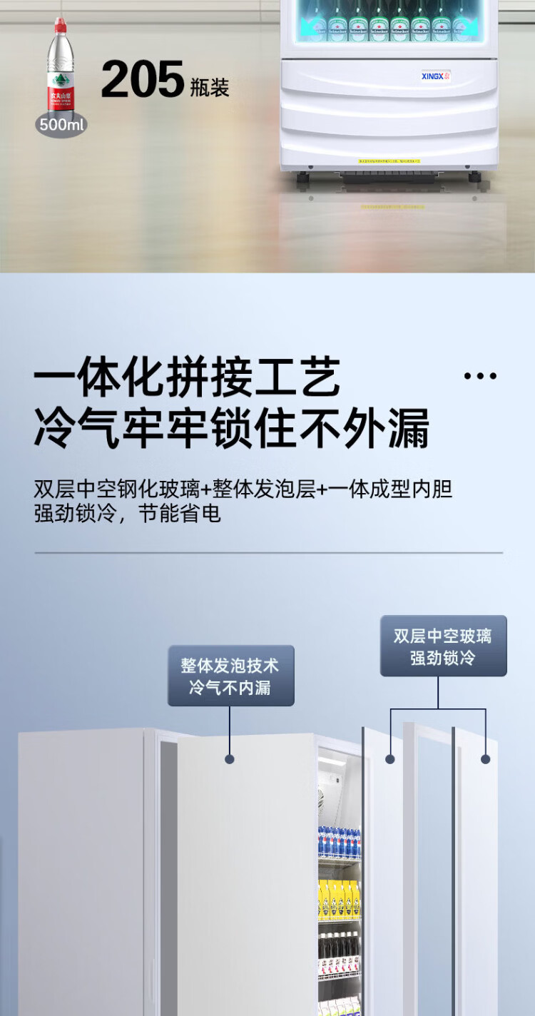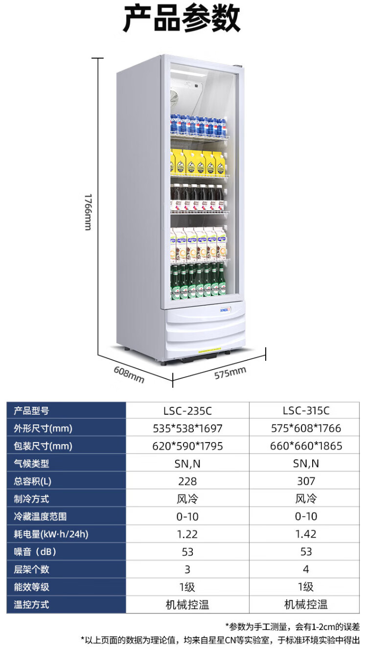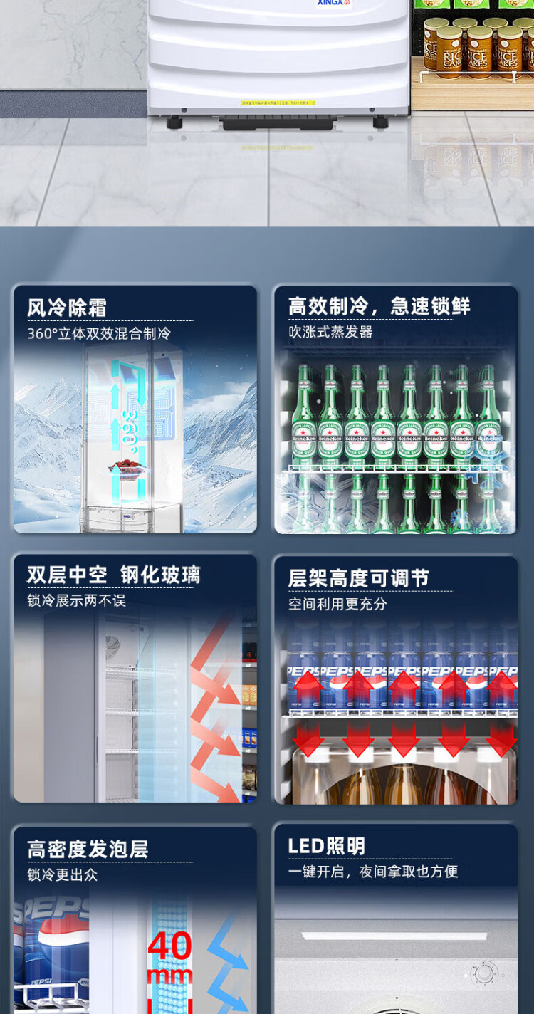 XINGX display cabinet refrigerated fresh cabinet air-cooled defrost beverage cabinet single-door vertical freezer direct-cooled refrigerator commercial food sample retention supermarket convenience store vegetable and fruit beer water cabinet air-cooled defrost level 1 energy efficiency 228 liters LSC-235C