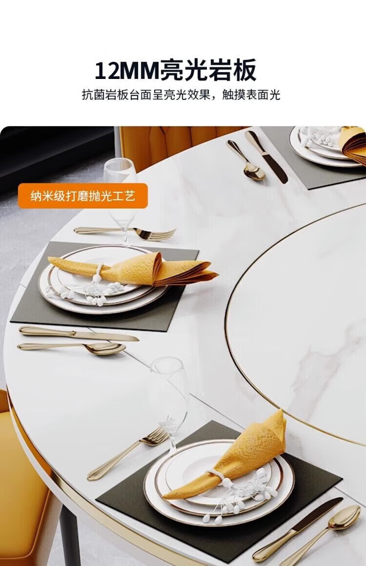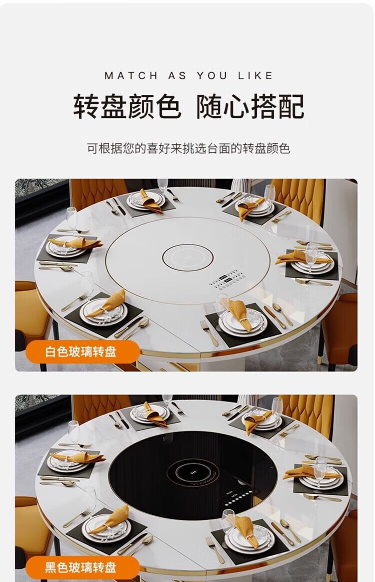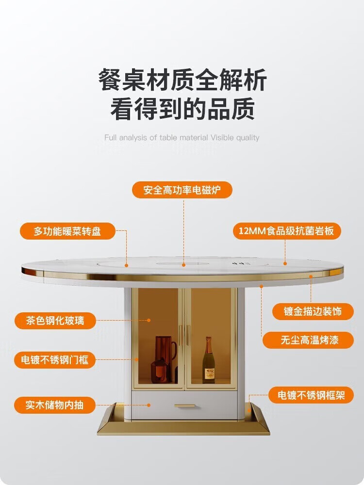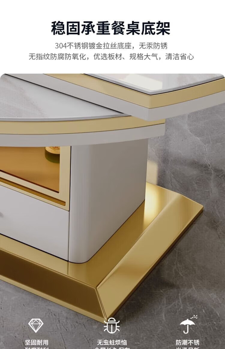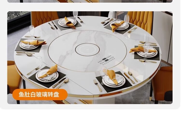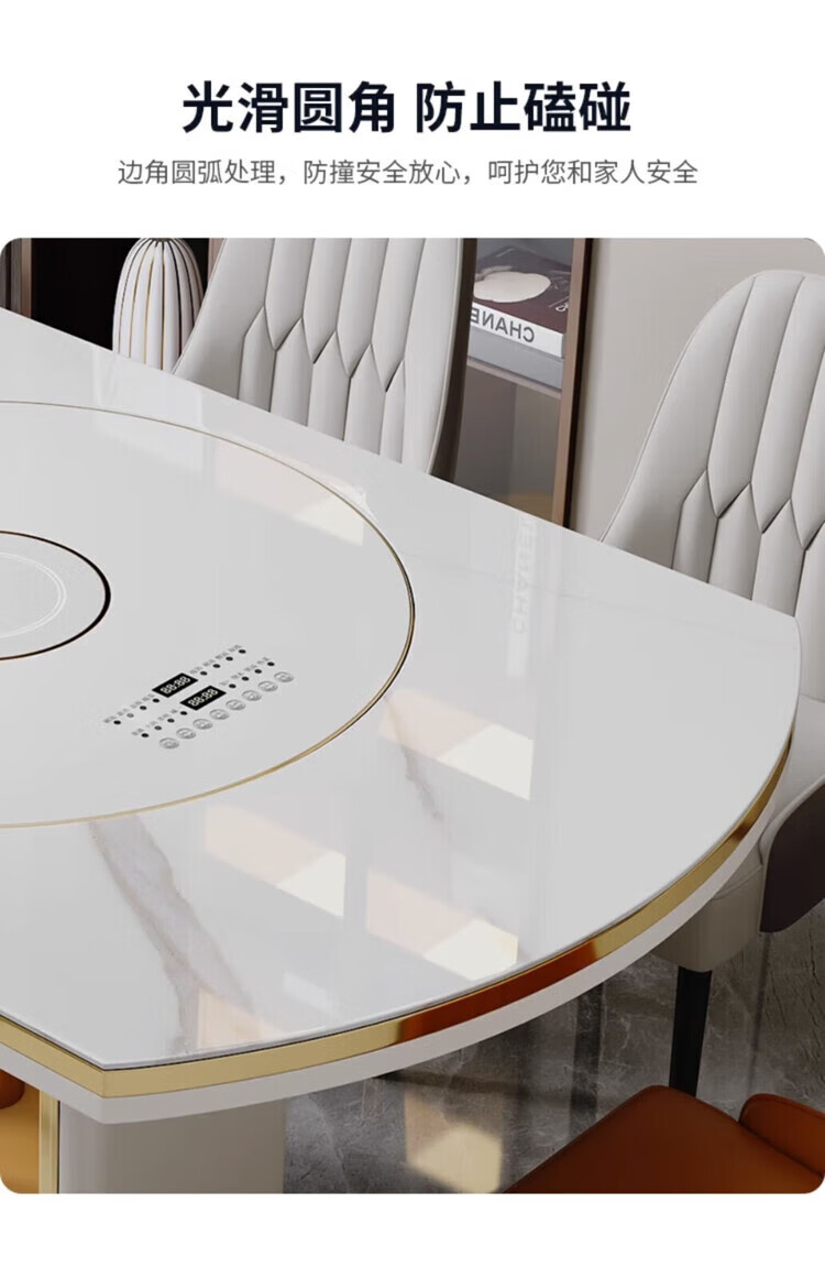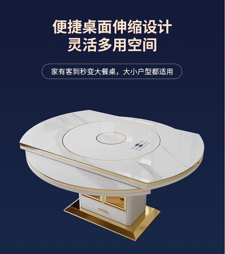 Light luxury high-end slate dining table and chairs, multi-functional household induction cooker, smart dining table, modern simple retractable and foldable 1.5-meter dining table, induction cooker turntable for warming dishes