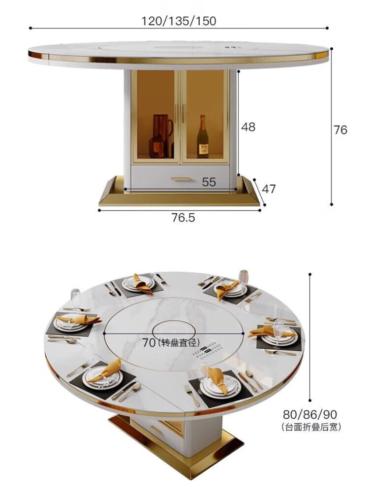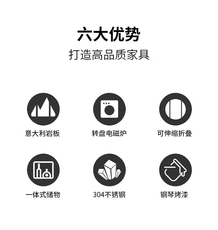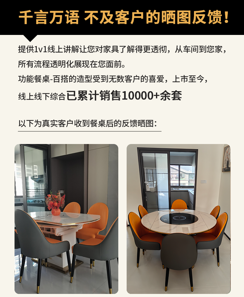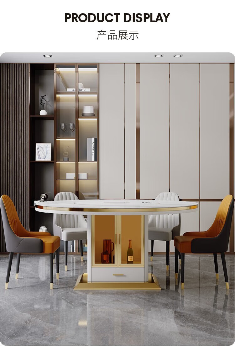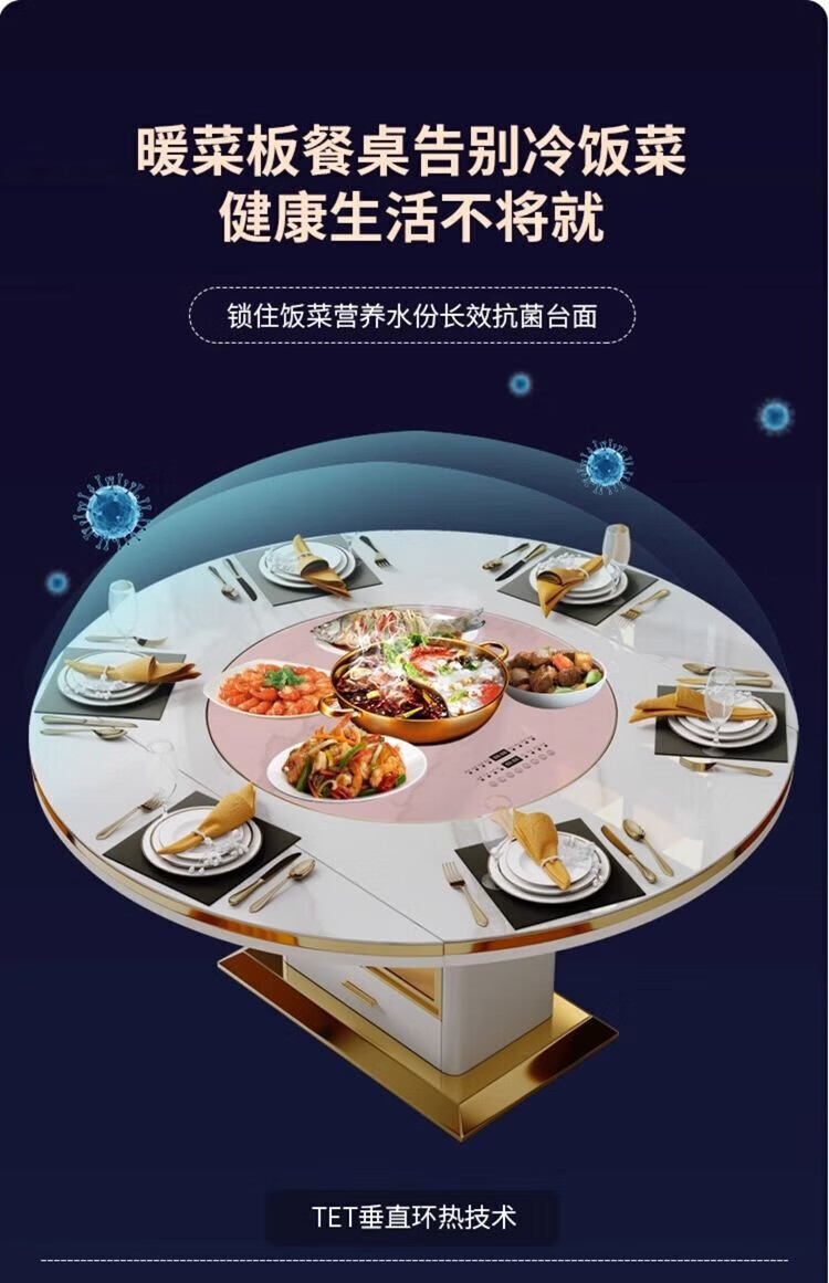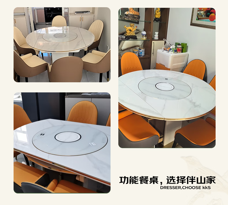 Light luxury high-end slate dining table and chairs, multi-functional household induction cooker, smart dining table, modern simple retractable and foldable 1.5-meter dining table, induction cooker turntable for warming dishes