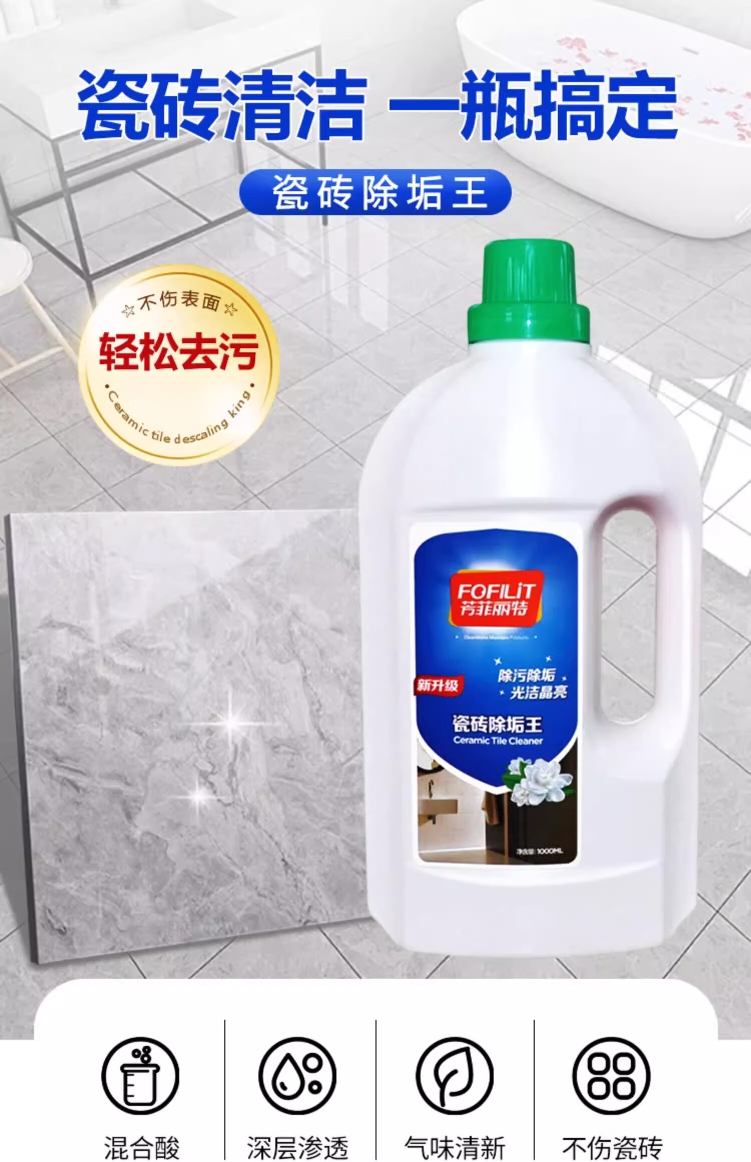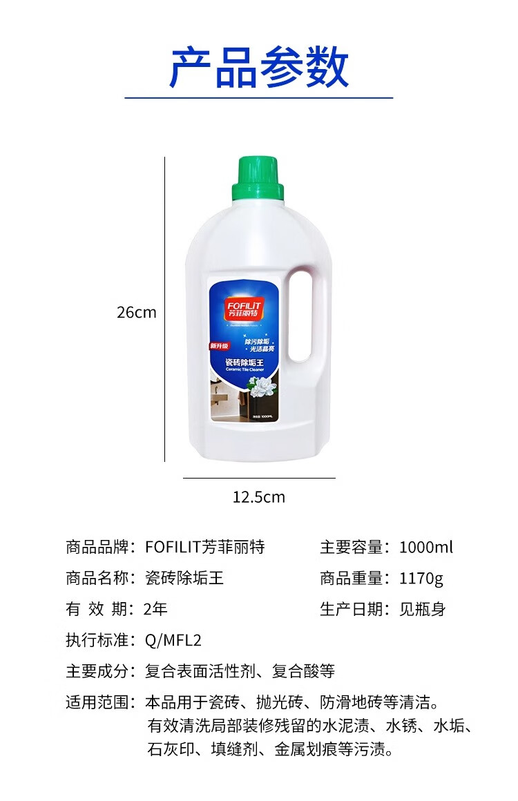 FOFILIT Tile Descaler Bathroom Scale and Rust Powerful Cleaner Tile Metal Scratch Repair Agent 1000mL*2 Bottles