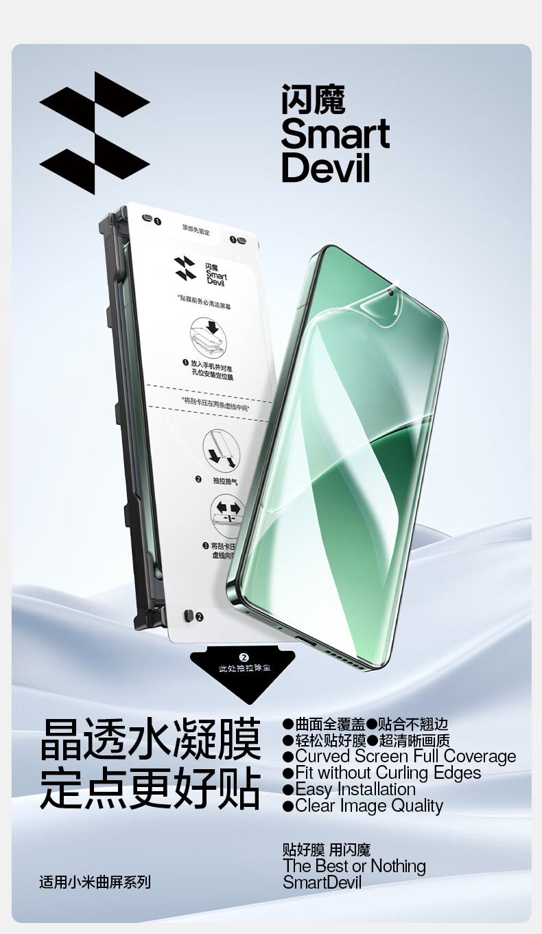 Flash Magic Xiaomi 15pro/spro/14pro mobile phone film tempered soft film ultra ice porcelain film curved full screen ultra-clear anti-fingerprint no bubbles anti-explosion wear-resistant second sticker dust-free compartment ice porcelain film | full screen no bubbles 2 sets 15Pro/15Spro/14Pro/ultra