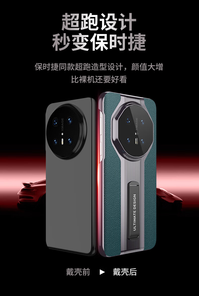 Saint Mandy Huawei mate70rs Extraordinary Master mobile phone case protective cover new Porsche supercar design genuine leather lens all-inclusive ultra-thin anti-fall bracket light luxury business leather case Yadan black top with first-layer cowhide-comes with stand Huawei mate70RS Extraordinary Master