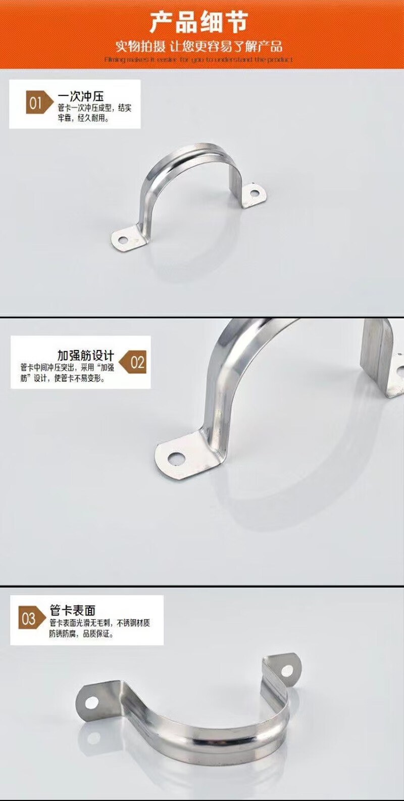 Aoyanlai range hood exhaust pipe gas exhaust pipe U-shaped fixed card PVC pipe water pipe wall card riding card 304 stainless steel. The default expansion screw needs to be replaced with a screw sticker.
