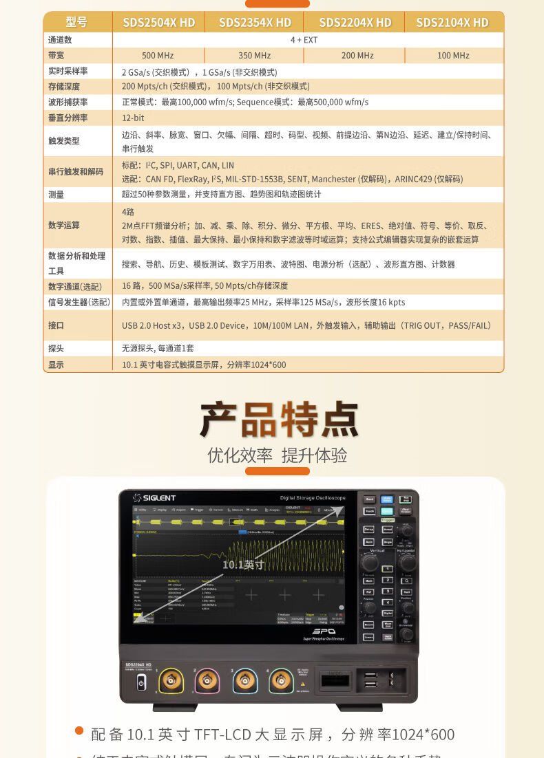 Ji Litian customized digital oscilloscope SDS2000X HD series 2G sampling 12-bit high resolution SDS2104X HD 2G/200M/12b1
