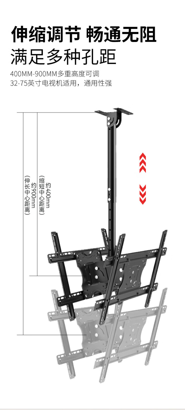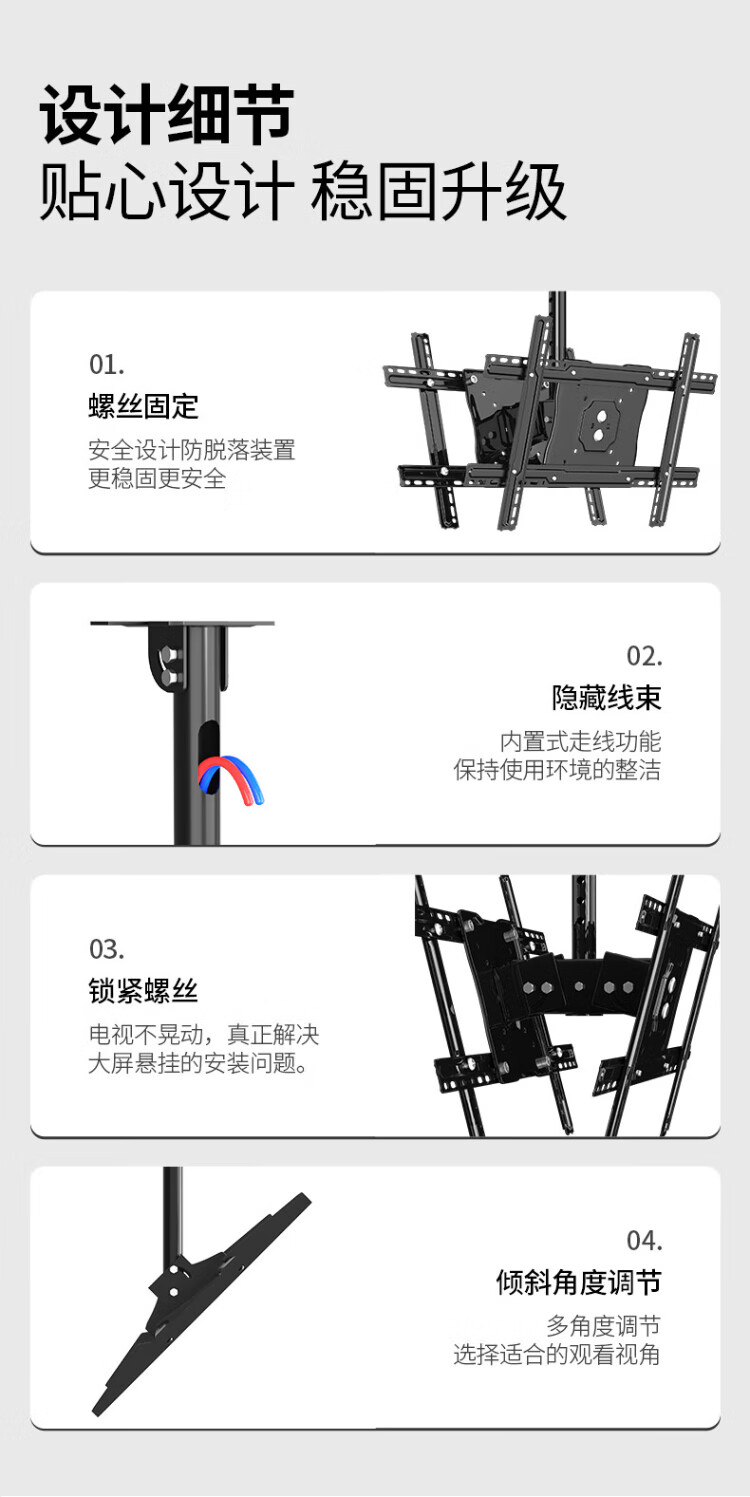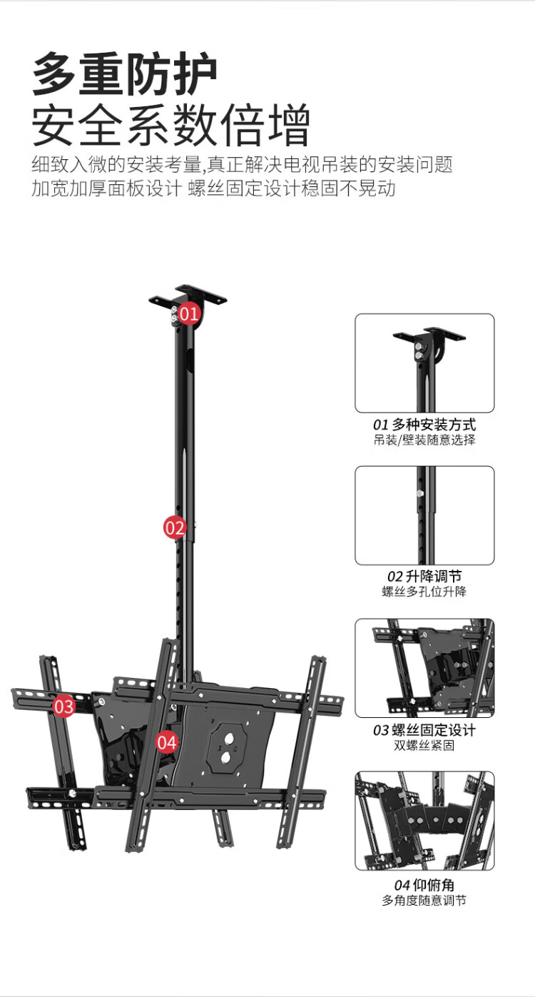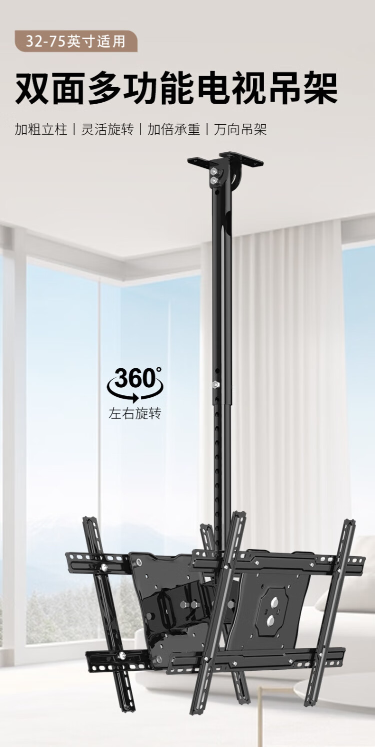 Chuanghao TV hanger large load-bearing ceiling double multi-screen back-to-back suitable for milk tea shop cinema restaurant ceiling commercial ceiling double-sided screen TV hanging bracket 40-70 inches upper and lower double screen | 360 rotation