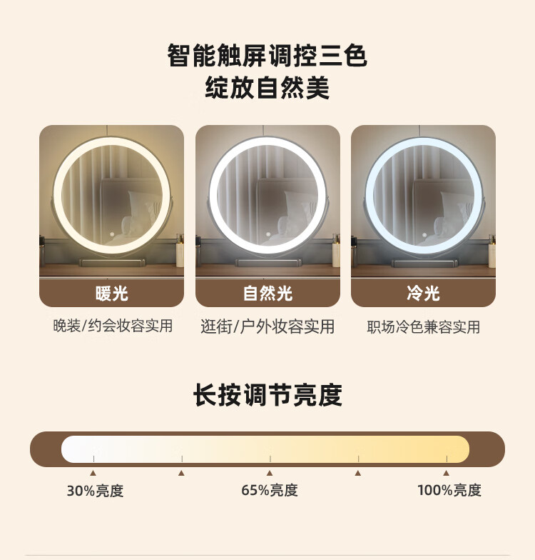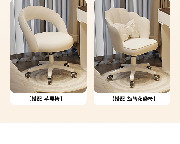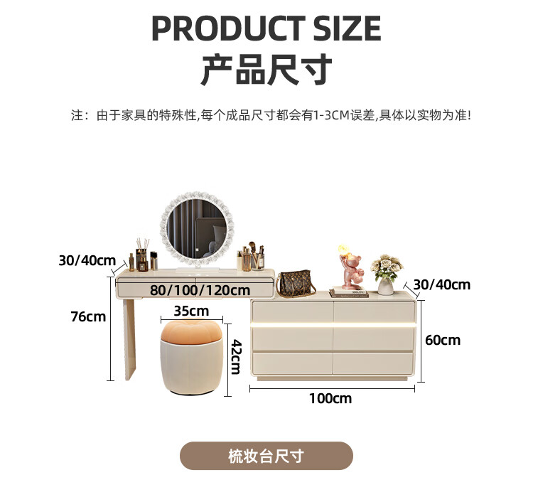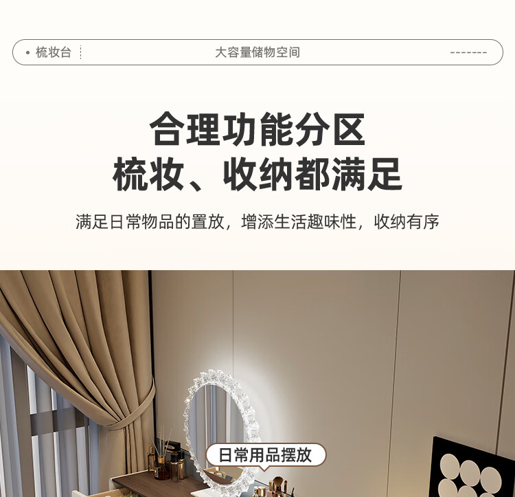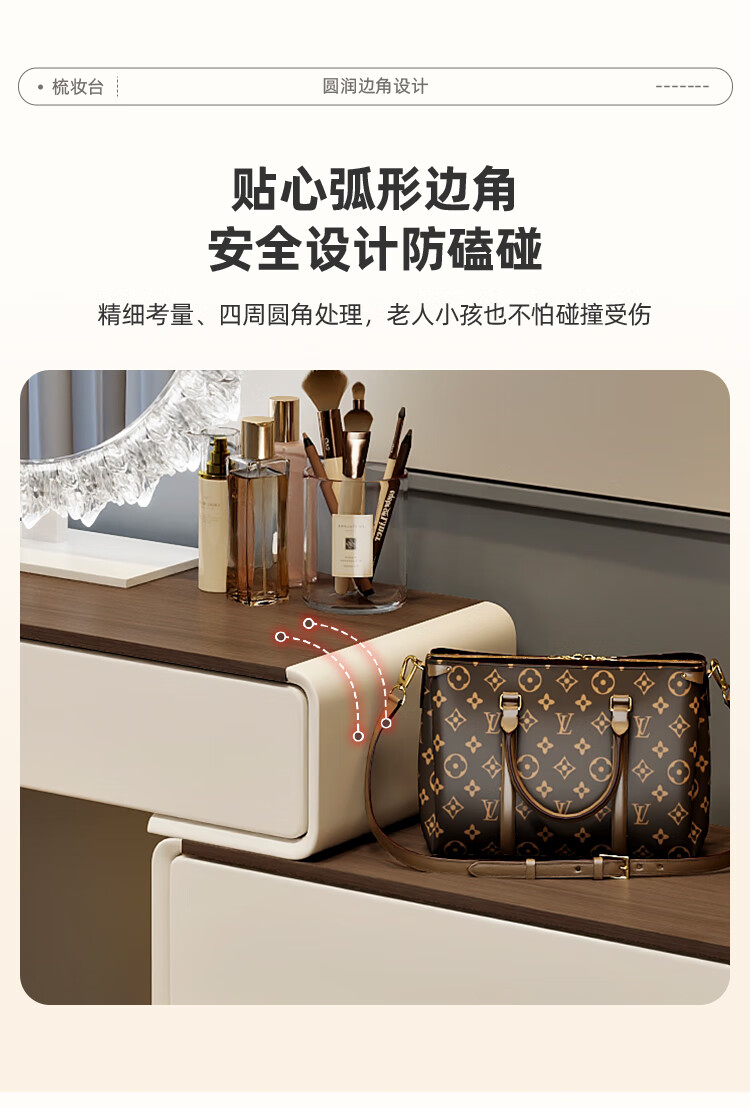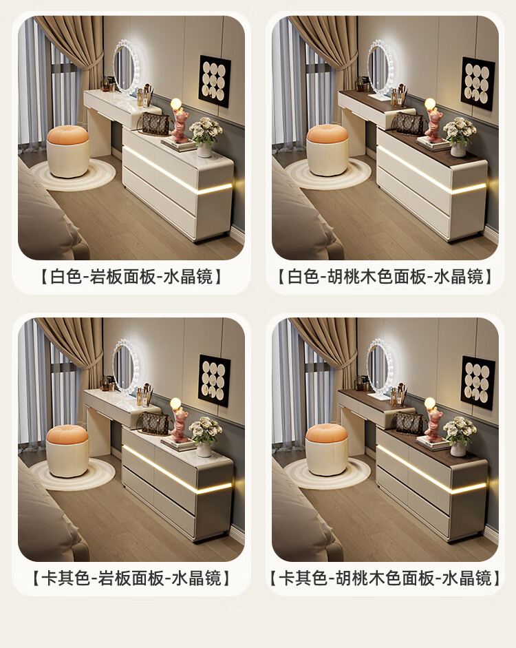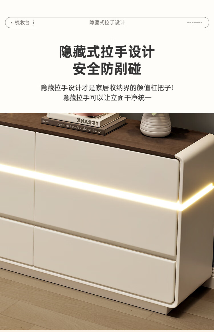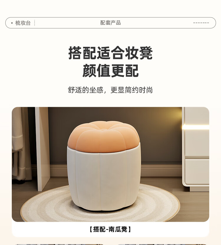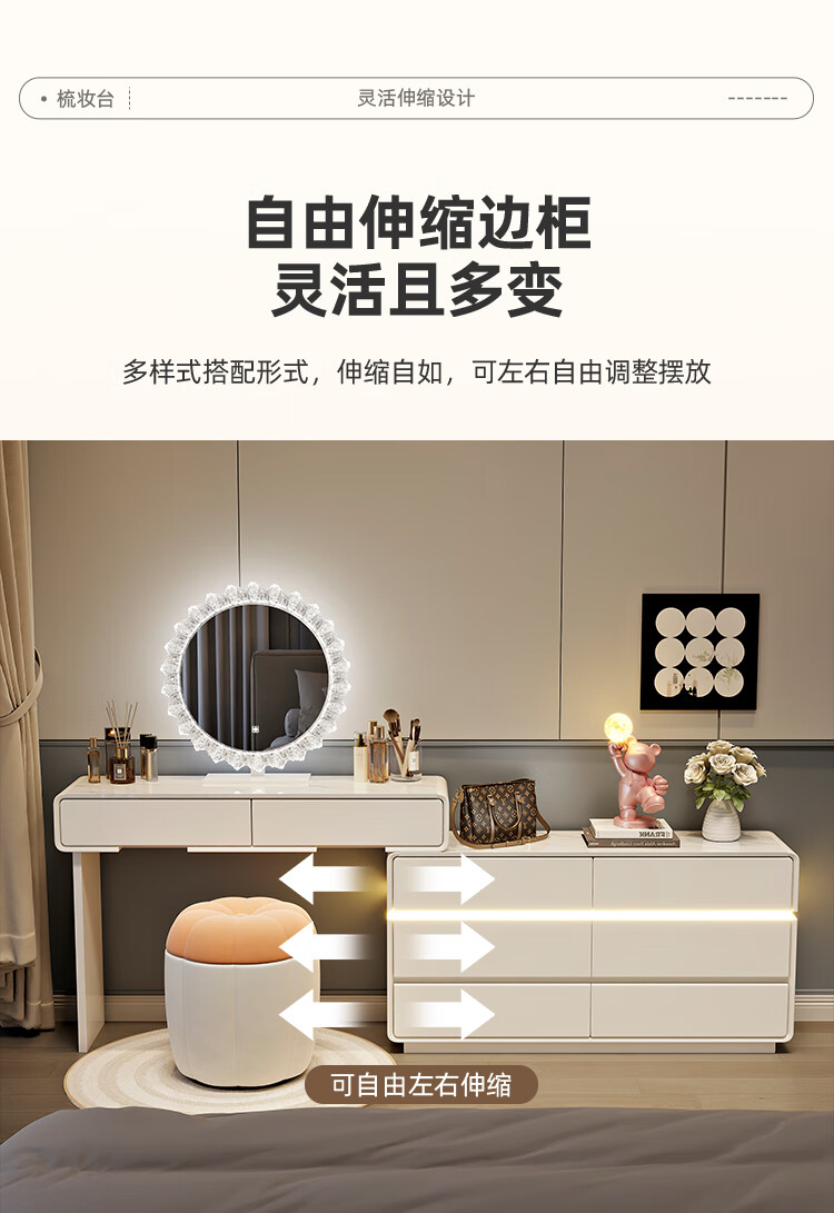 Yuke Dressing Table with Lights New Solid Wood Small Apartment Modern Simple Dressing Table Bedroom Drawer Cabinet Integrated Light Luxurious and High-Level 100cm White Walnut Surface + Six Drawer Cabinet + Round Mirror + Storage Pumpkin Stool