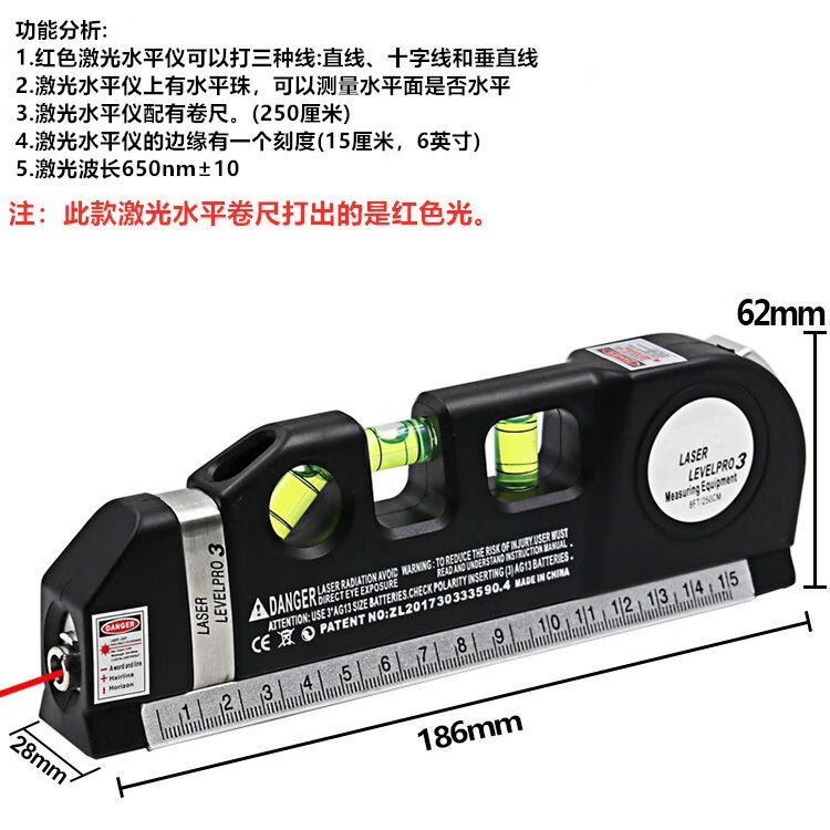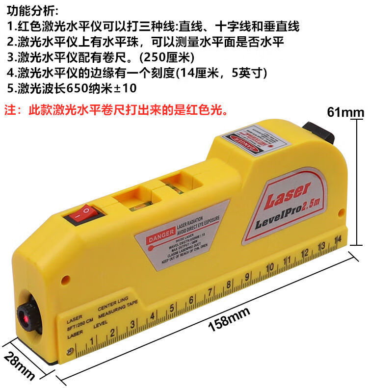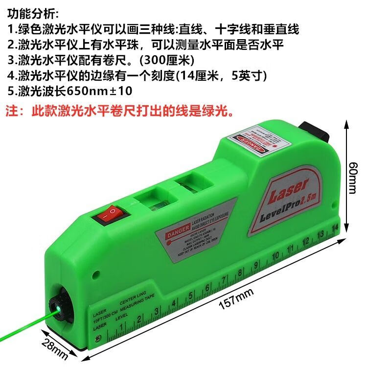 ZUIDID infrared level laser level high-precision strong light cross line multi-function line thrower four-in-one tape measure z infrared level - free battery