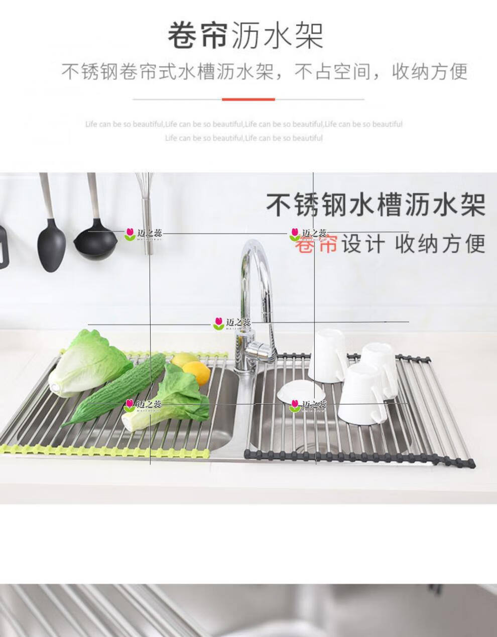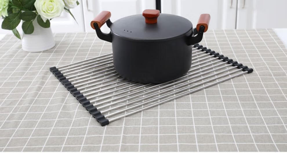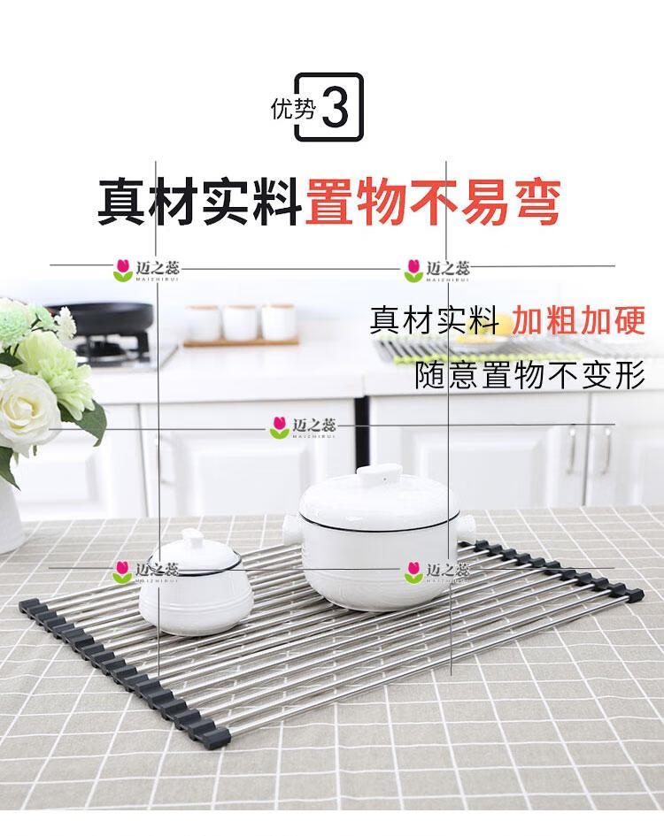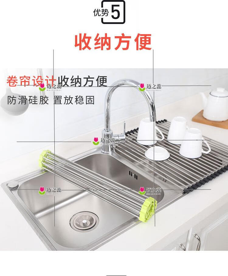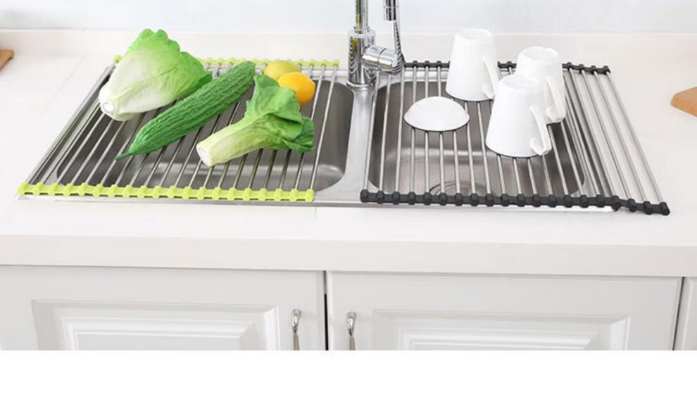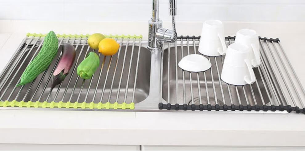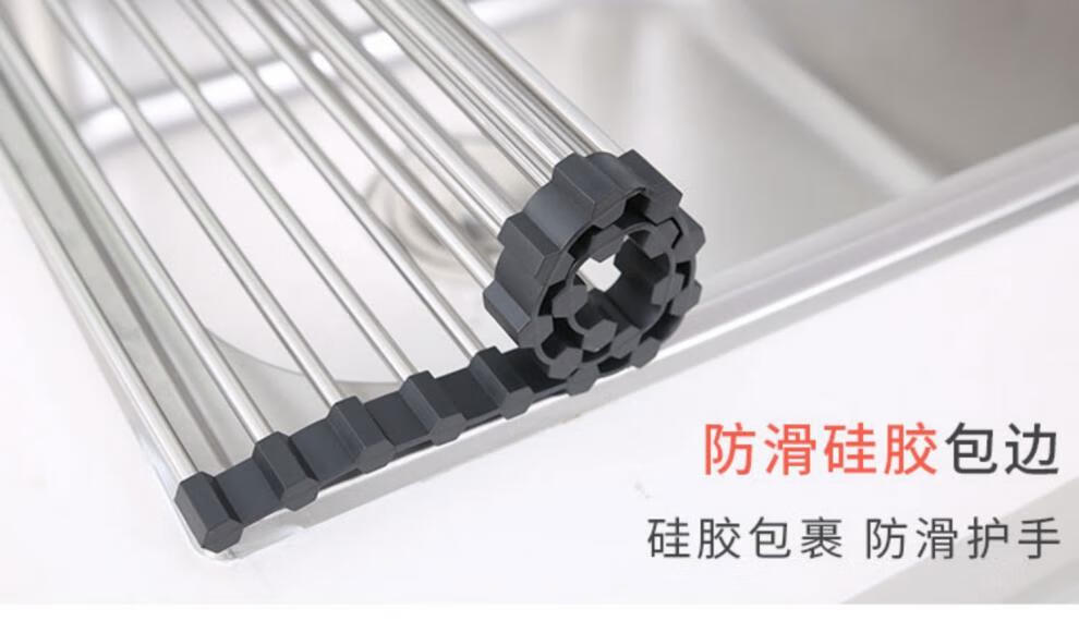 He Jiagong Foldable Water Drainage Roller Curtain Silicone Kitchen Washbasin Drainage Rack Sink Storage Rack Foldable Water Drainage Roller Curtain Upgraded Model - Gray 15 Tubes (Medium Size) 45*28CM