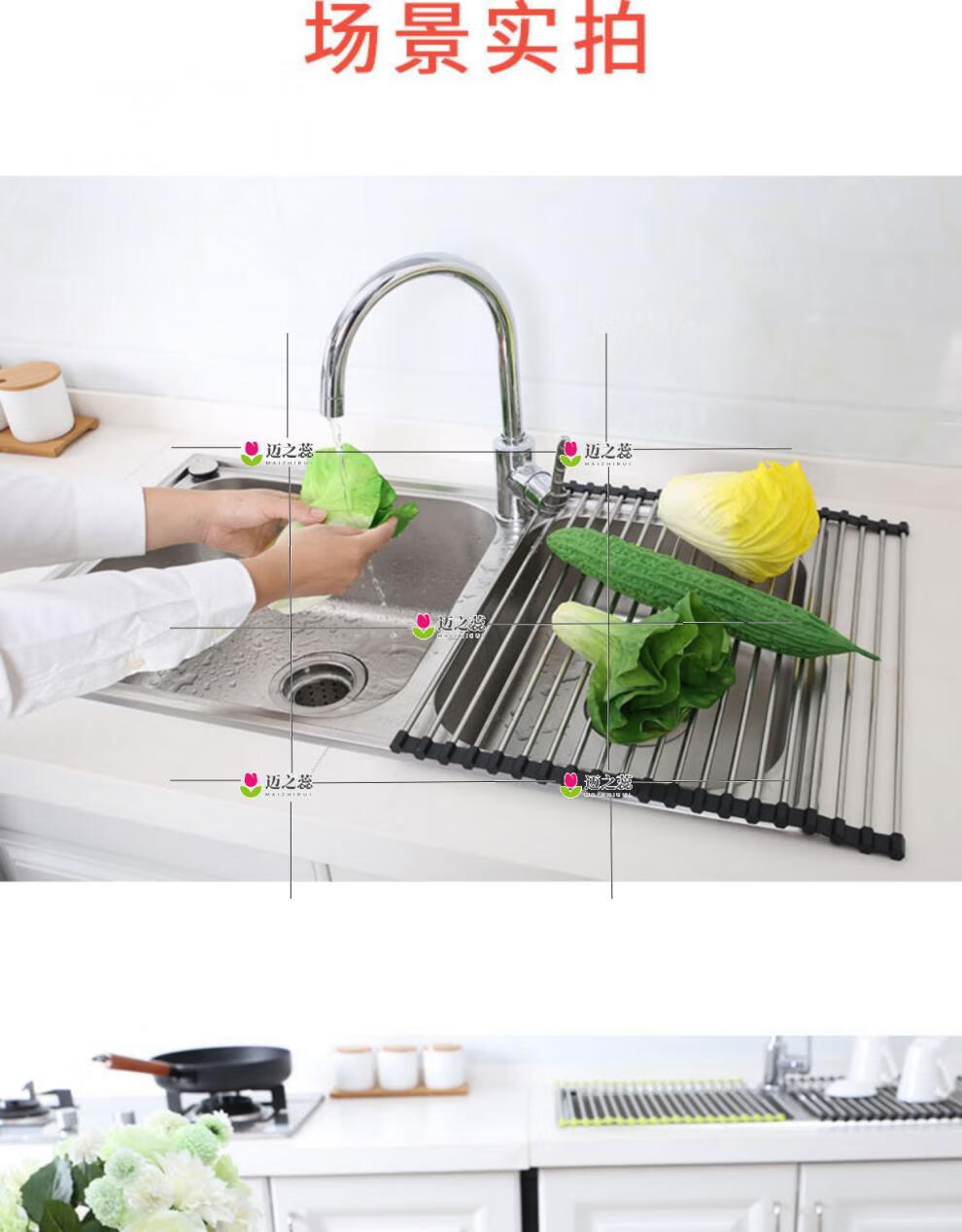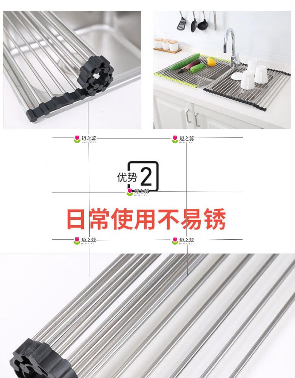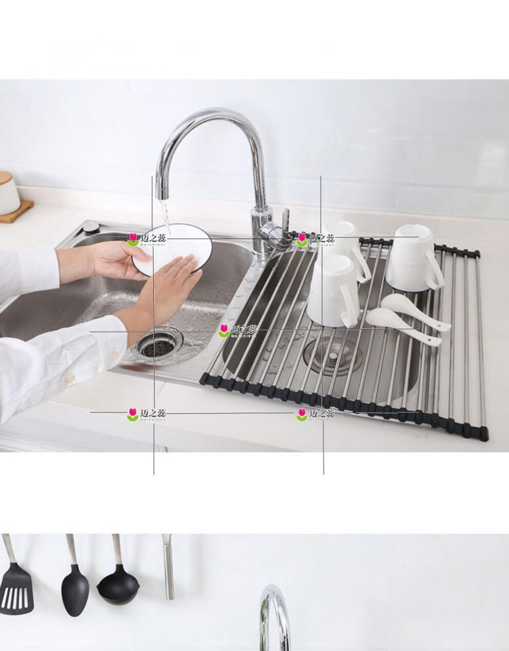 He Jiagong Foldable Water Drainage Roller Curtain Silicone Kitchen Washbasin Drainage Rack Sink Storage Rack Foldable Water Drainage Roller Curtain Upgraded Model - Gray 15 Tubes (Medium Size) 45*28CM