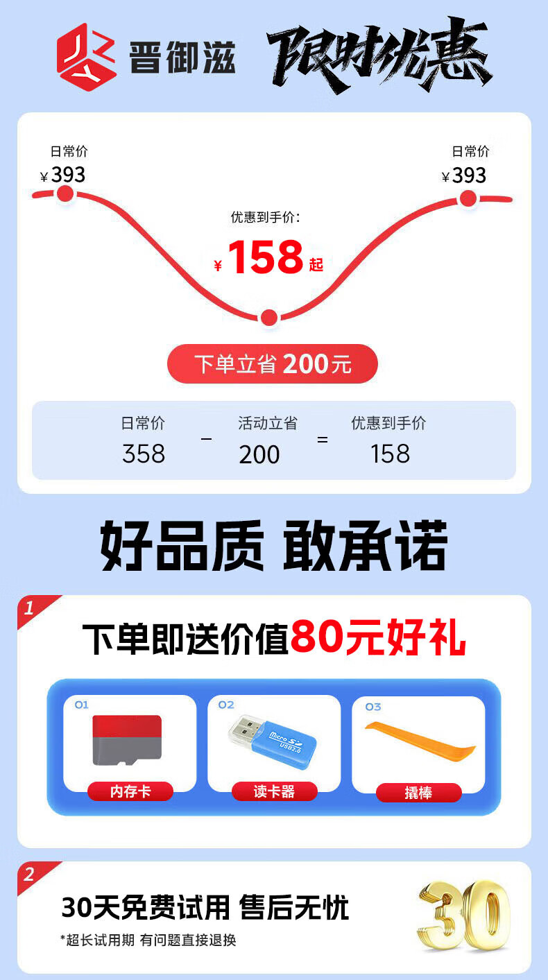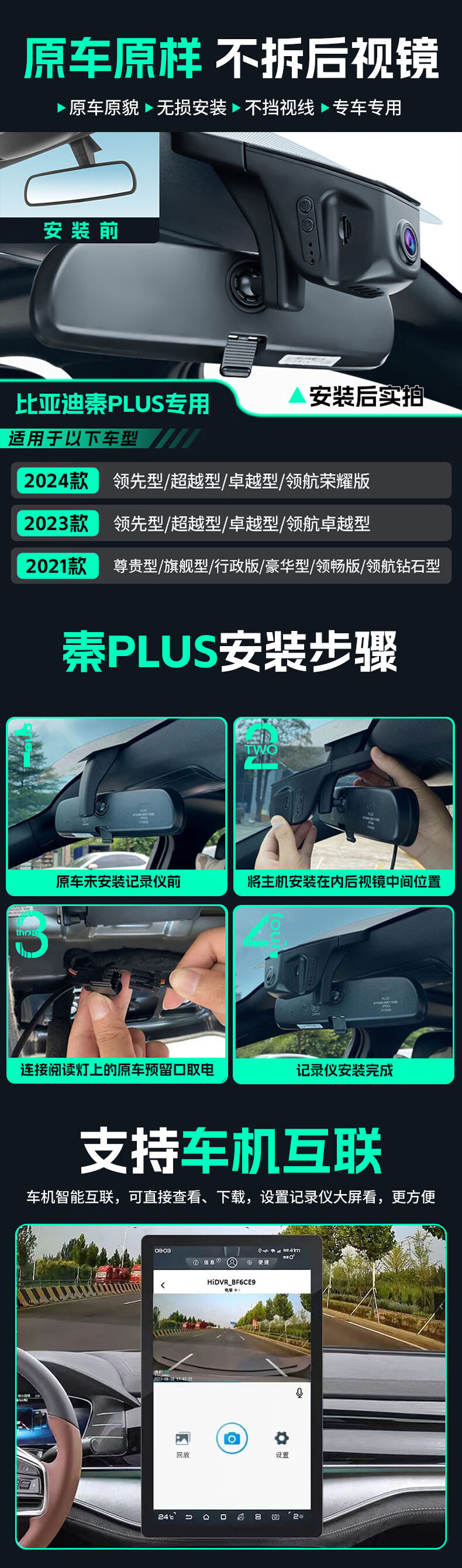 Jinyuzi BYD Qin plusdmi/EV driving recorder high-definition wire-free original factory front and rear dual recording special car 2025 model Qin plus DM-i standard definition single lens 1296P+64G