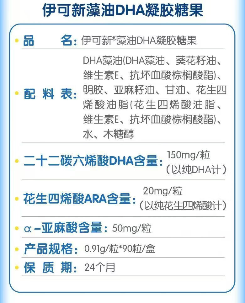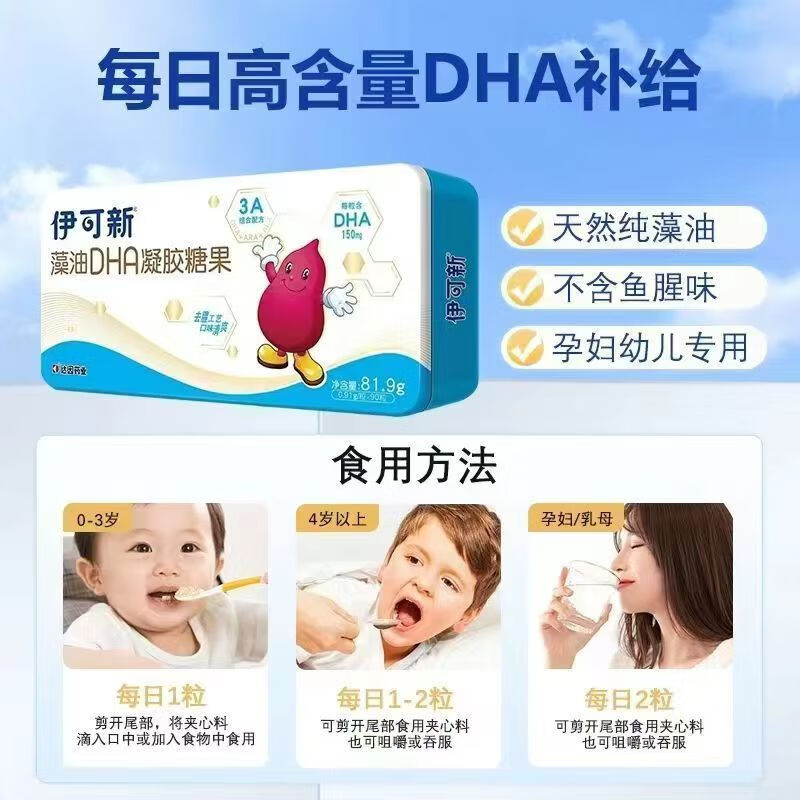 Ecoxin Algae Oil DHA Gel Candy 60 capsules Each capsule adds DHA Algae Oil 150mg ARA 20mg Special for infants and pregnant women 1 box
