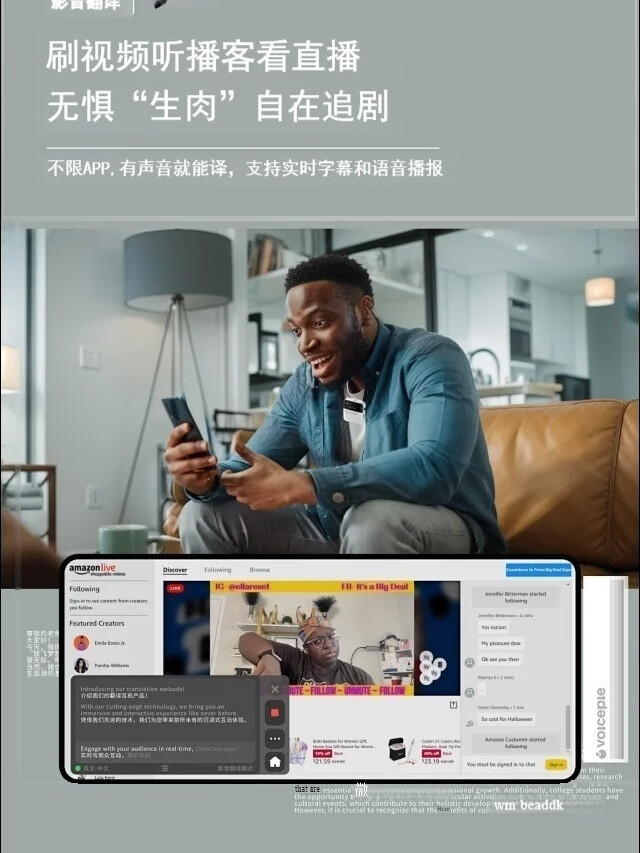 Aishuopai Lavalier Live Broadcast Intelligent Translation Headset Two-way Real-time Simultaneous Interpretation Unlimited App Platform