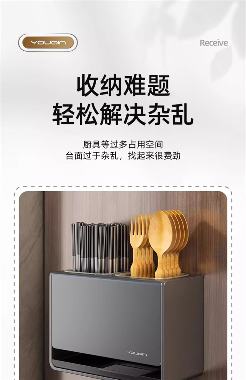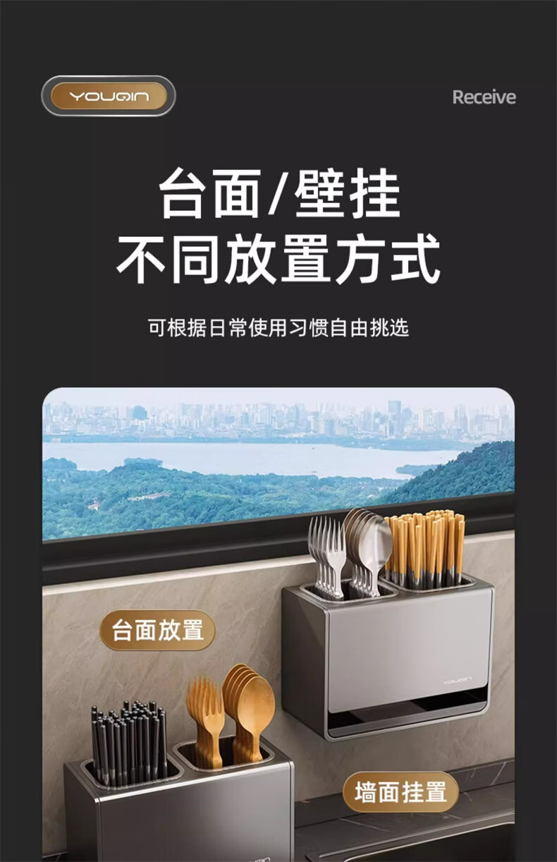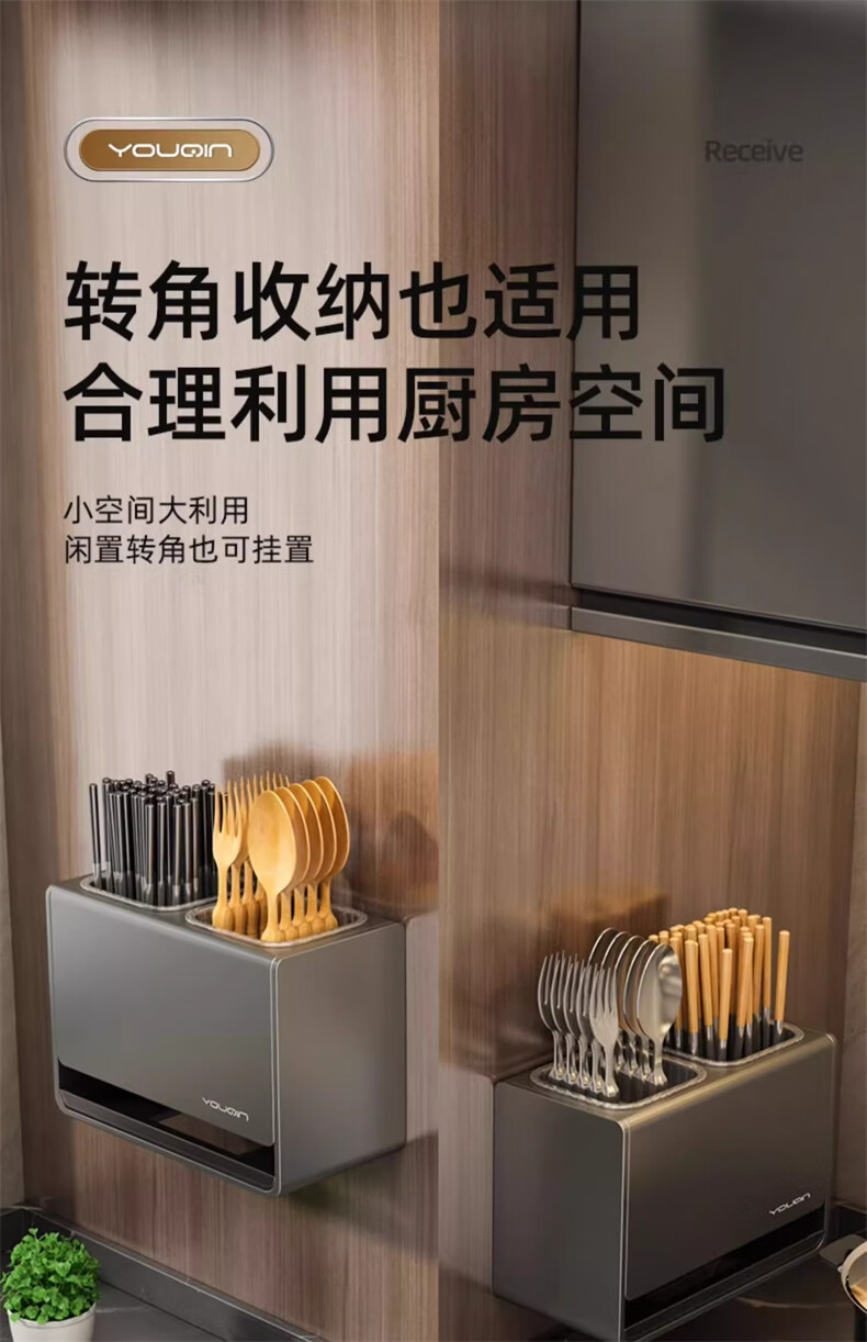 YOUQIN chopstick storage box gun ash kitchen chopstick tube household chopstick cage countertop chopstick basket wall hanging drain rack gun ash chopstick storage box wall hanging