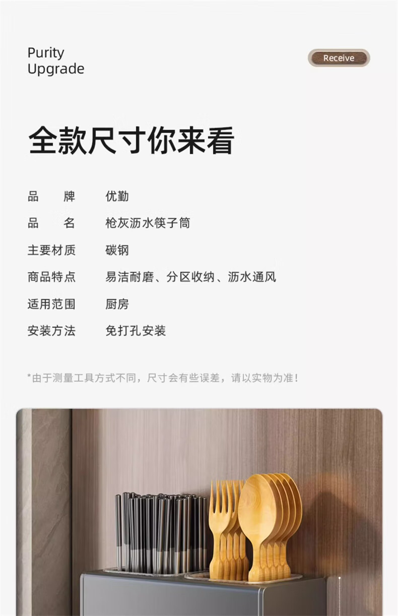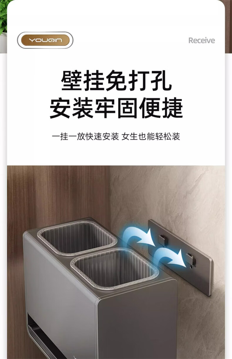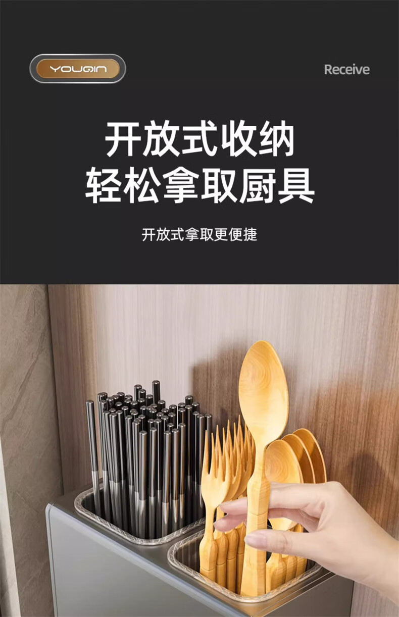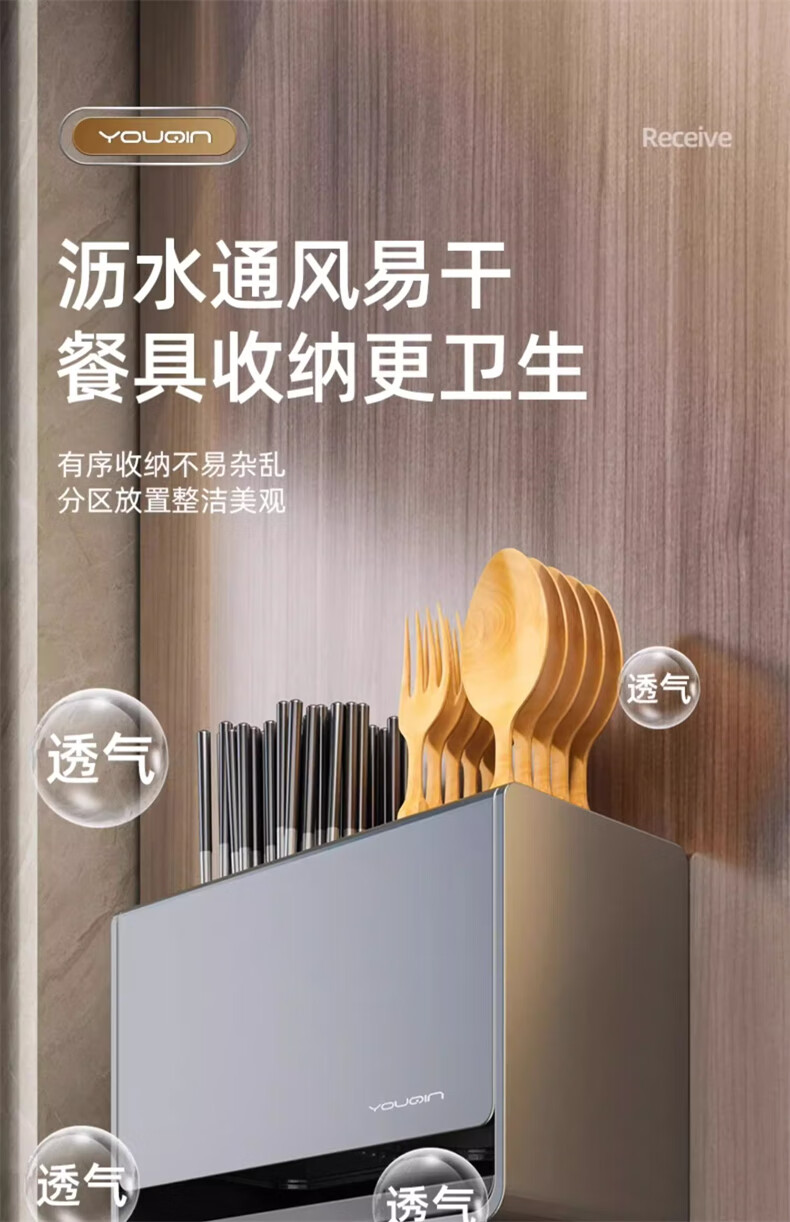 YOUQIN chopstick storage box gun ash kitchen chopstick tube household chopstick cage countertop chopstick basket wall hanging drain rack gun ash chopstick storage box wall hanging
