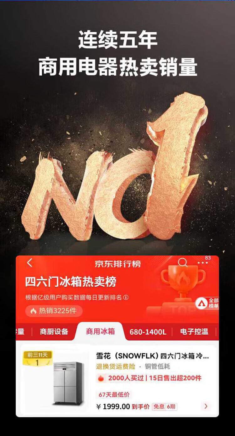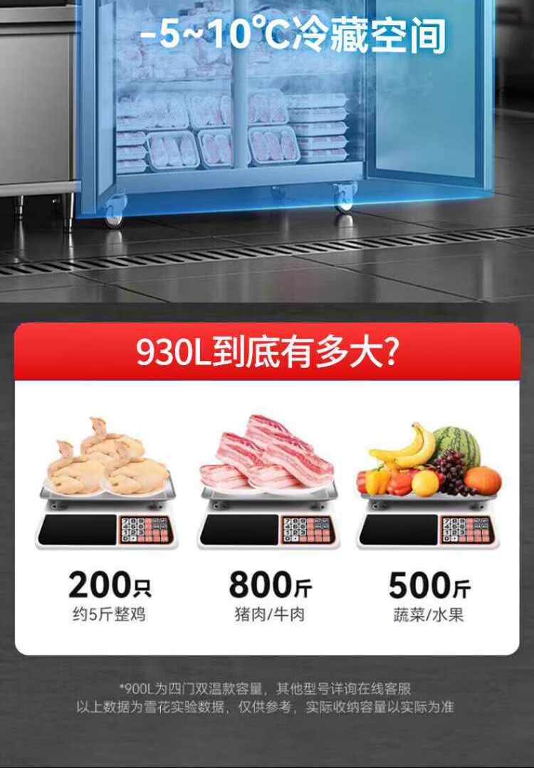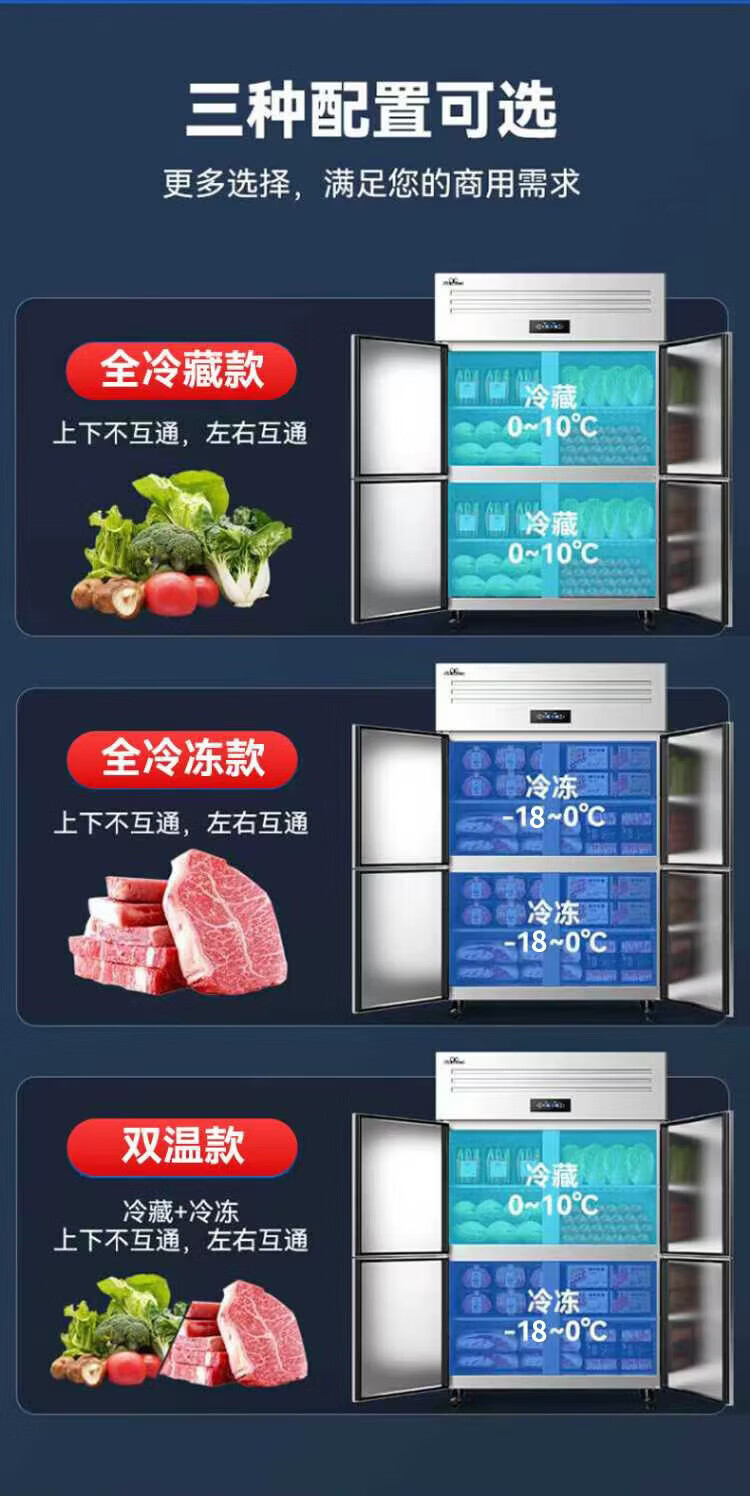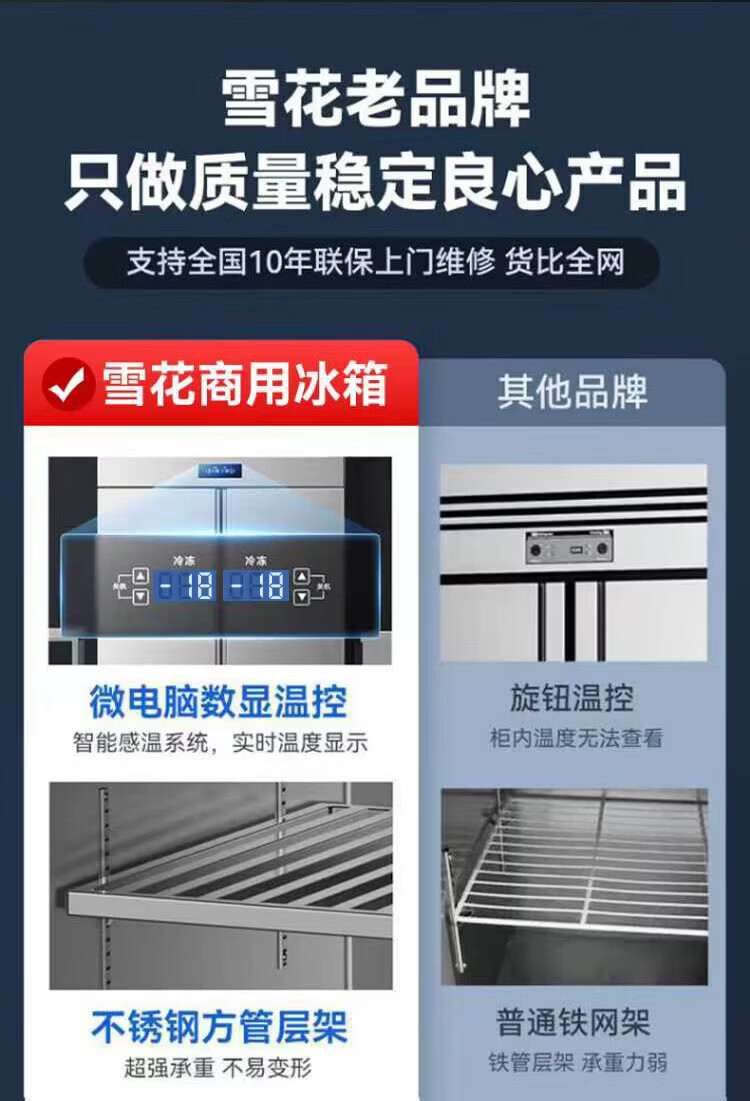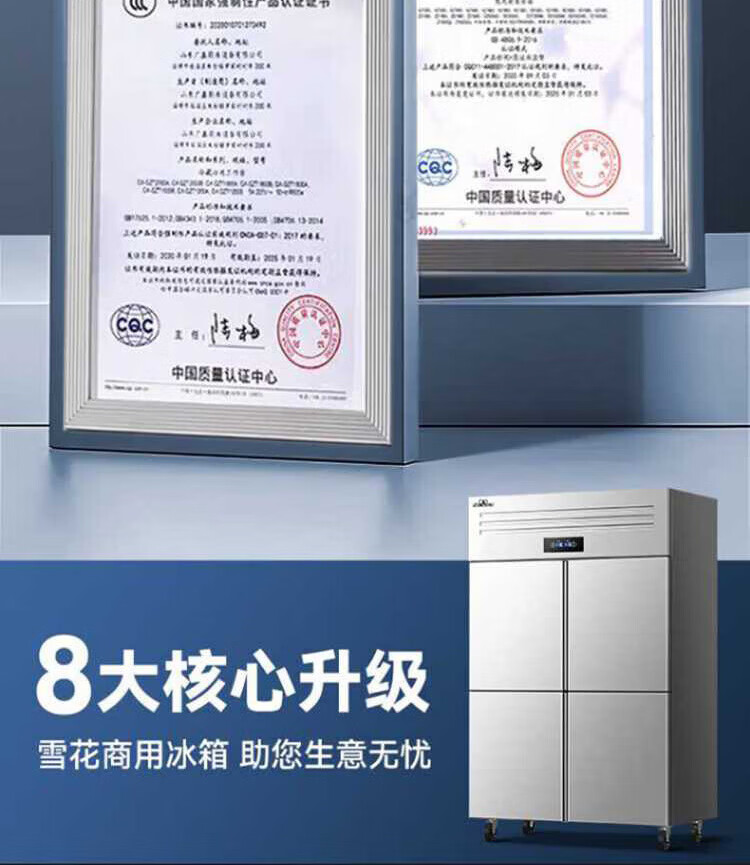 Snowflake four-door refrigerator commercial refrigeration and freezing dual-temperature six-door freezer large-capacity refrigerator catering kitchen restaurant vertical stainless steel fresh cabinet four-door refrigerator refrigeration display cabinet fully frozen four-door pure copper tube丨intelligent digital display 2026 new upgrade丨large capacity丨efficient refrigeration