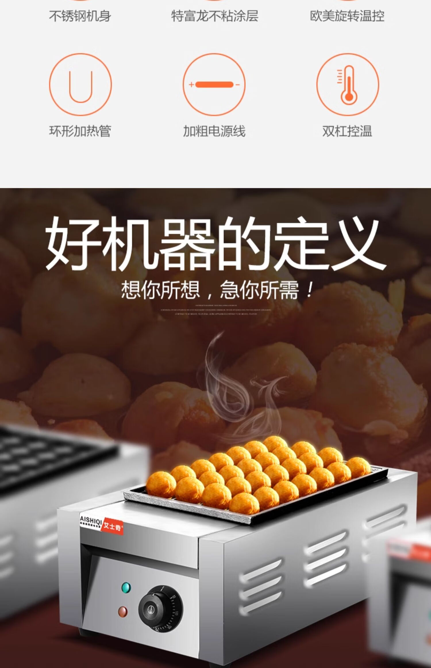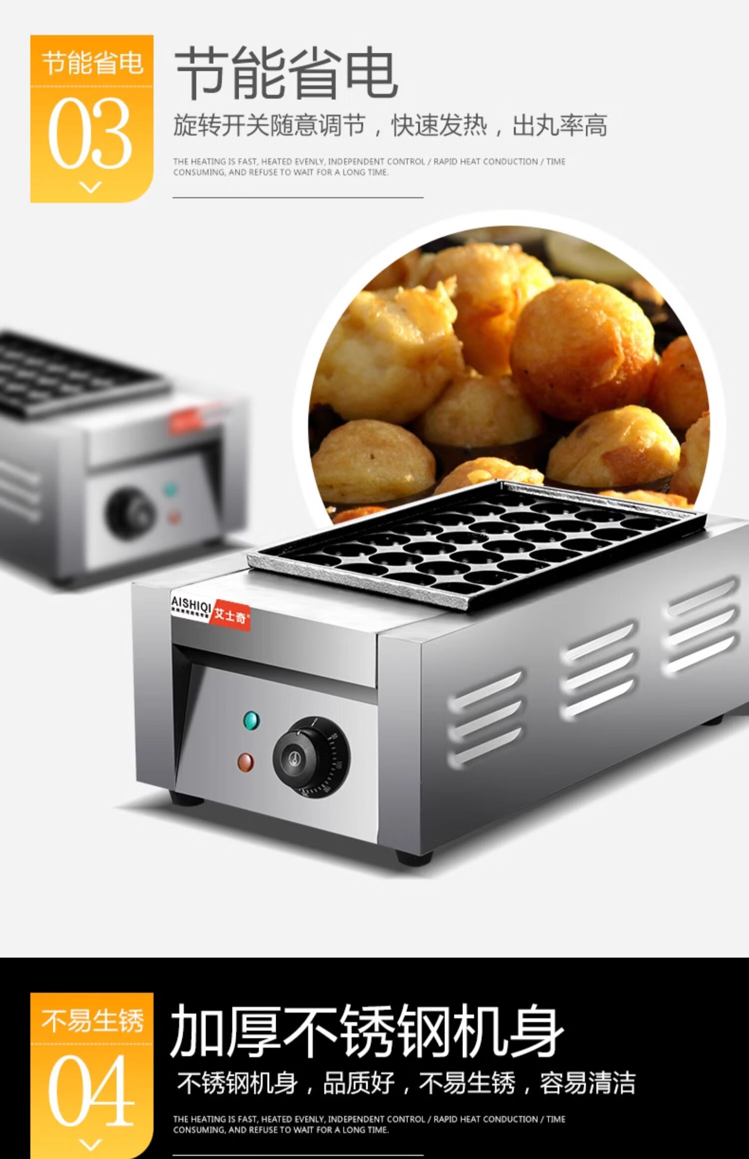 Aishiqi Octopus Meatball Machine Fish Ball Stove Commercial Takoyaki Machine Electric Heating Stall Octopus Meatball Stove Double Plate Tool Gift Pack Single Head Electric Fish Ball 1