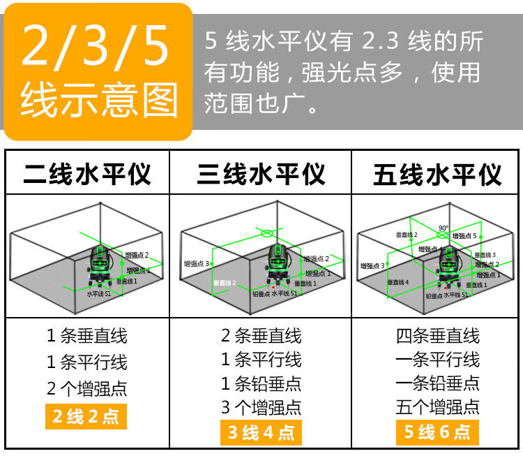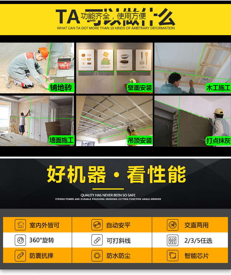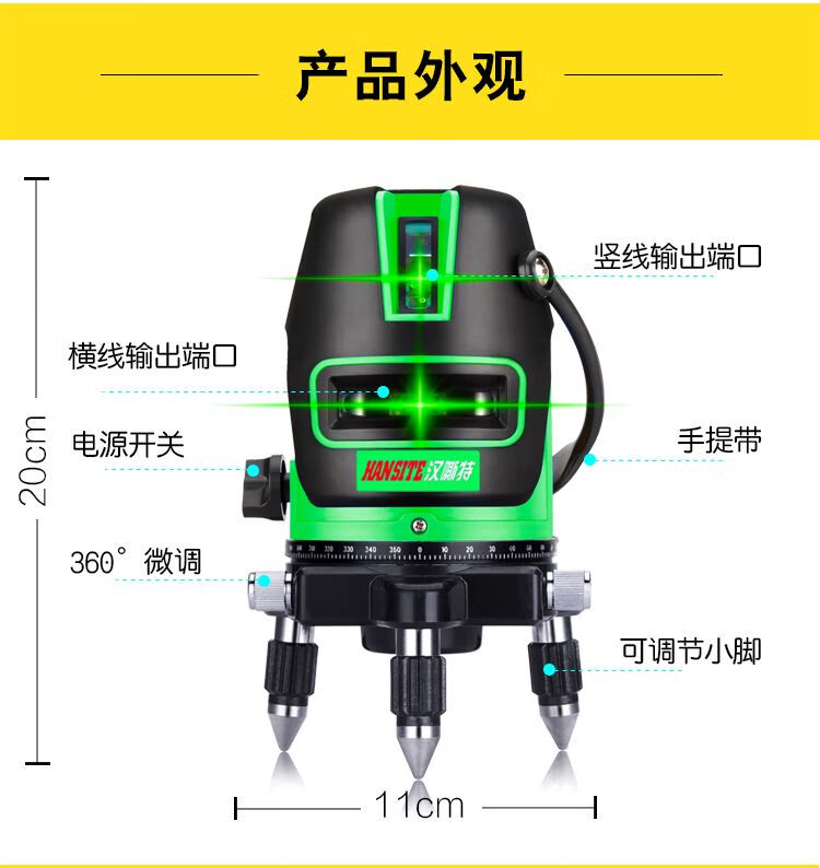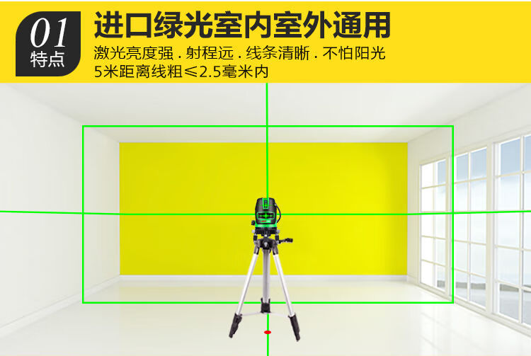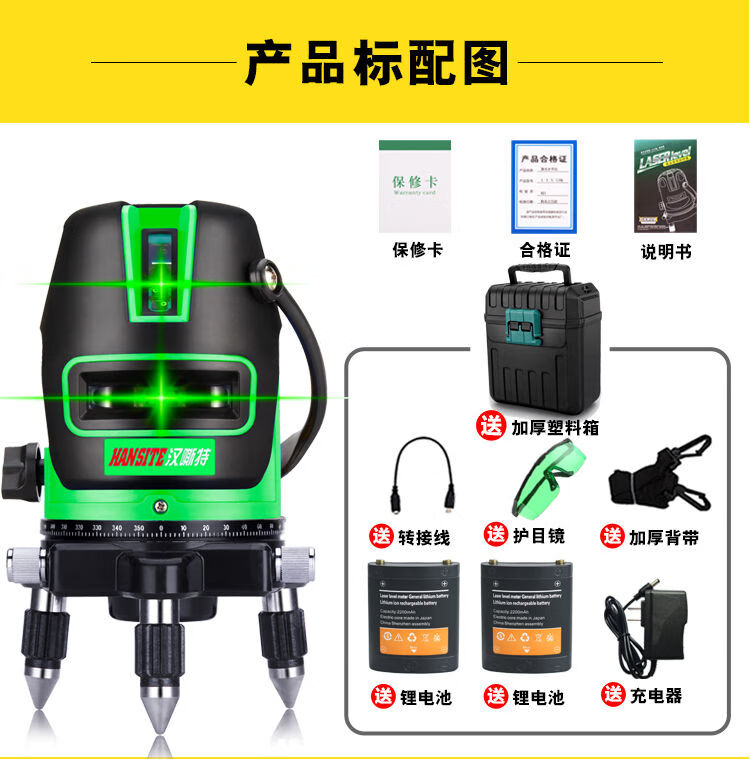 Infrared level meter, laser 2-line, 3-line, 5-line level meter, high-precision strong light automatic line outdoor level meter, super green light 2 lines + single lithium battery